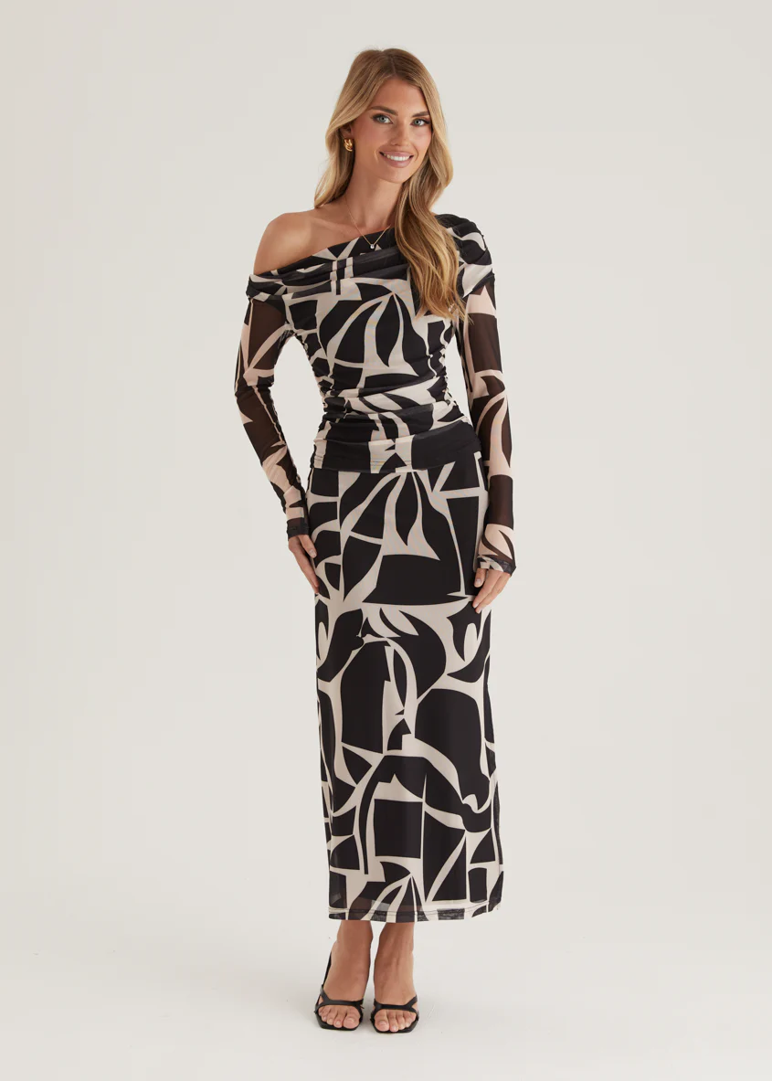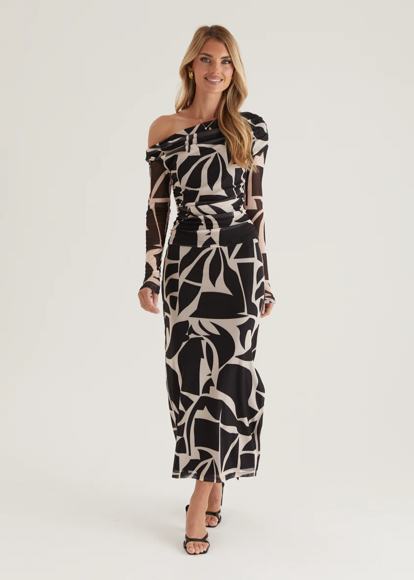 Mimi Mesh Maxi Skirt - Black Abstract