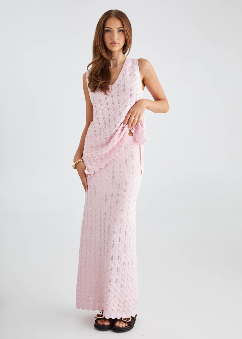 Nerida Knit Maxi Skirt - Pink
