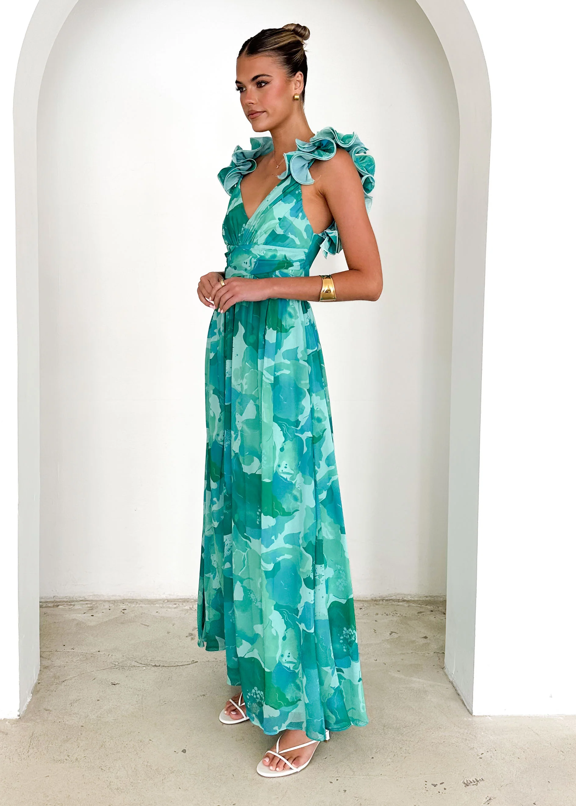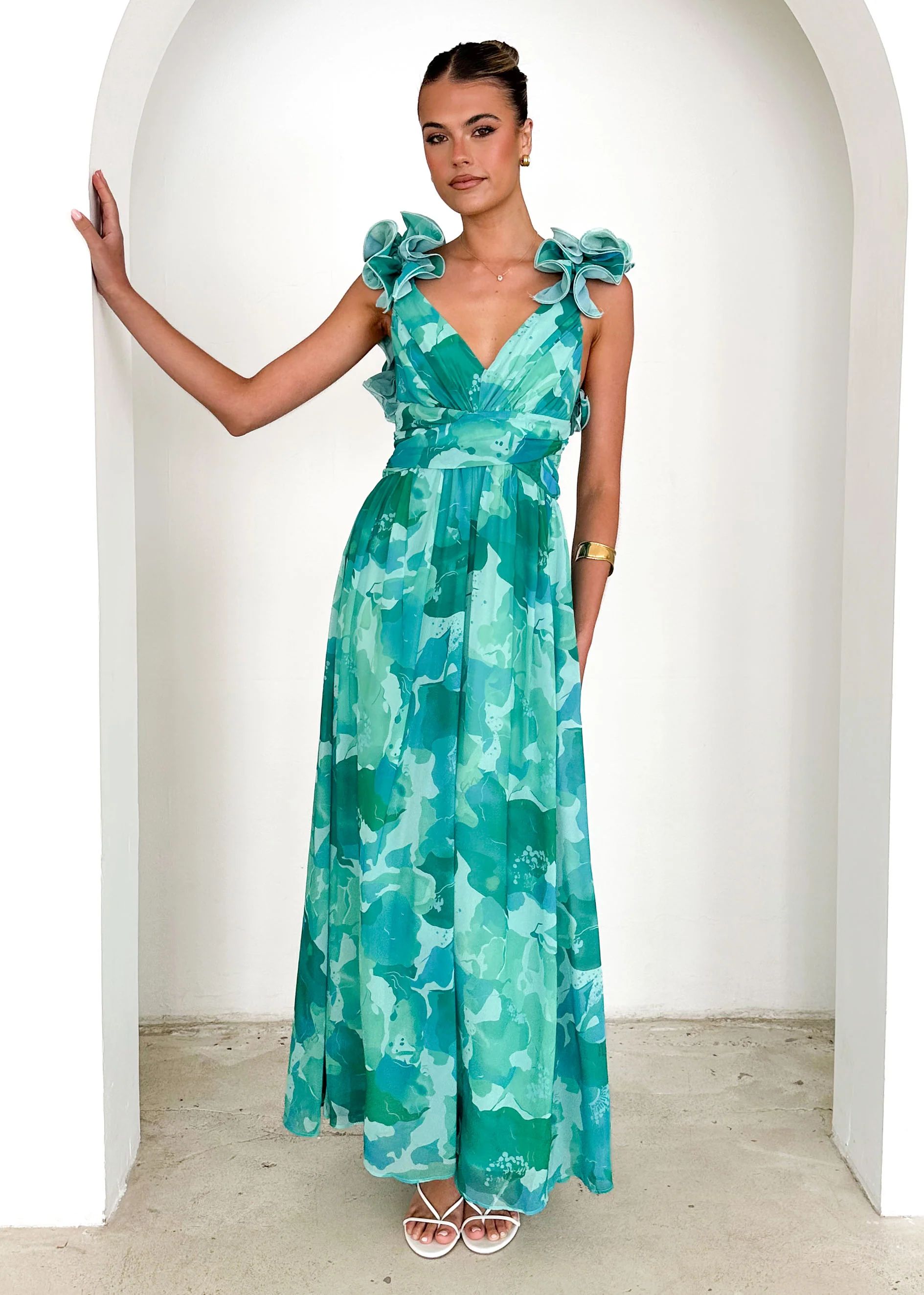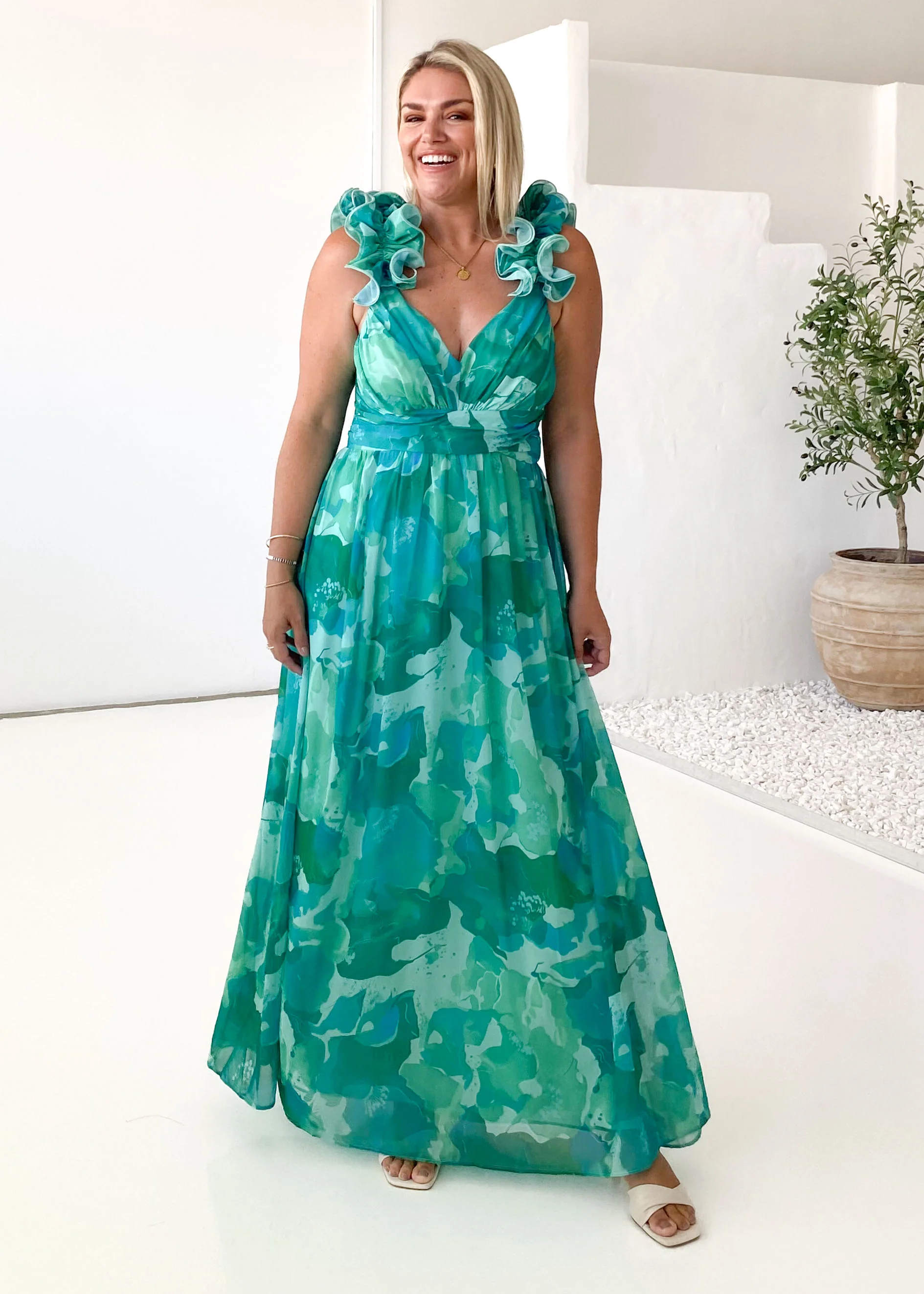 Oakes One Shoulder Mesh Maxi Dress - Sage