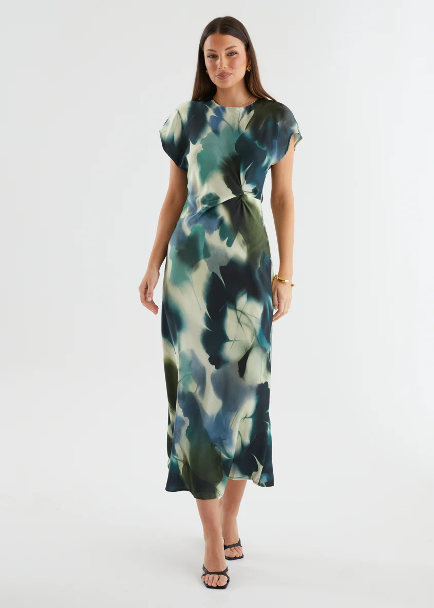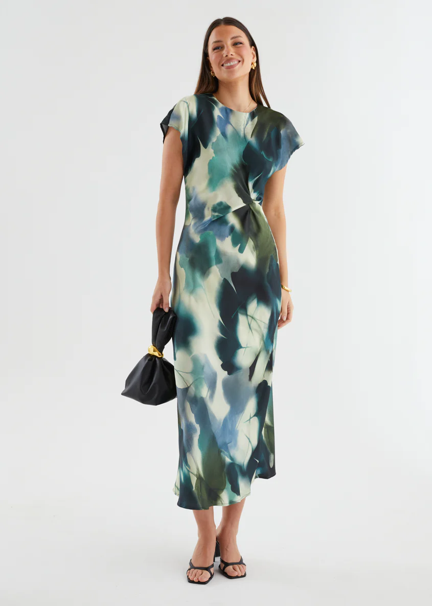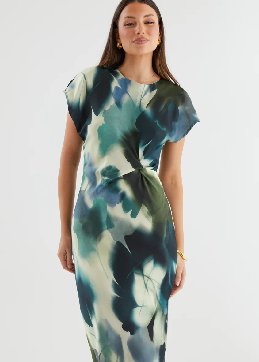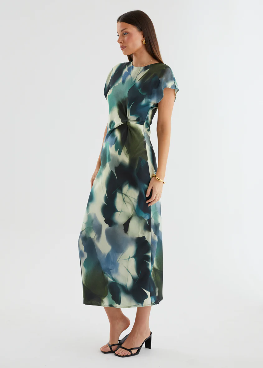 Oakes One Shoulder Mesh Maxi Dress - Sage