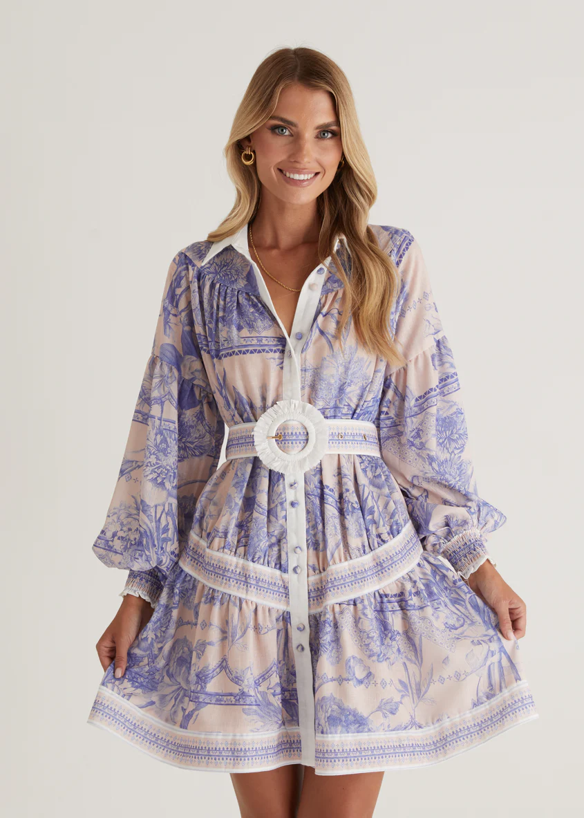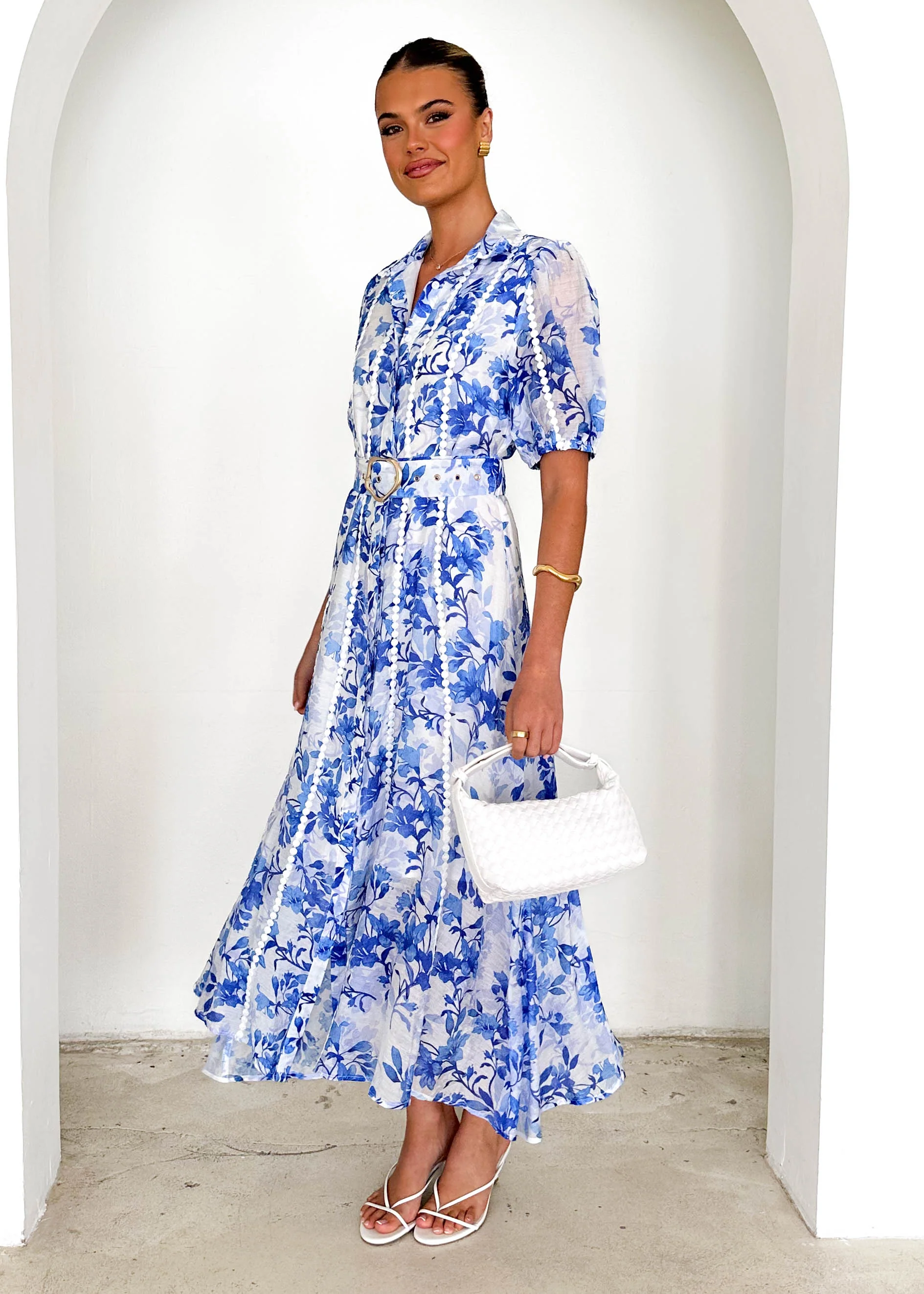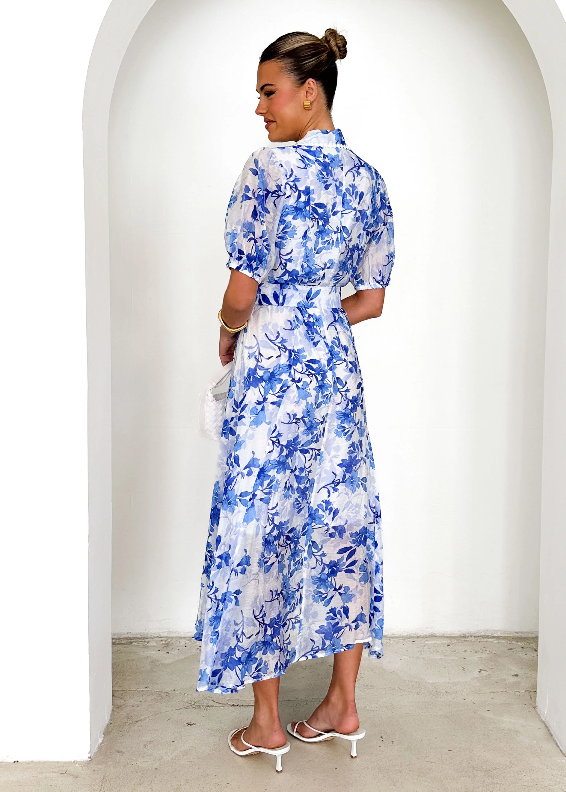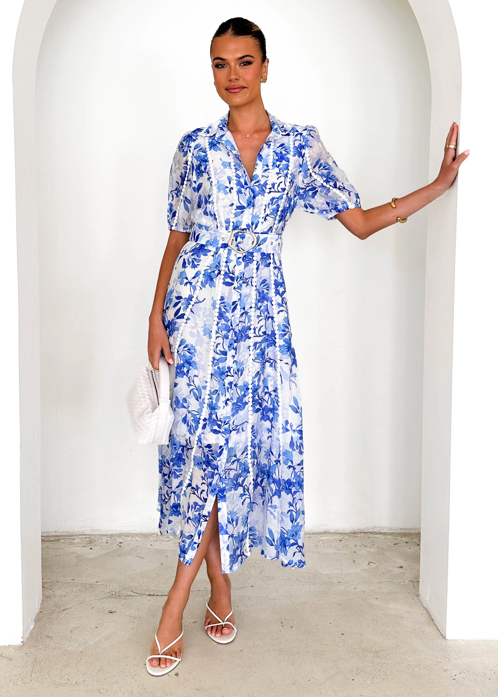 Maliah Off Shoulder Midi Dress - Blue Lace