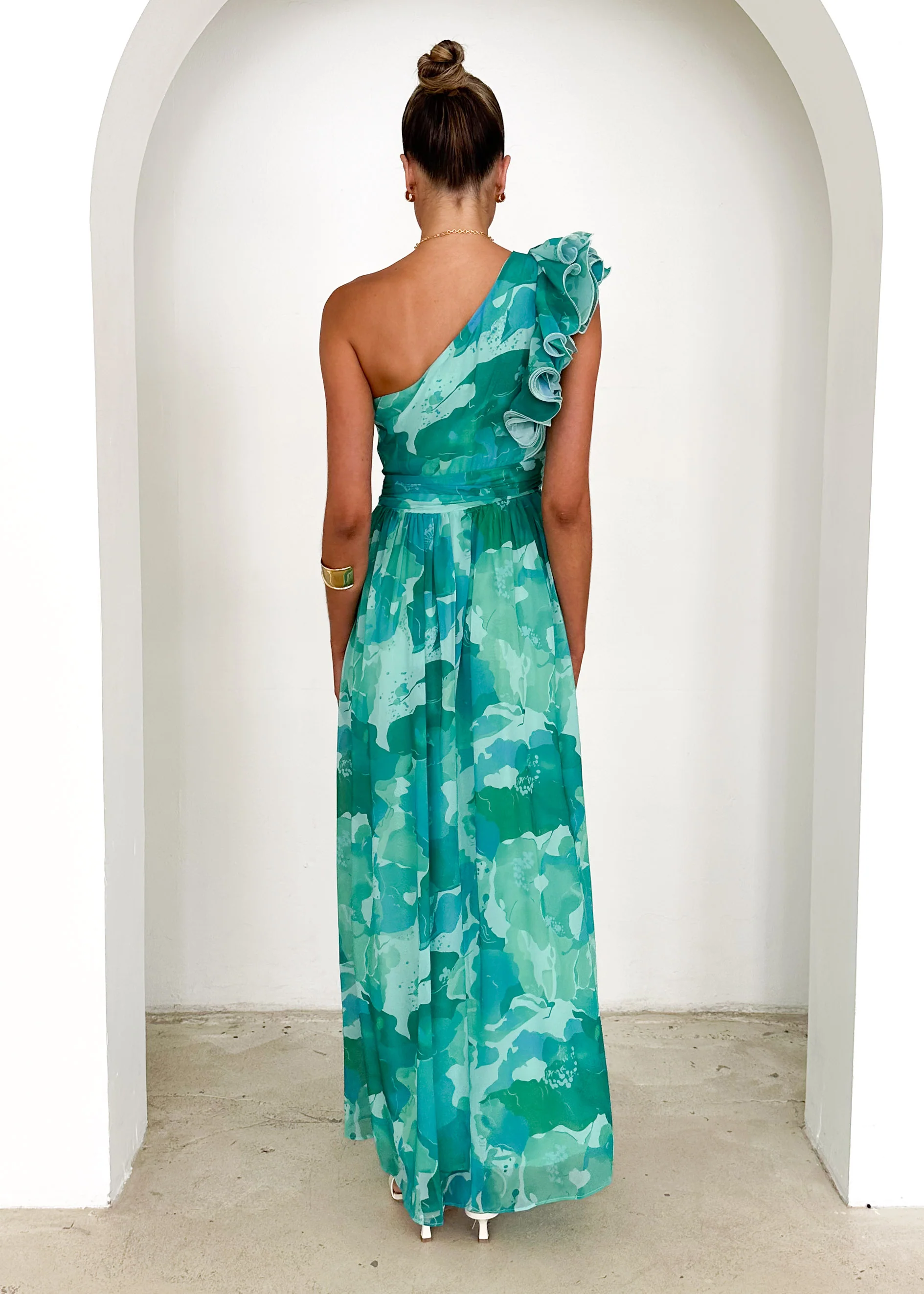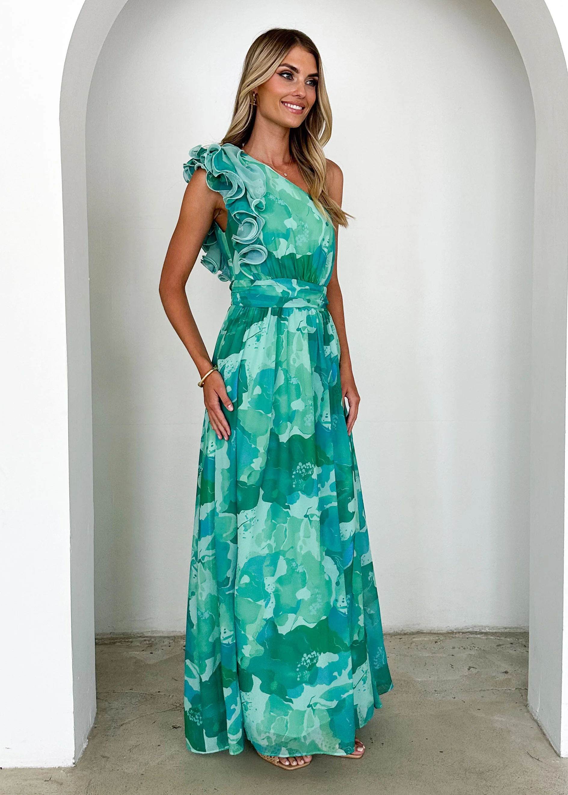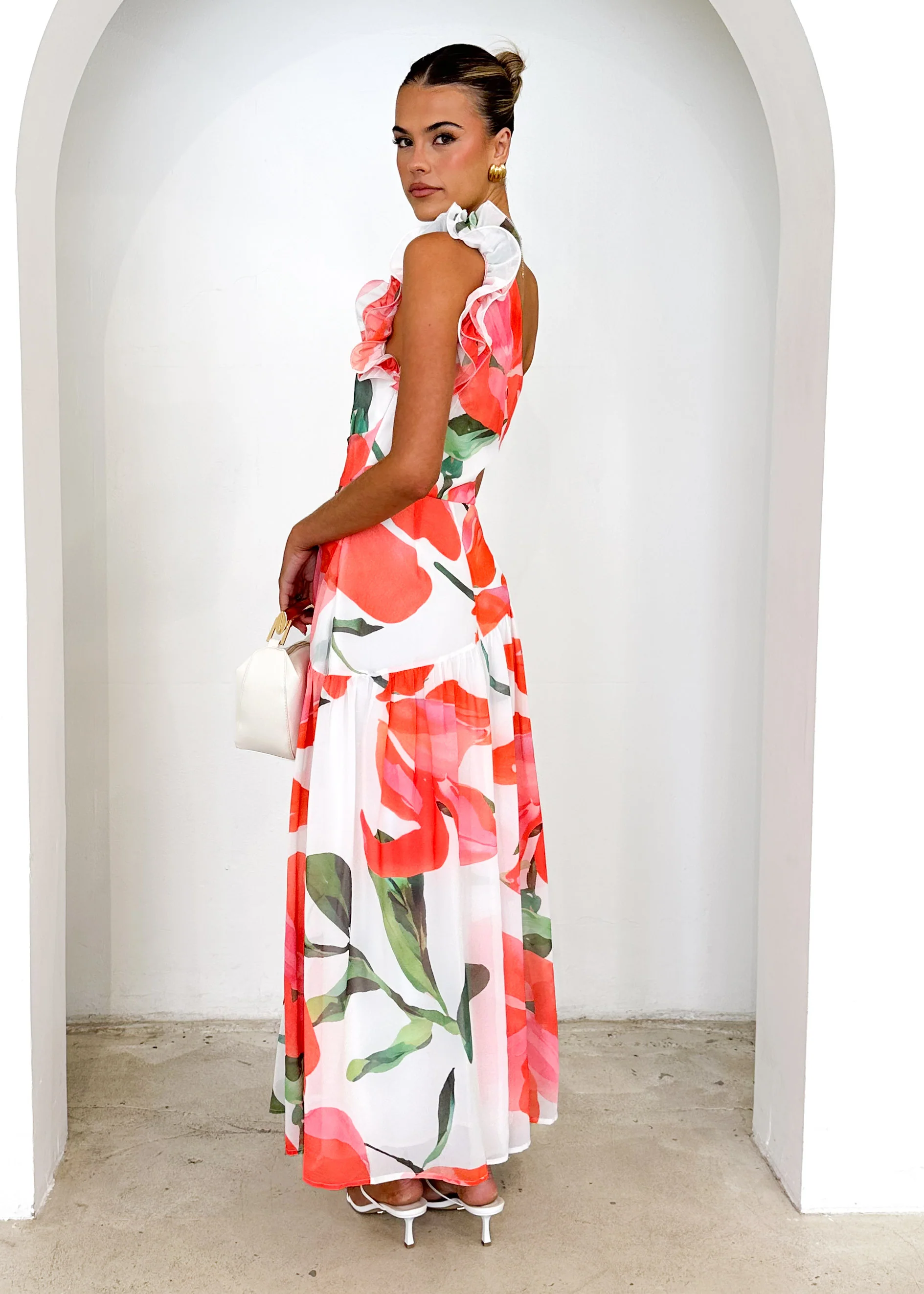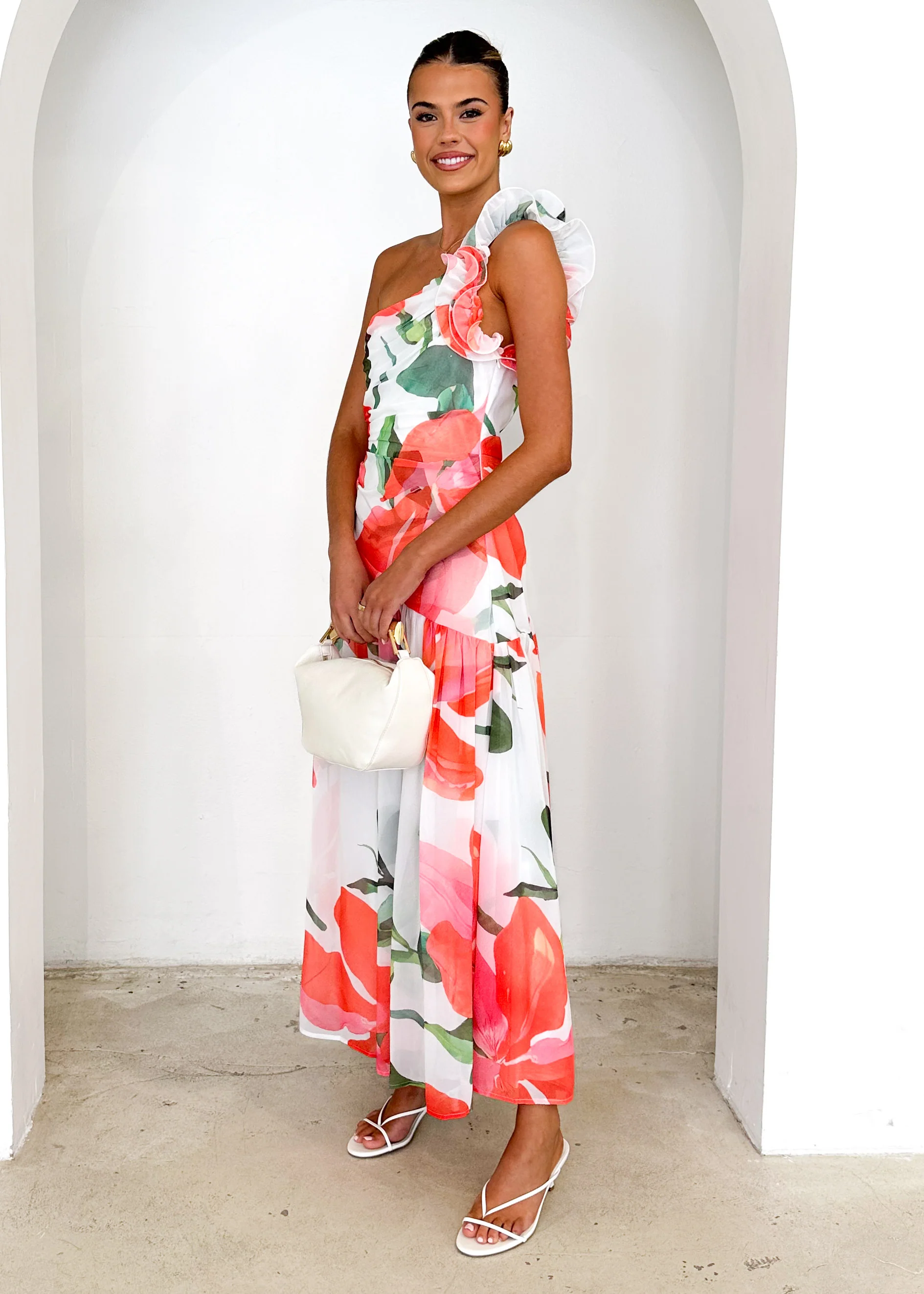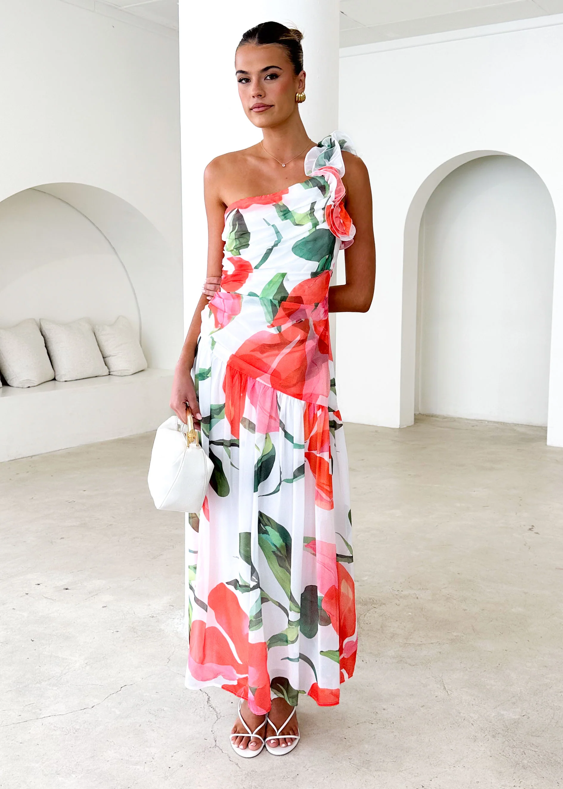 Lentara One Shoulder Maxi Dress - Red Flowers