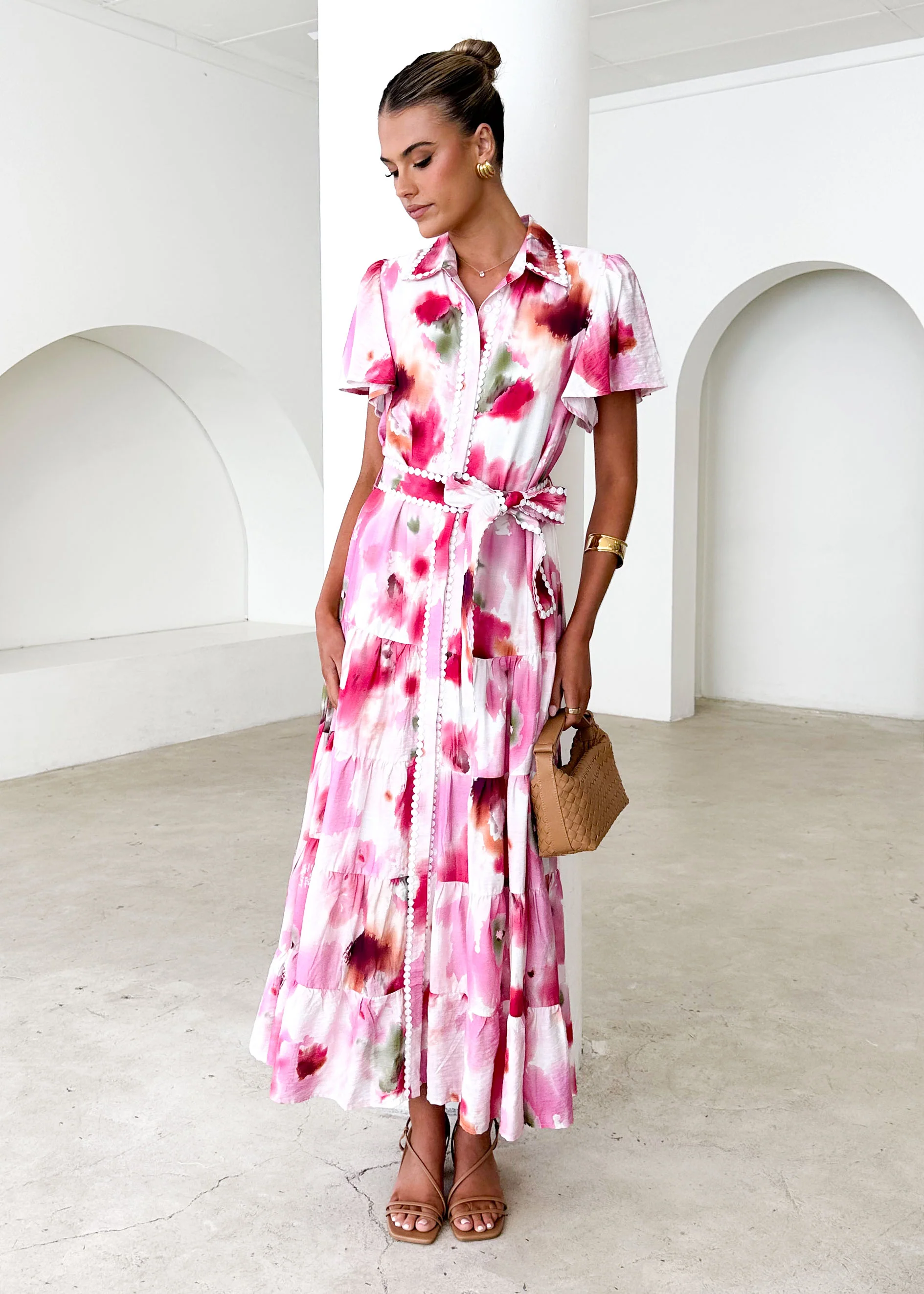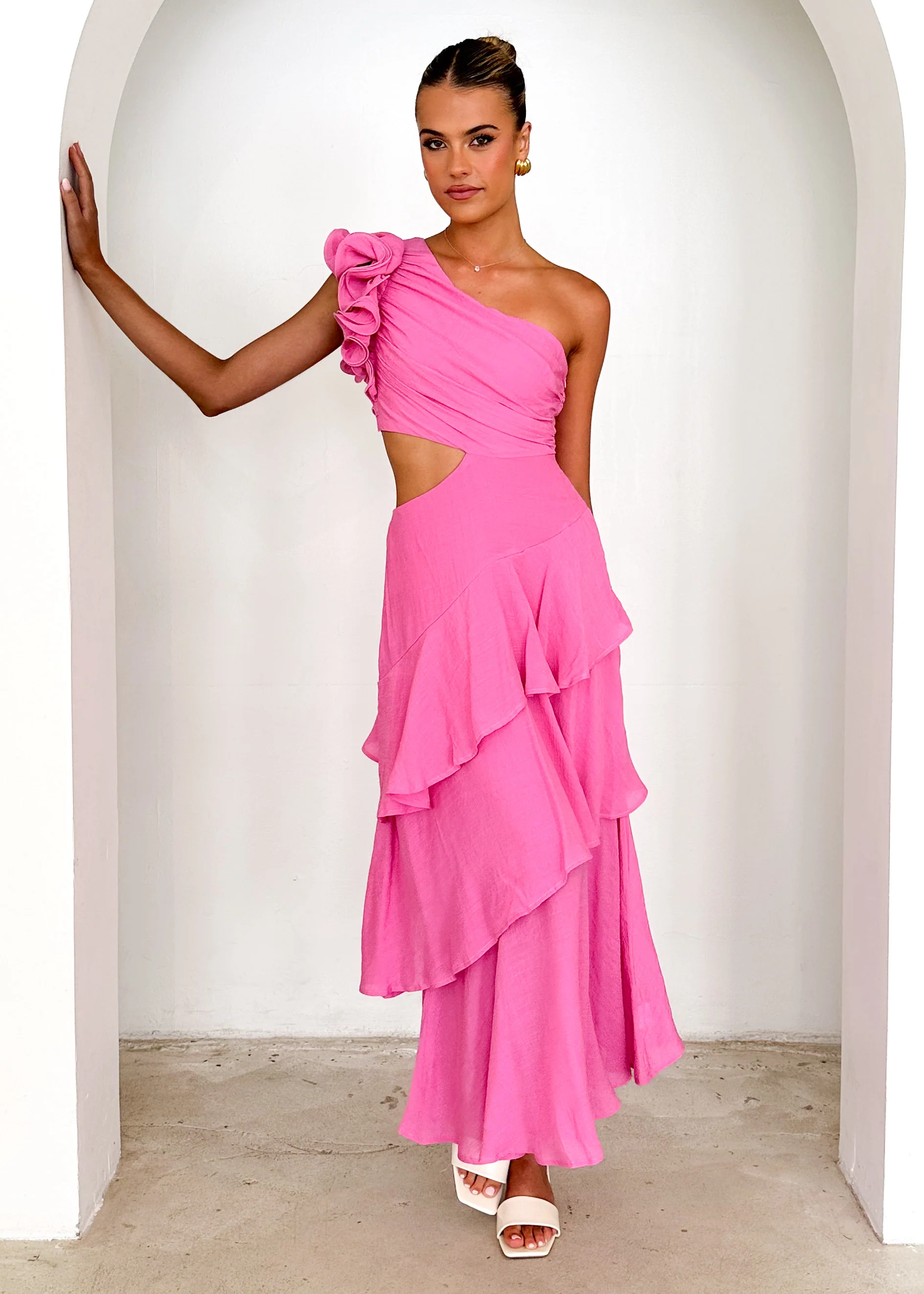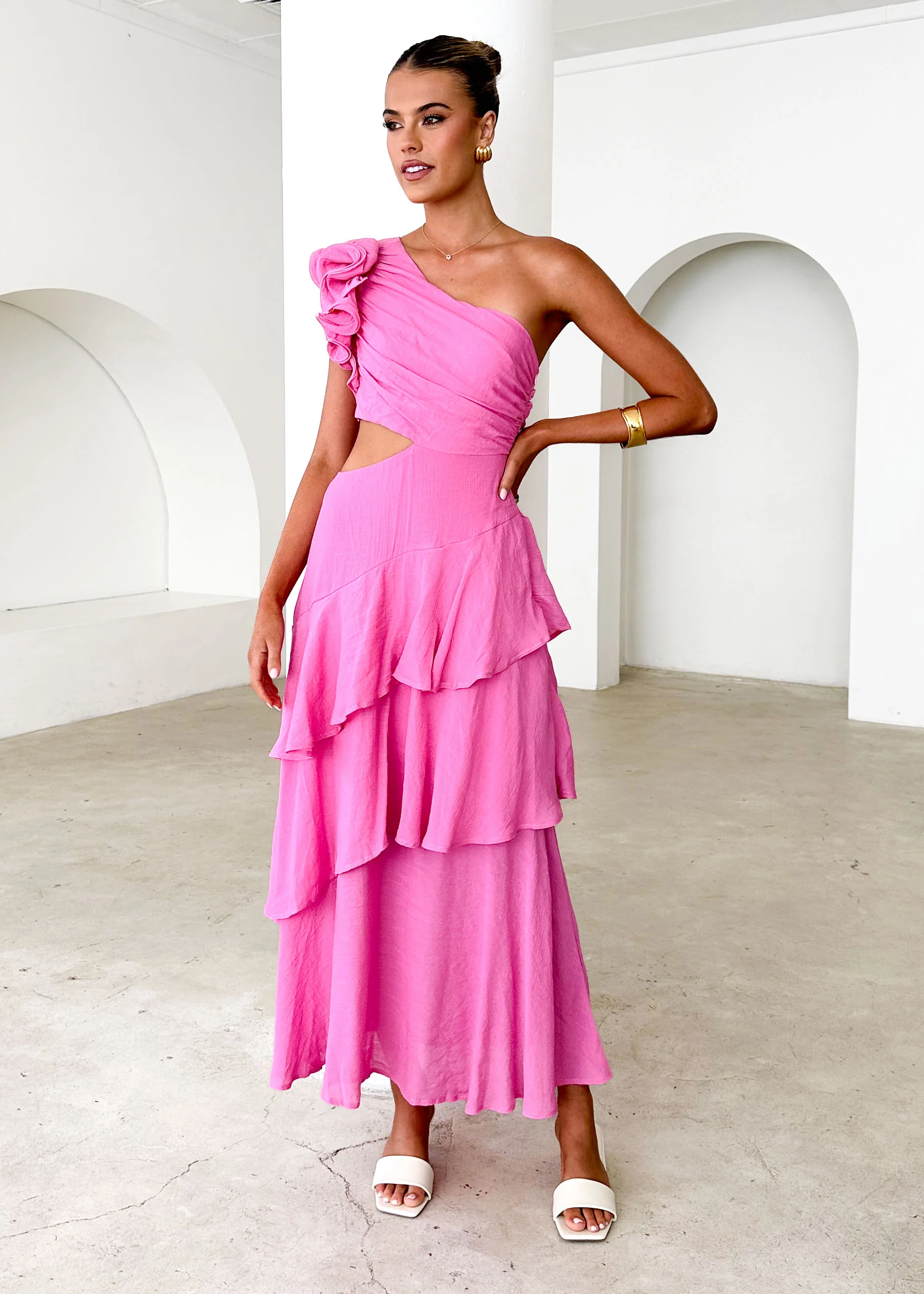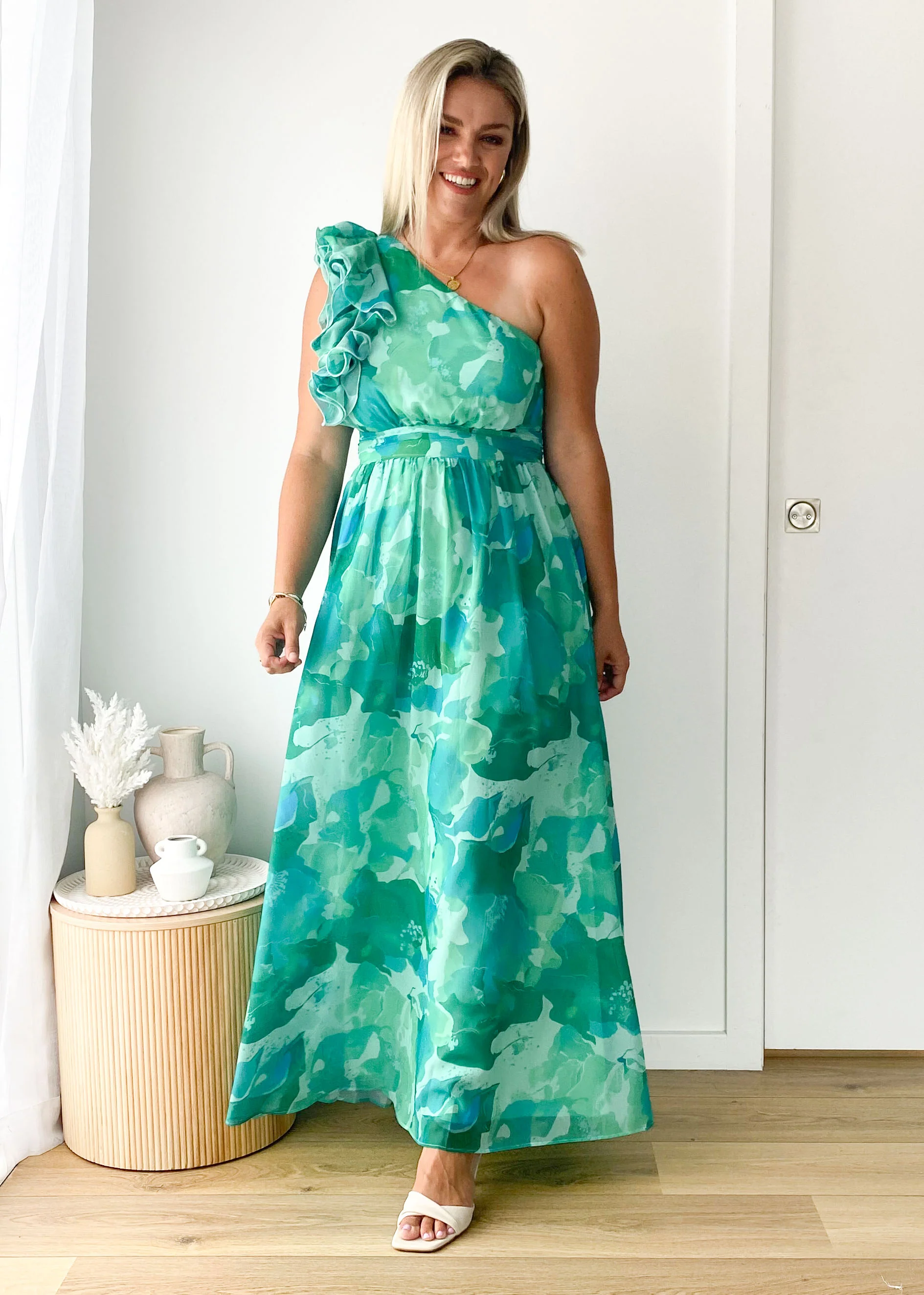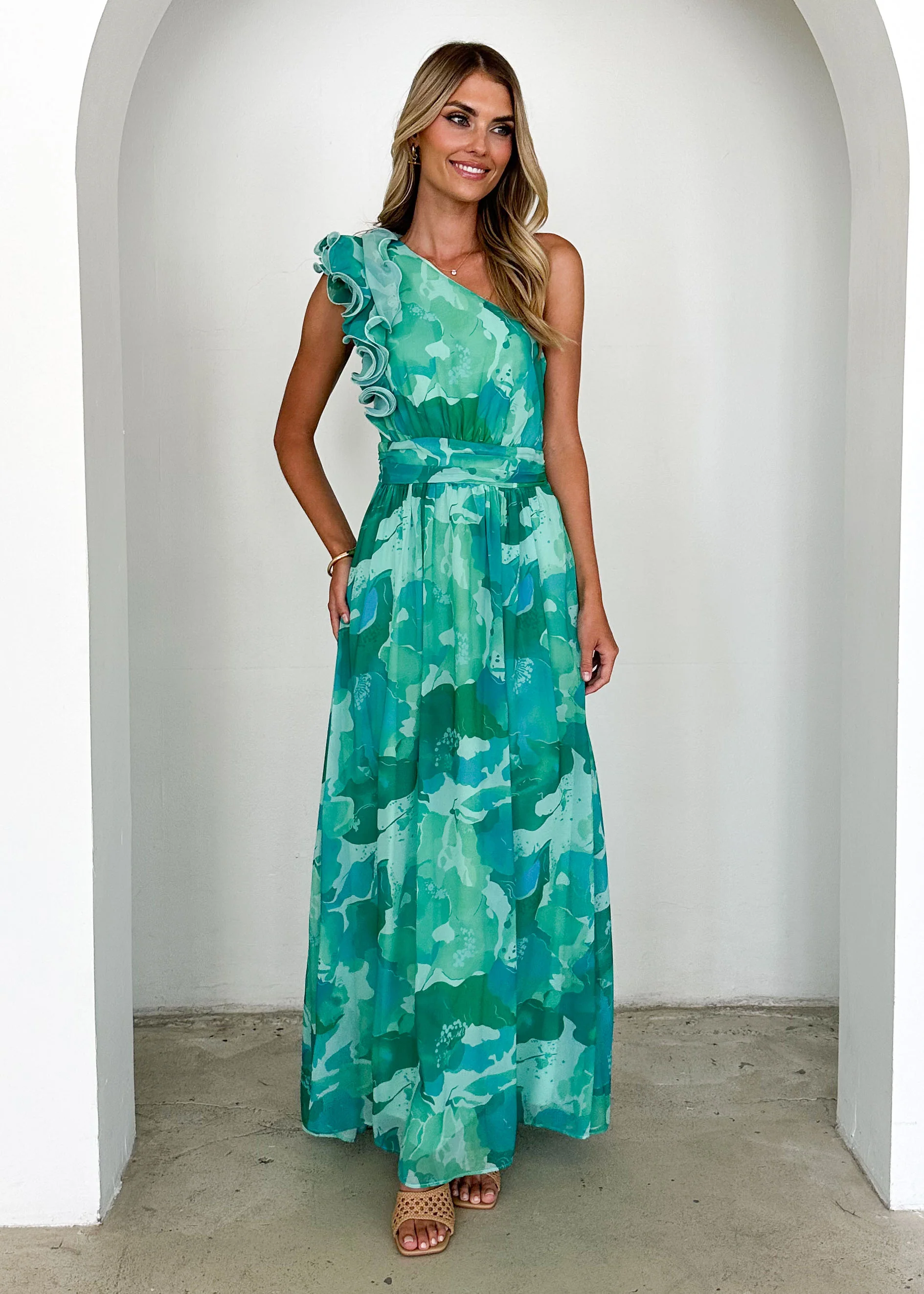 Lentara One Shoulder Maxi Dress - Red Flowers