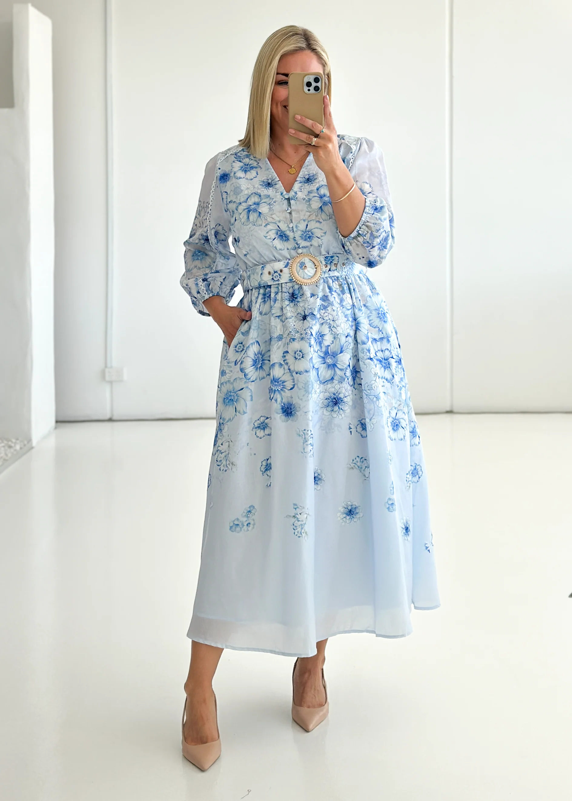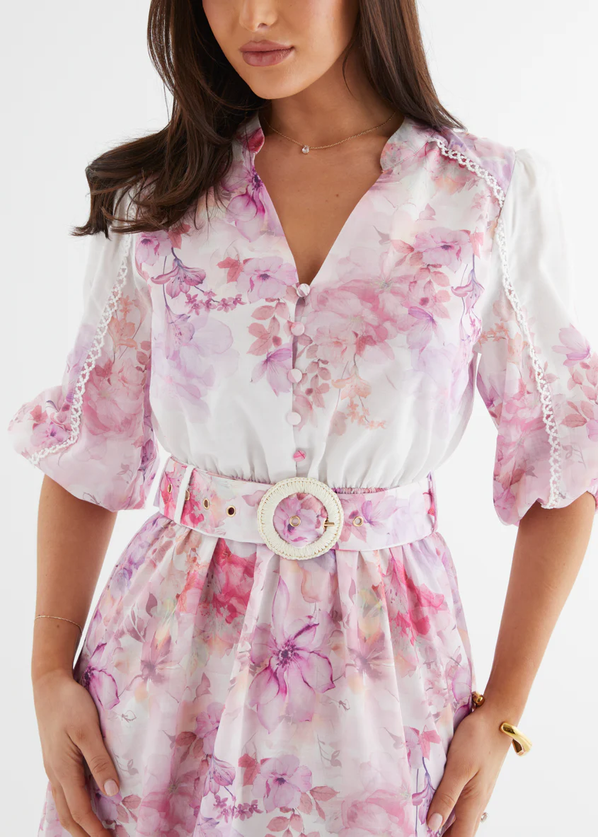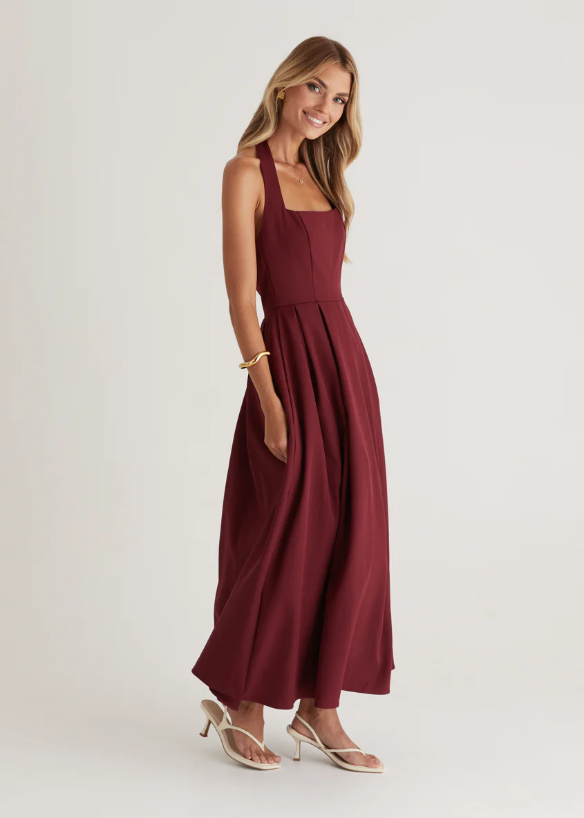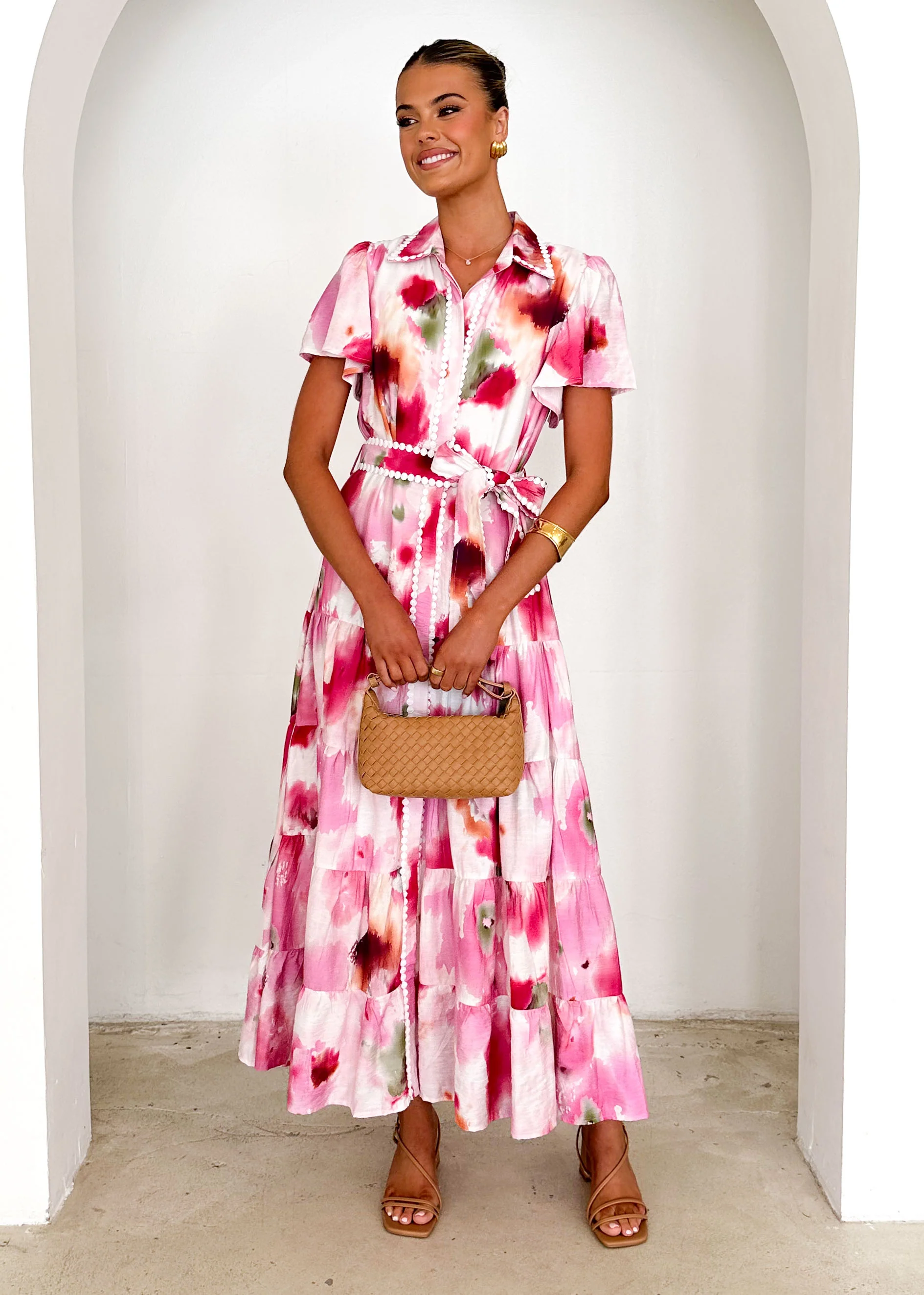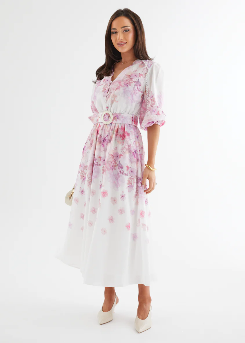 Lentara One Shoulder Maxi Dress - Red Flowers