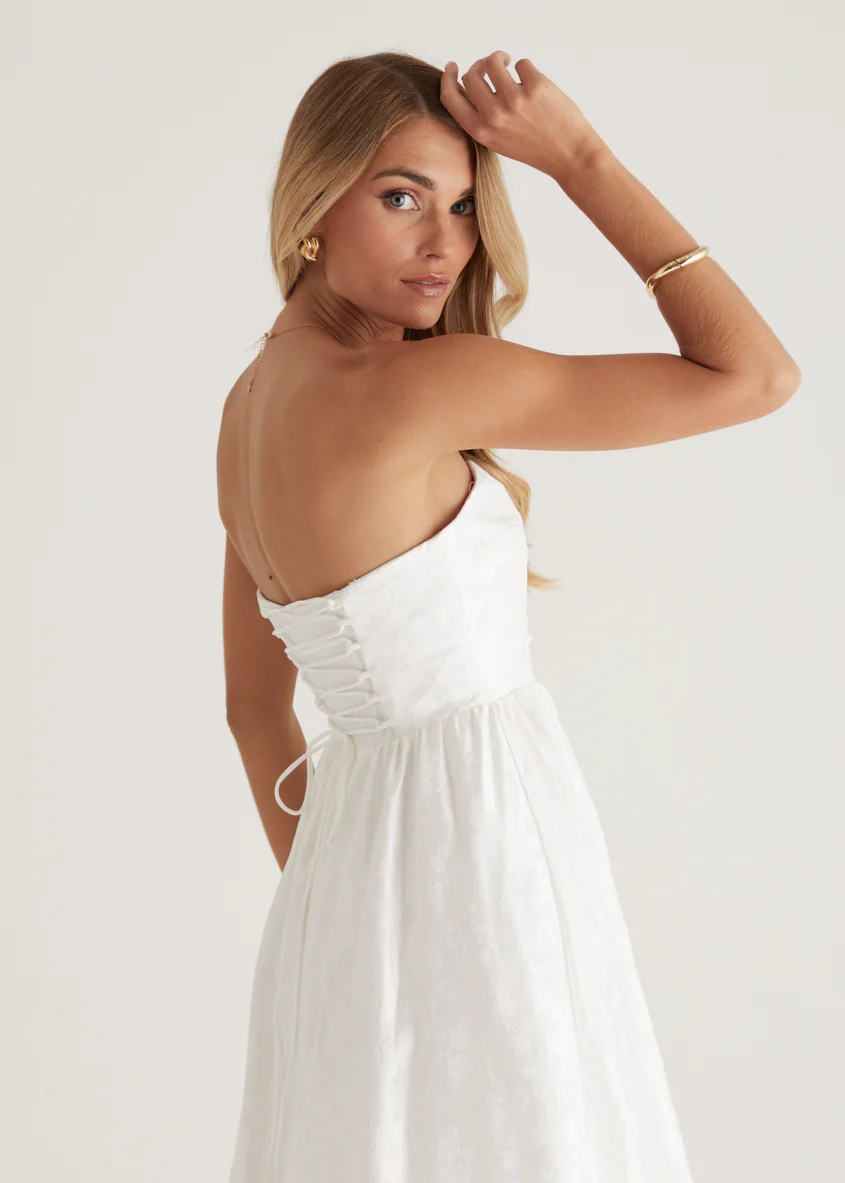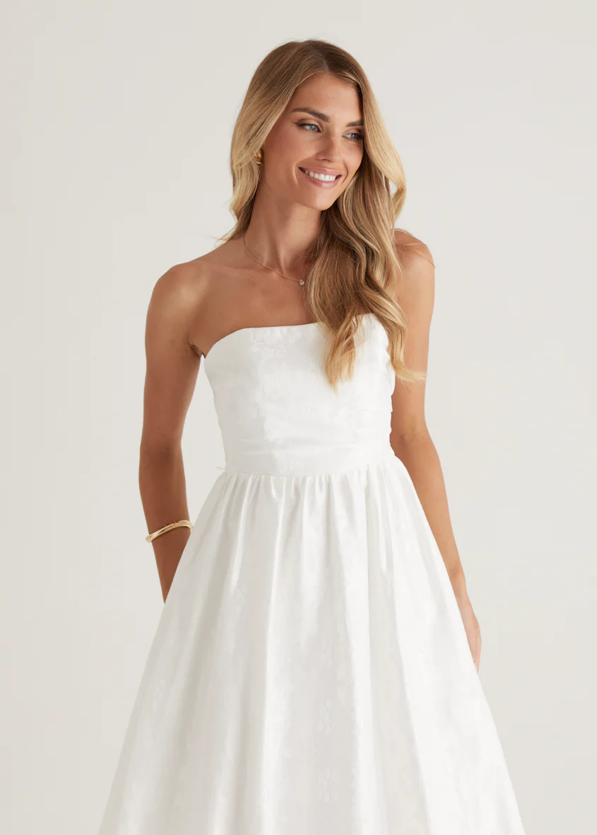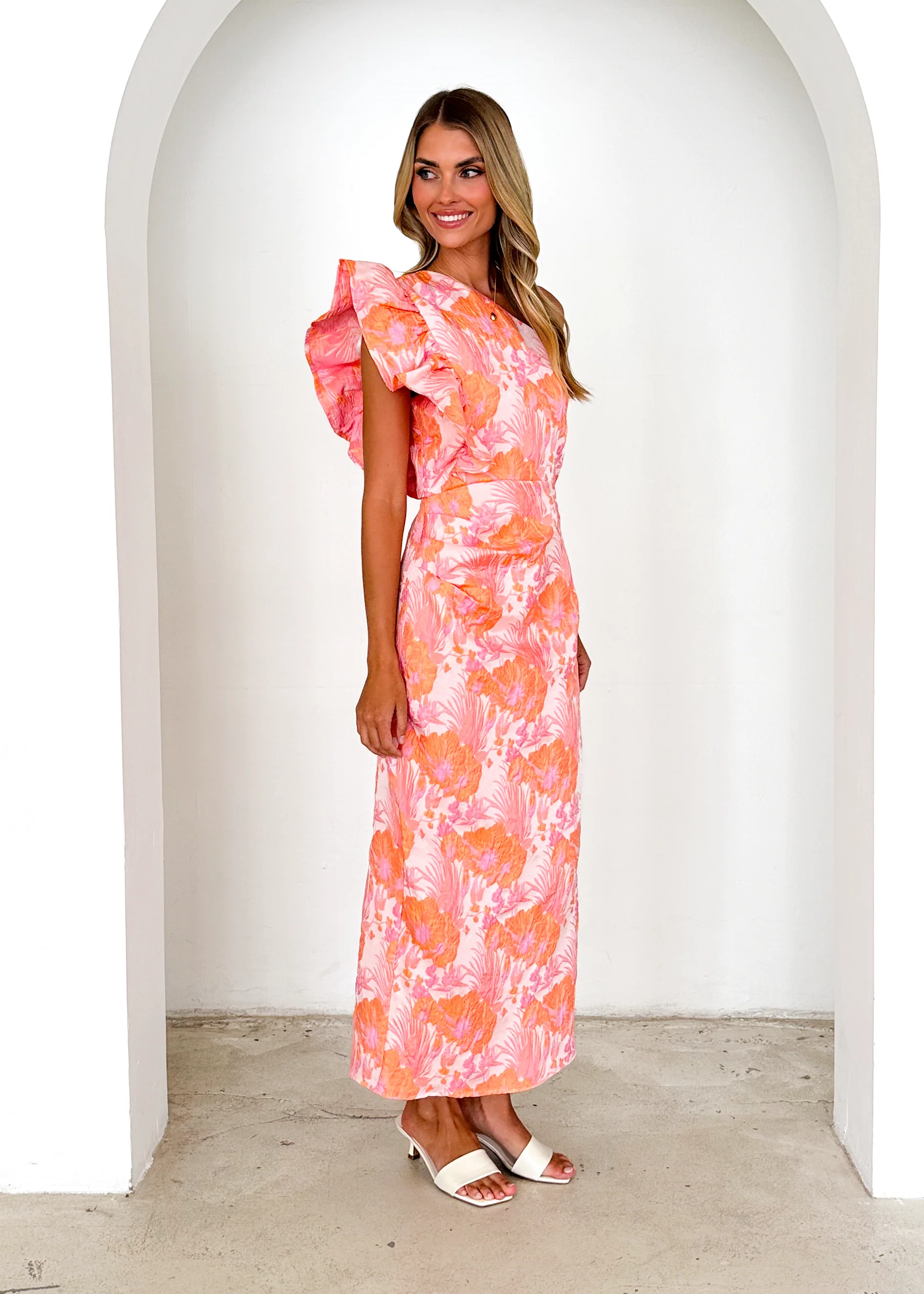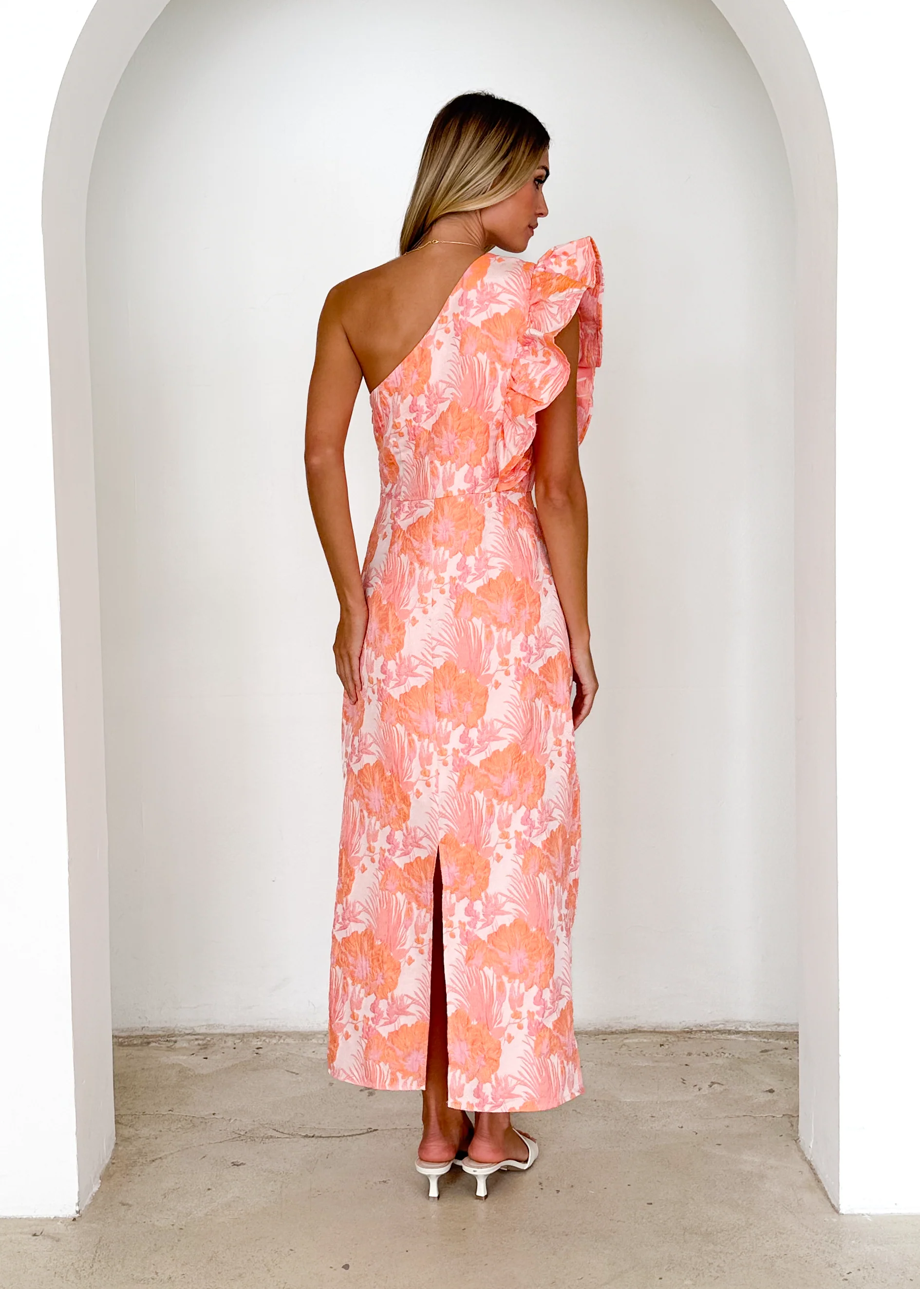 Lexus One Shoulder Midi Dress - Peach Jacquard