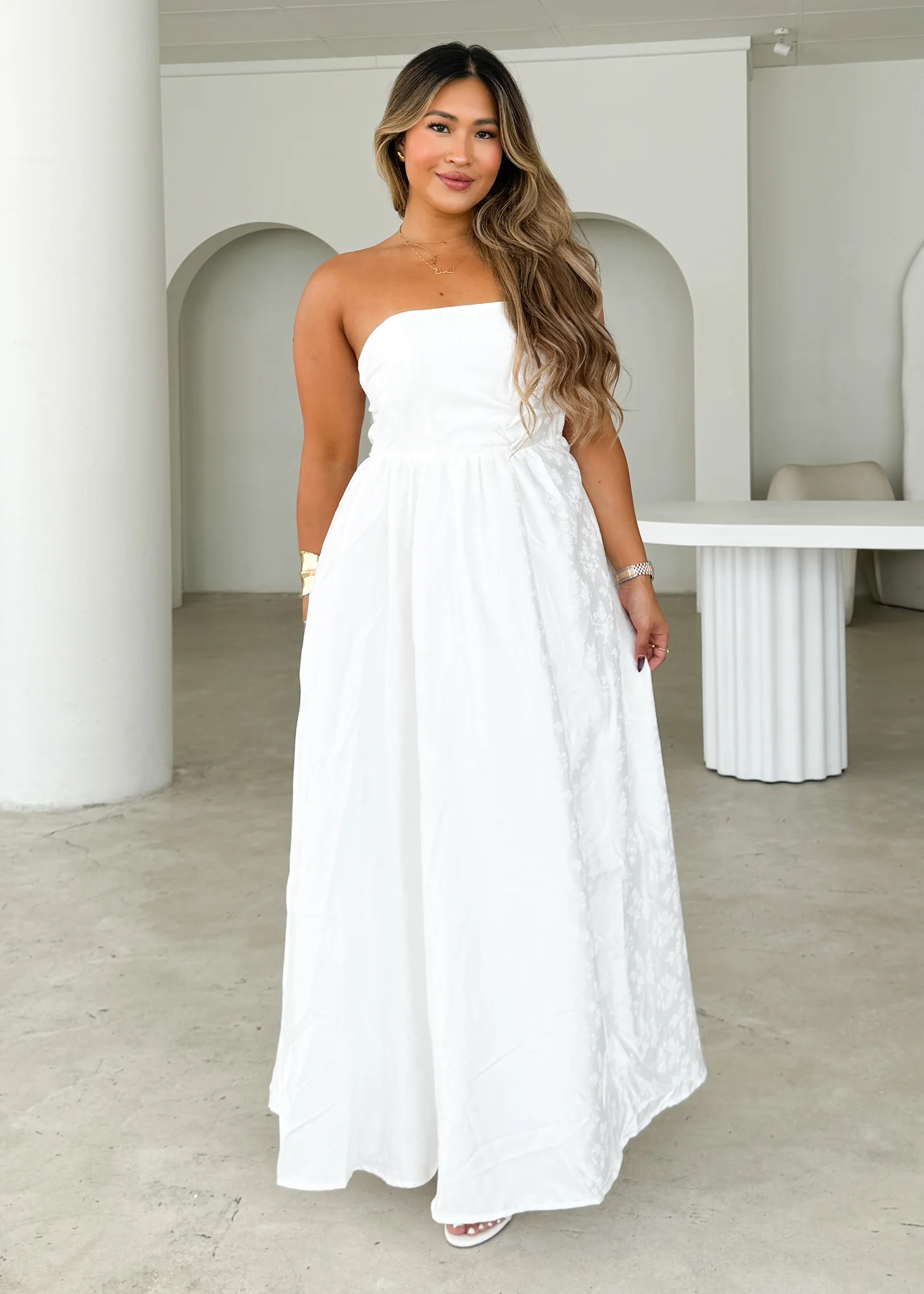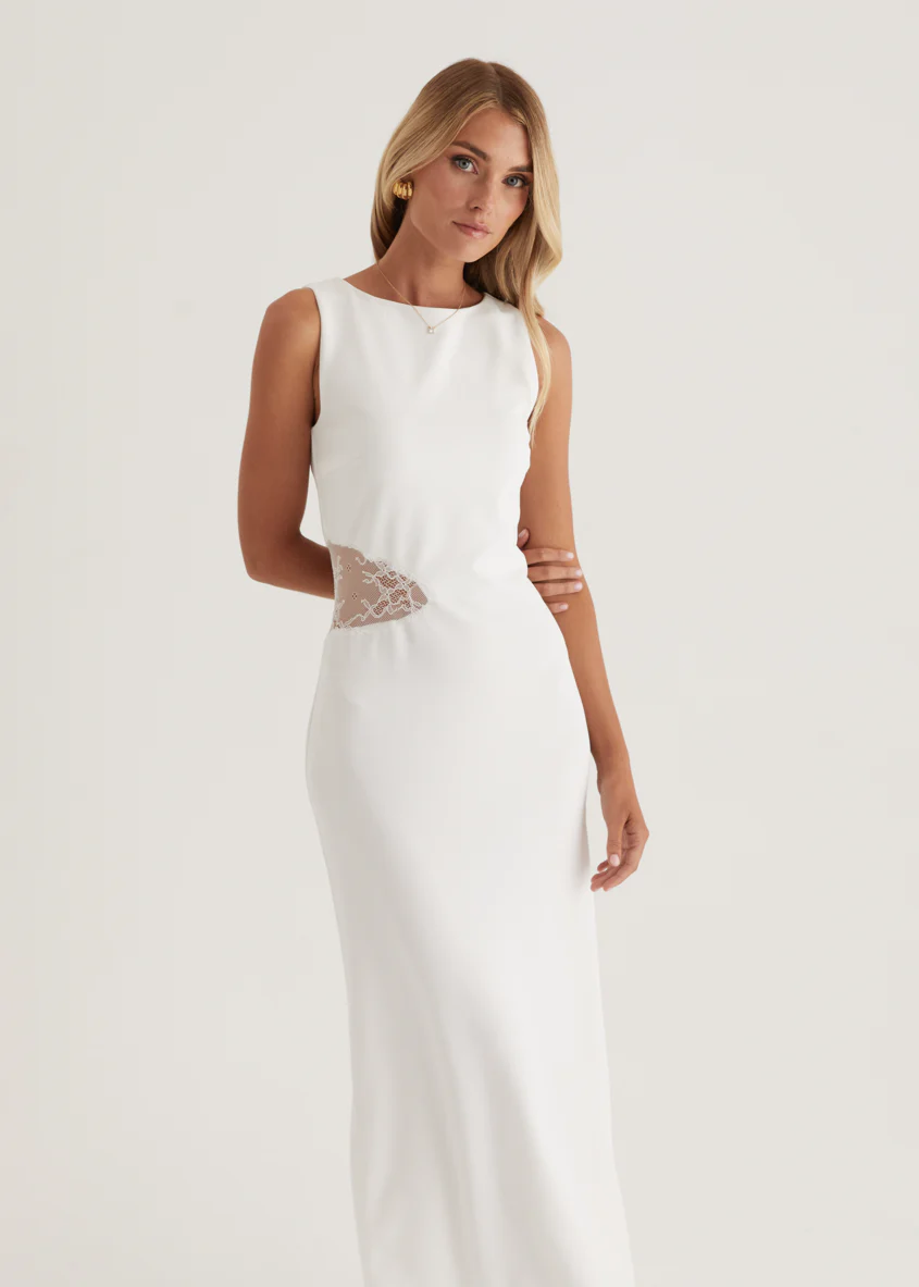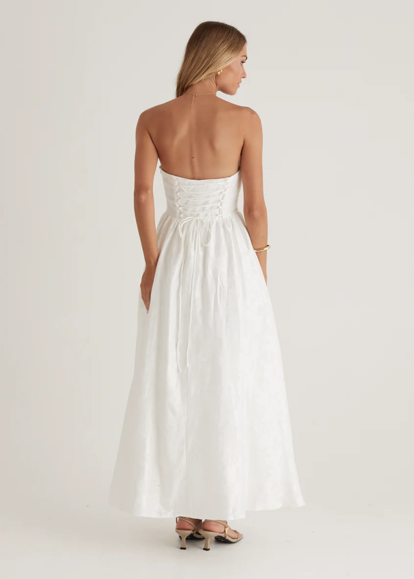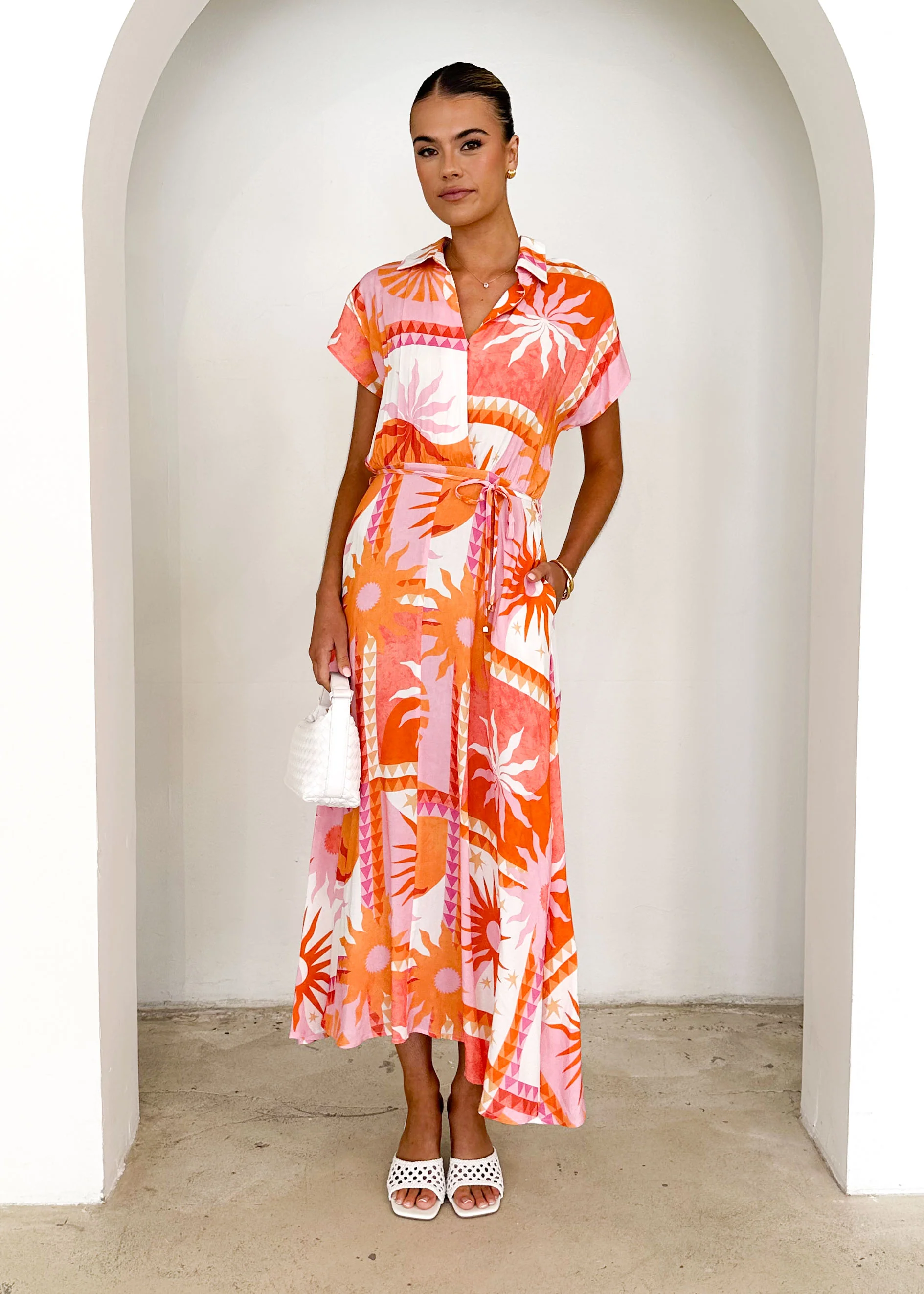 Lexus One Shoulder Midi Dress - Peach Jacquard
