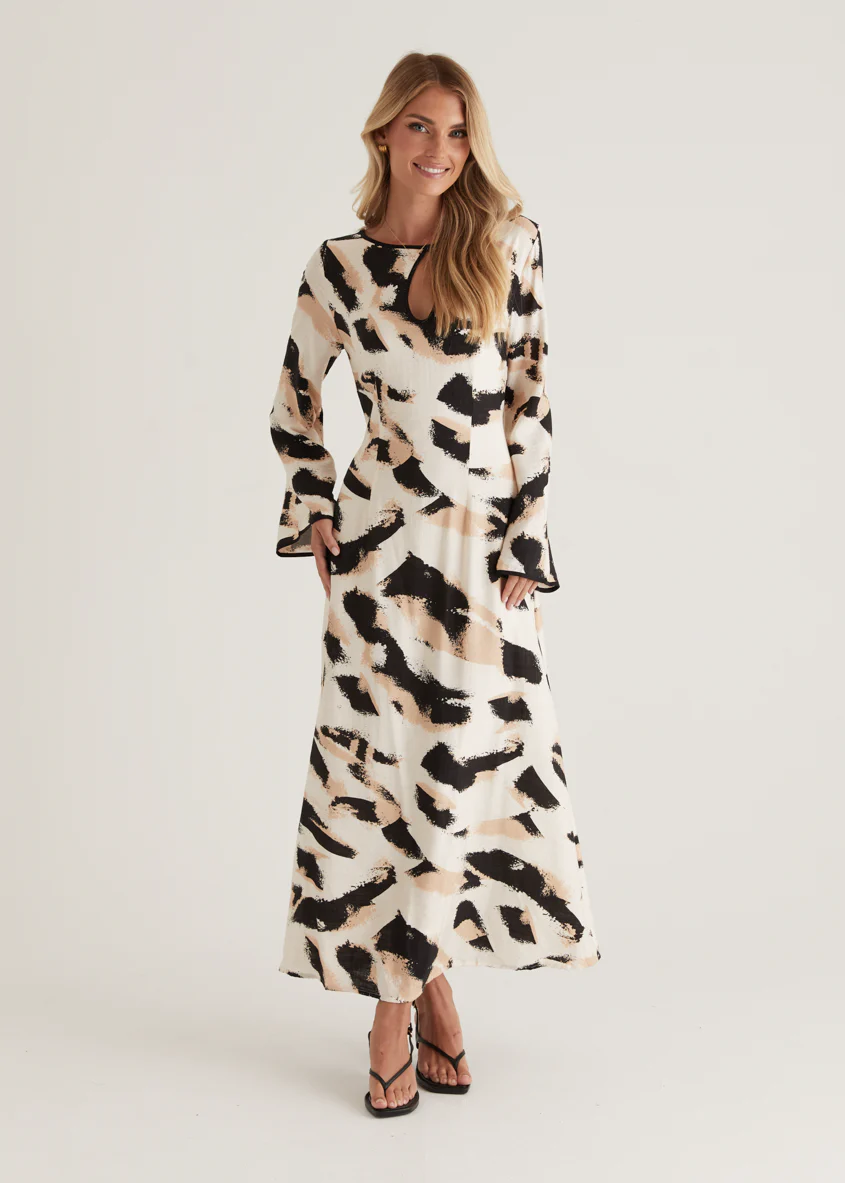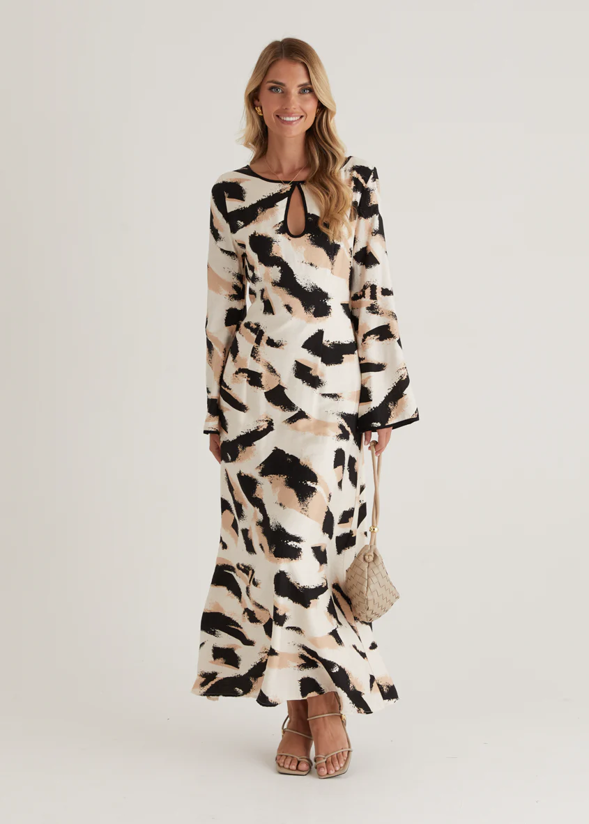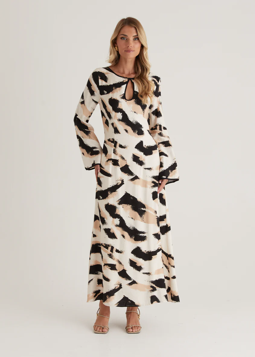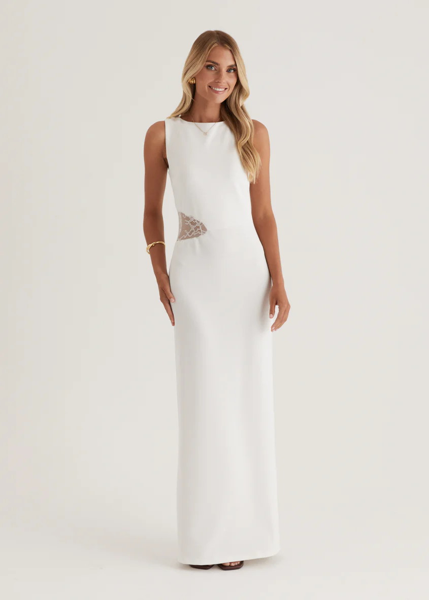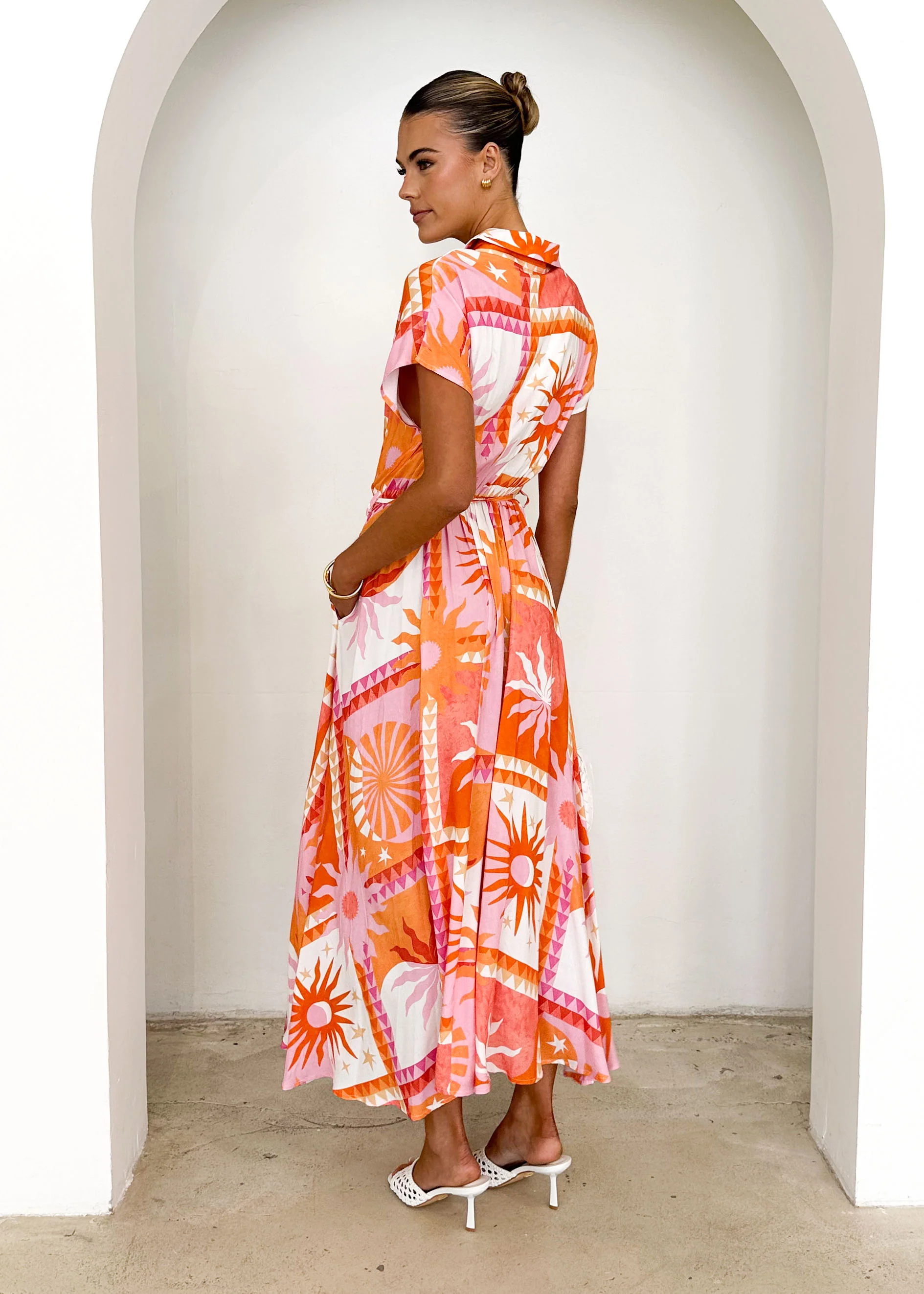 Lexus One Shoulder Midi Dress - Peach Jacquard