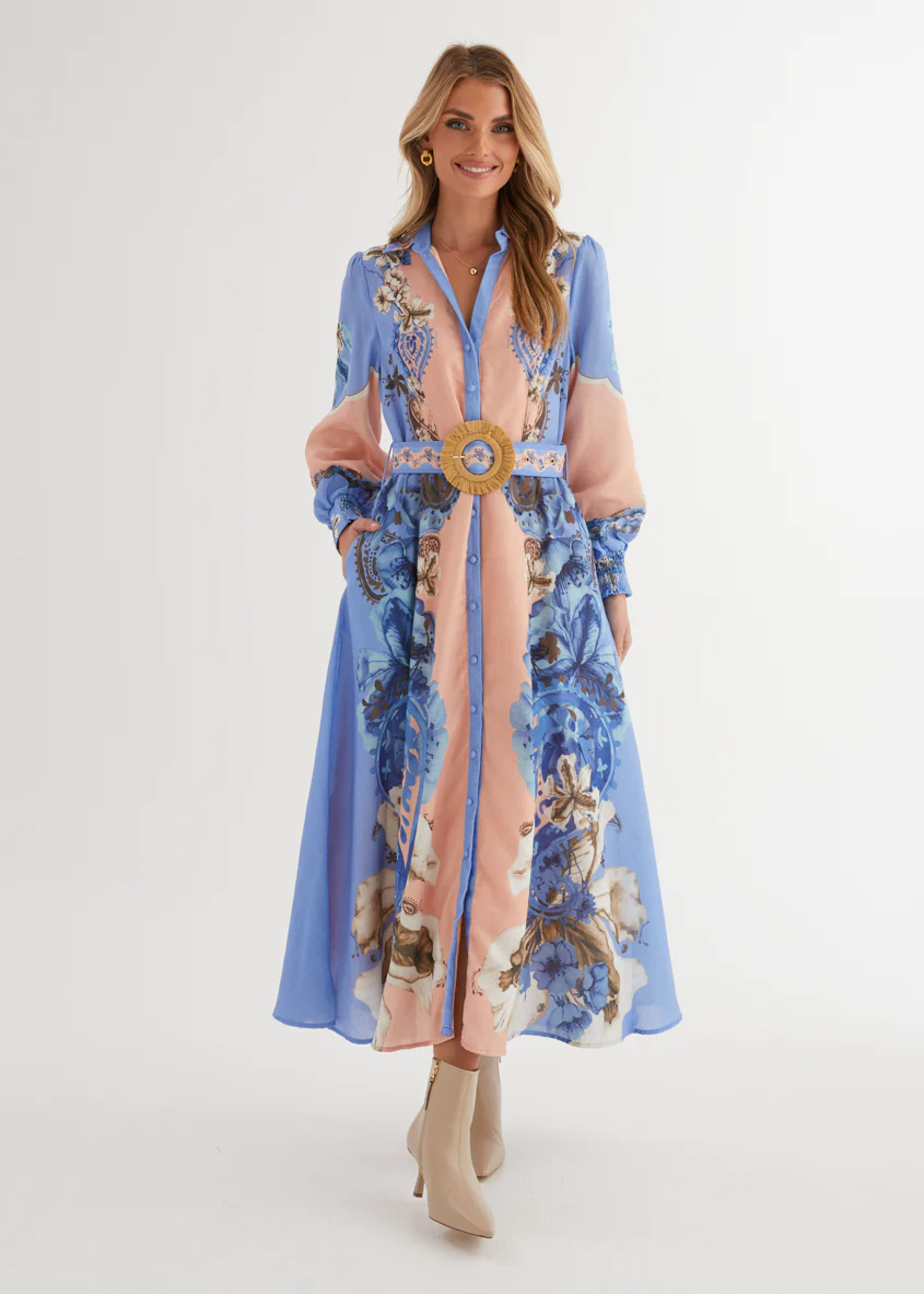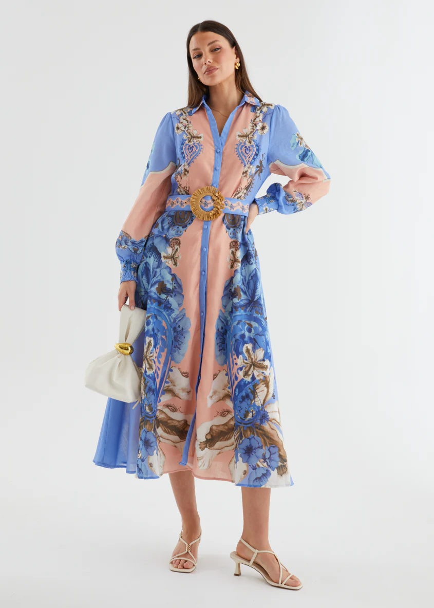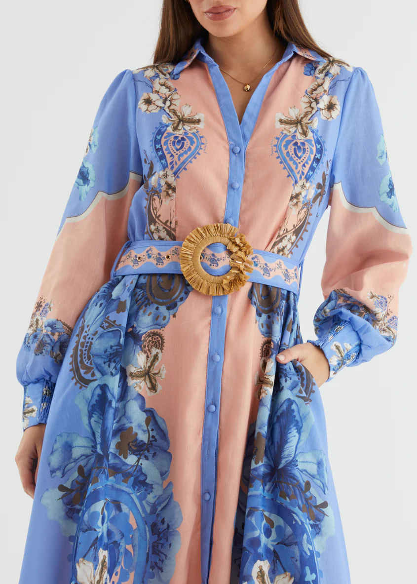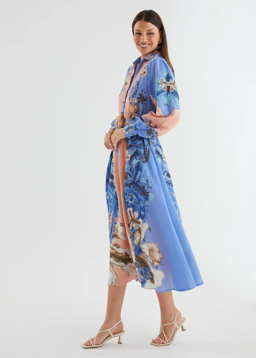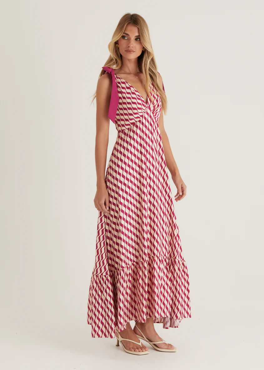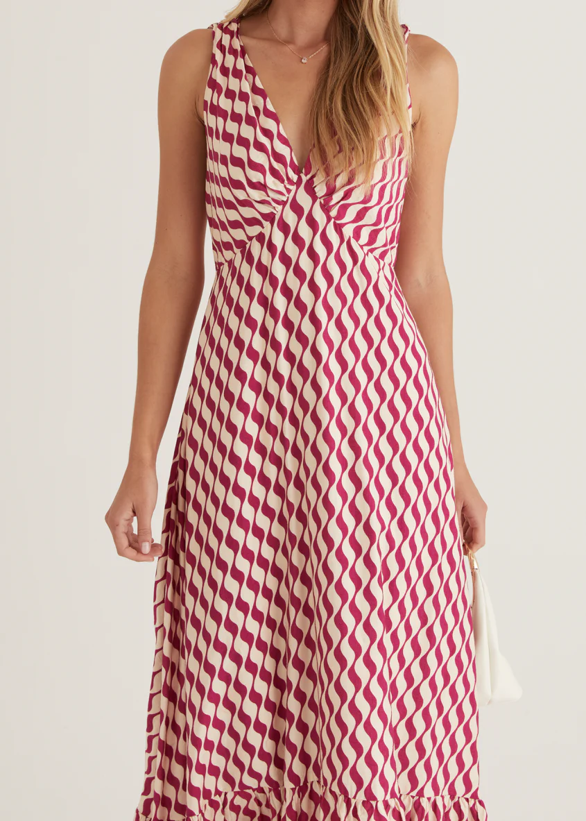 Halia Off Shoulder Midi Dress - Pink Watercolour