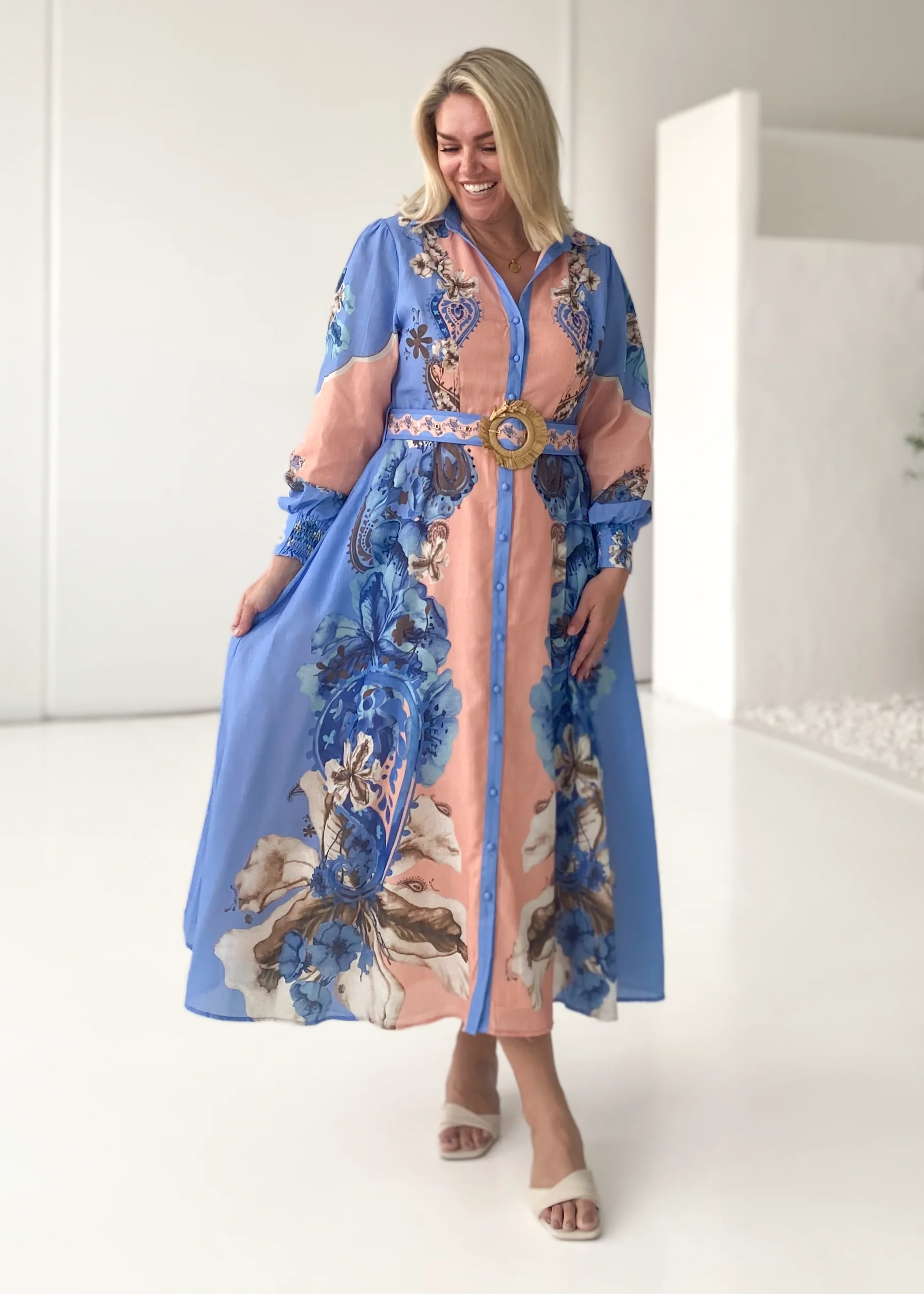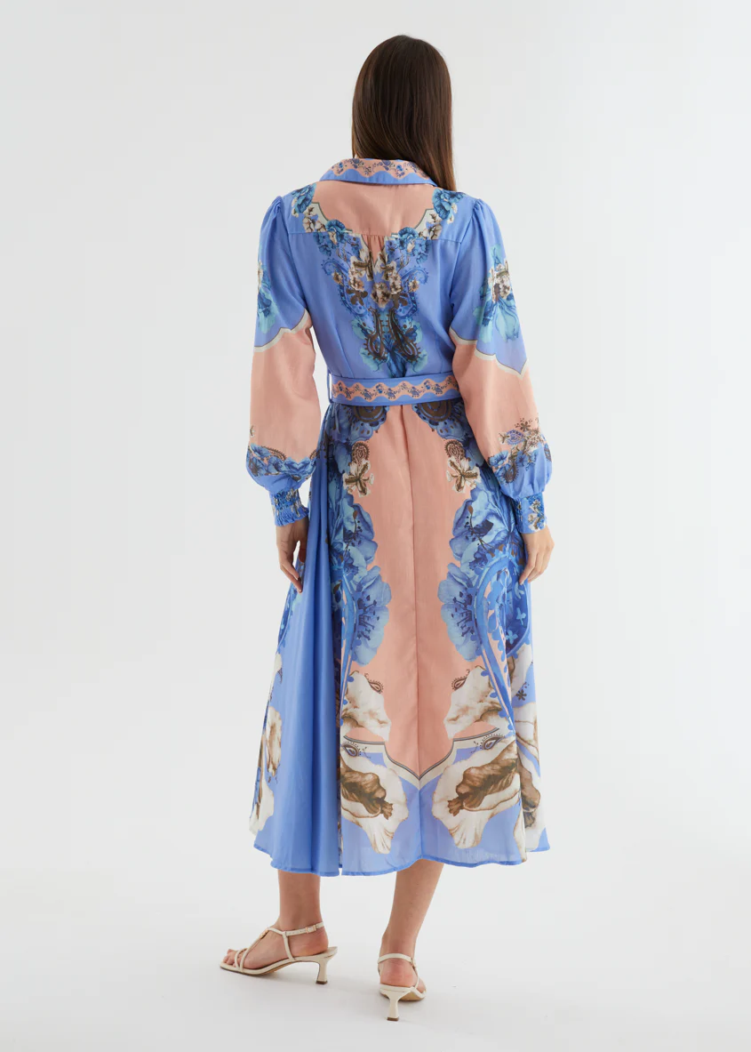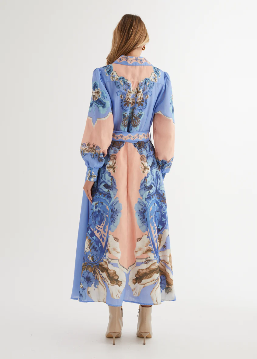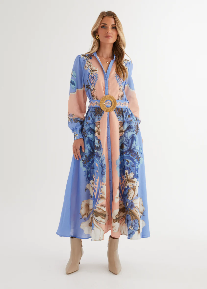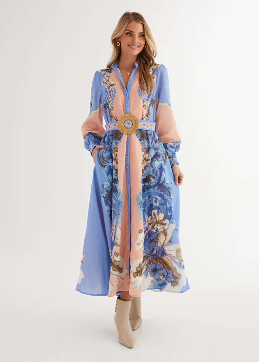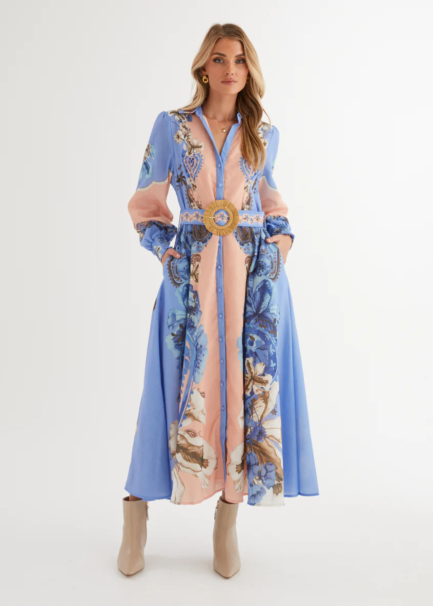 Halia Off Shoulder Midi Dress - Pink Watercolour