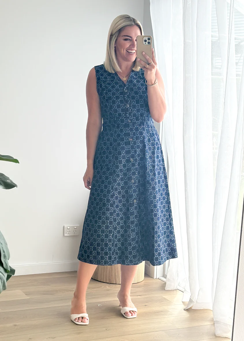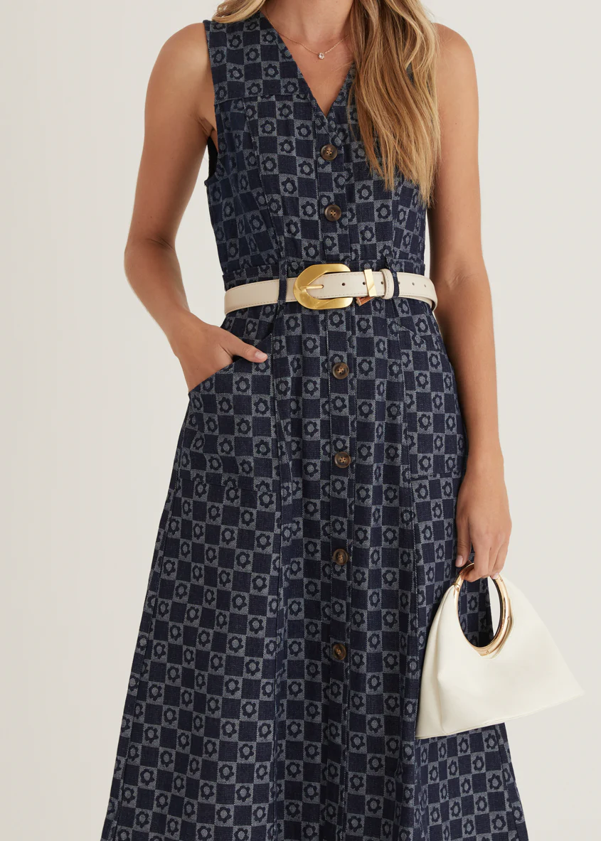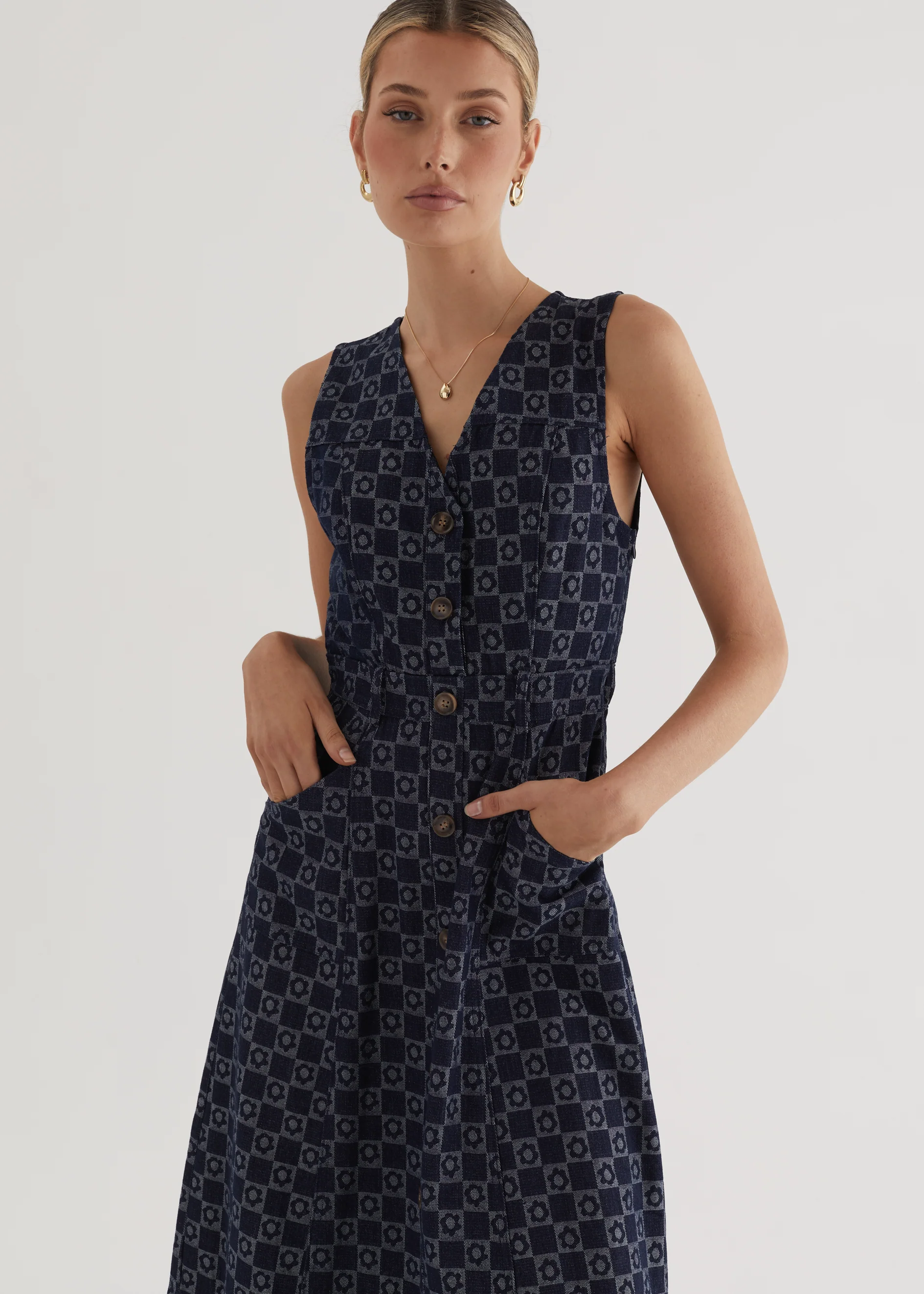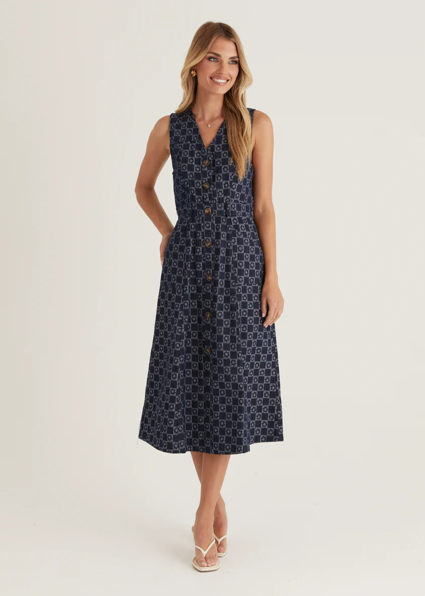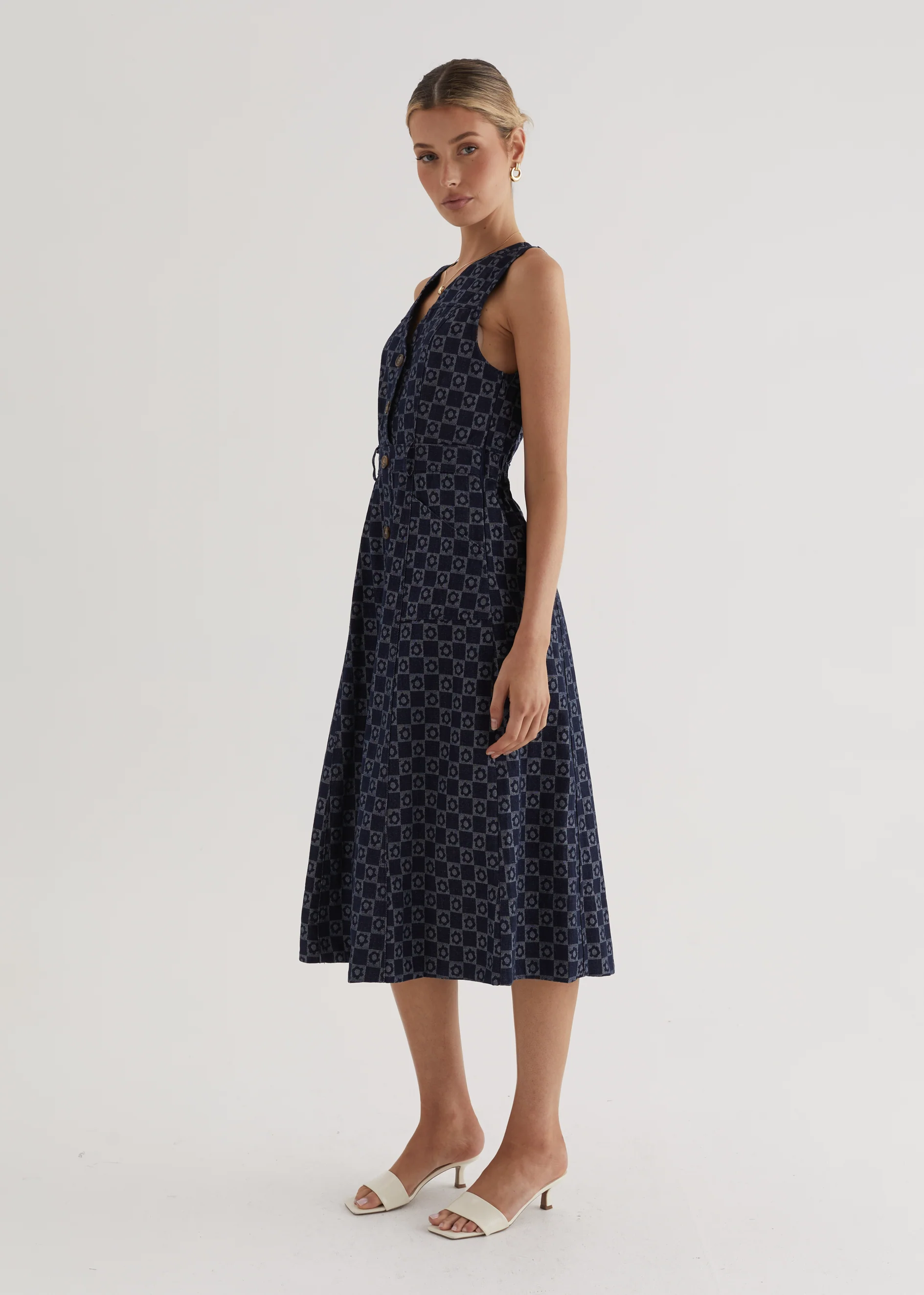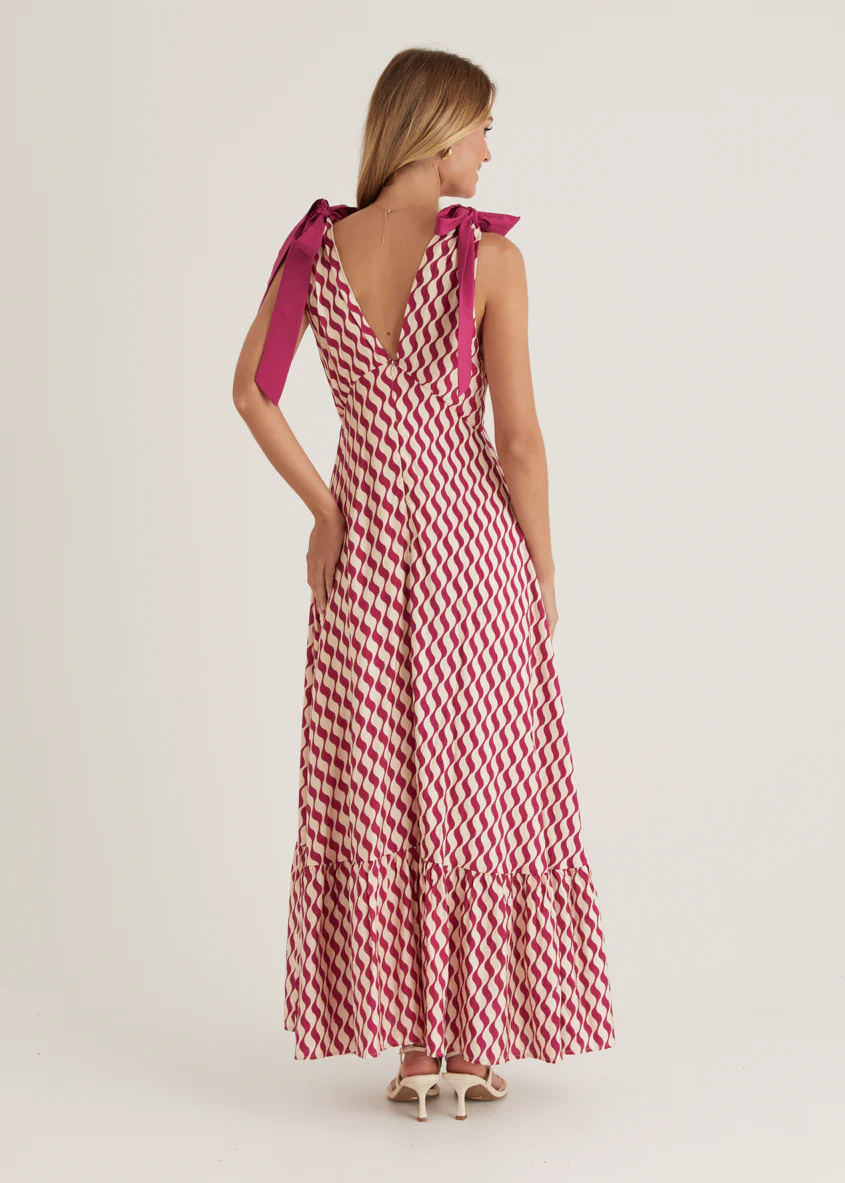 Halia Off Shoulder Midi Dress - Pink Watercolour