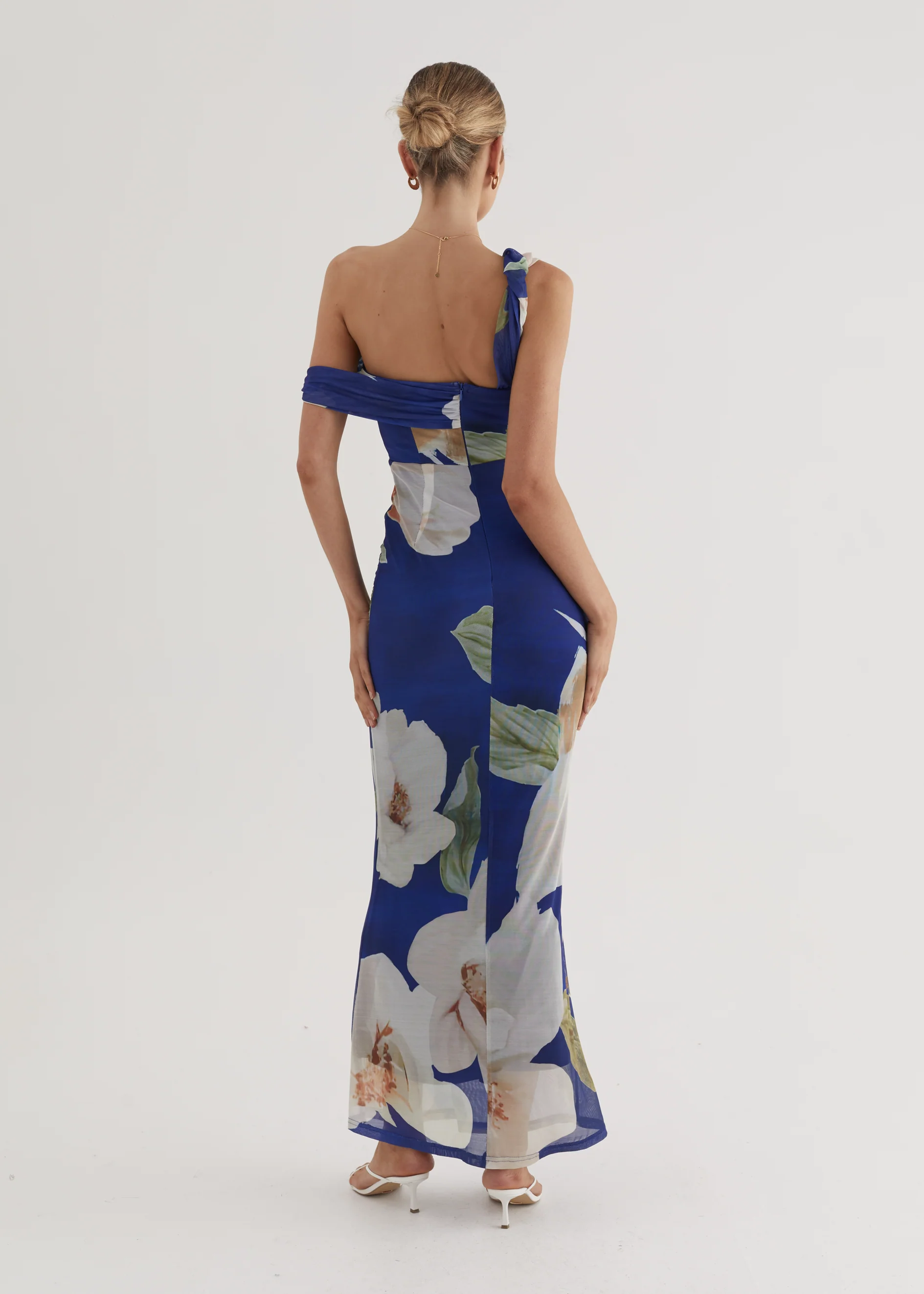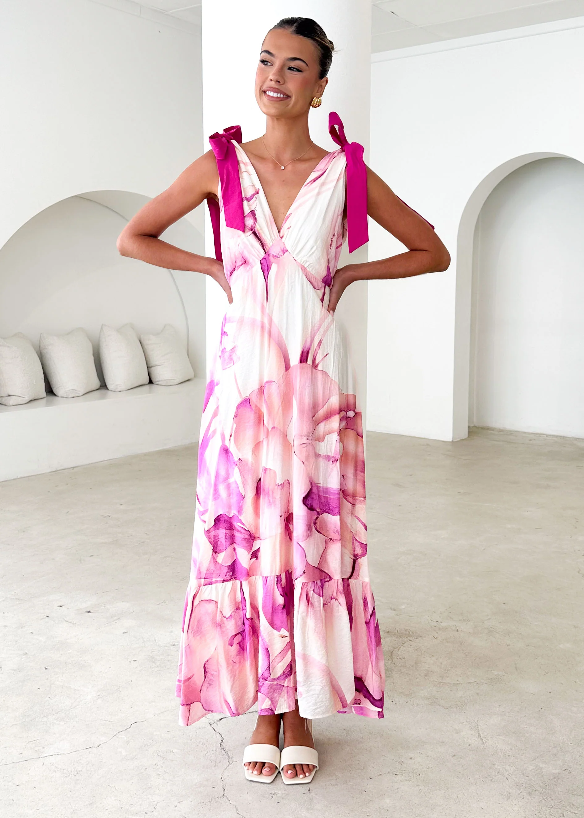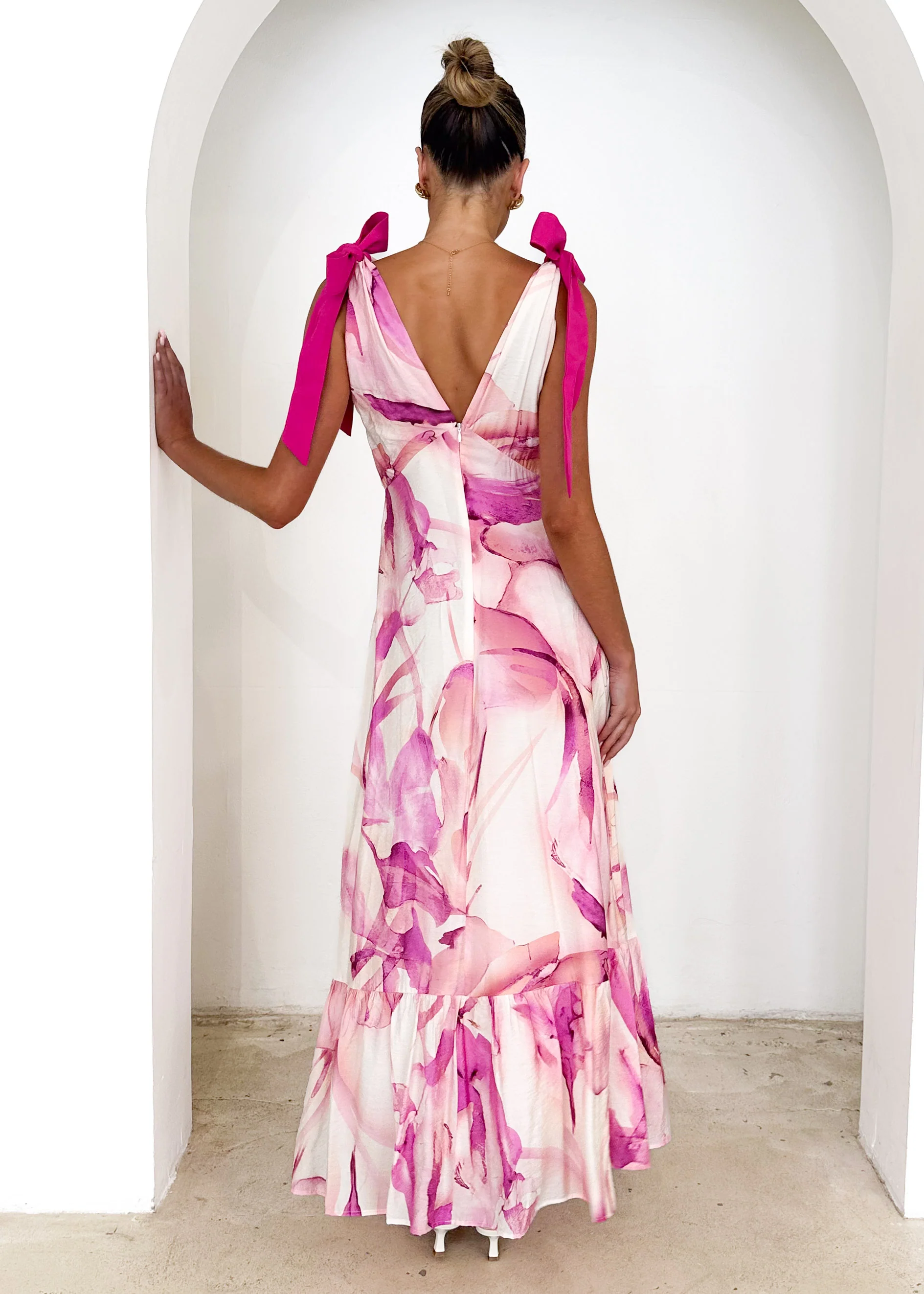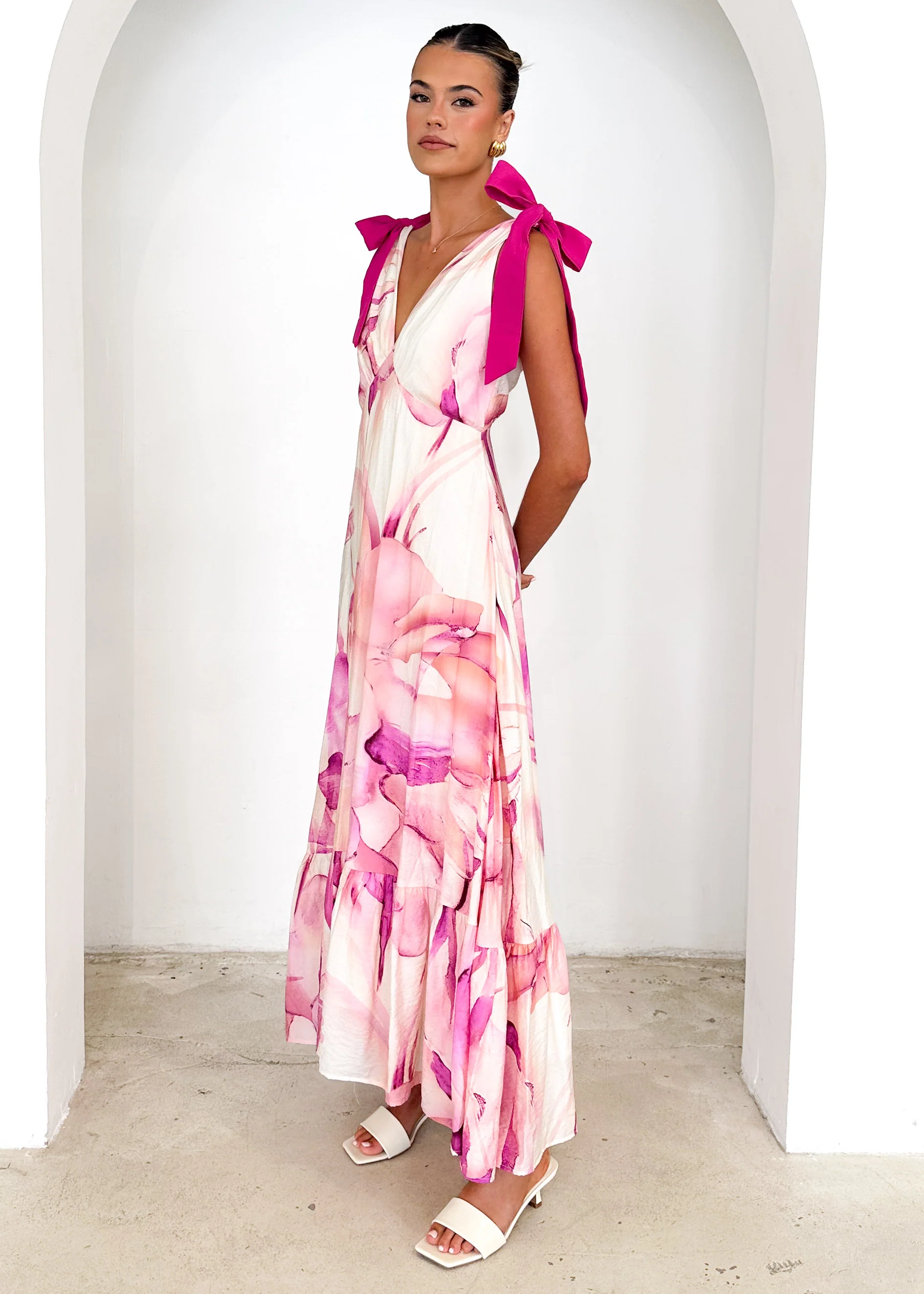 Iris Off Shoulder Mesh Maxi Dress - Hot Pink Floral
