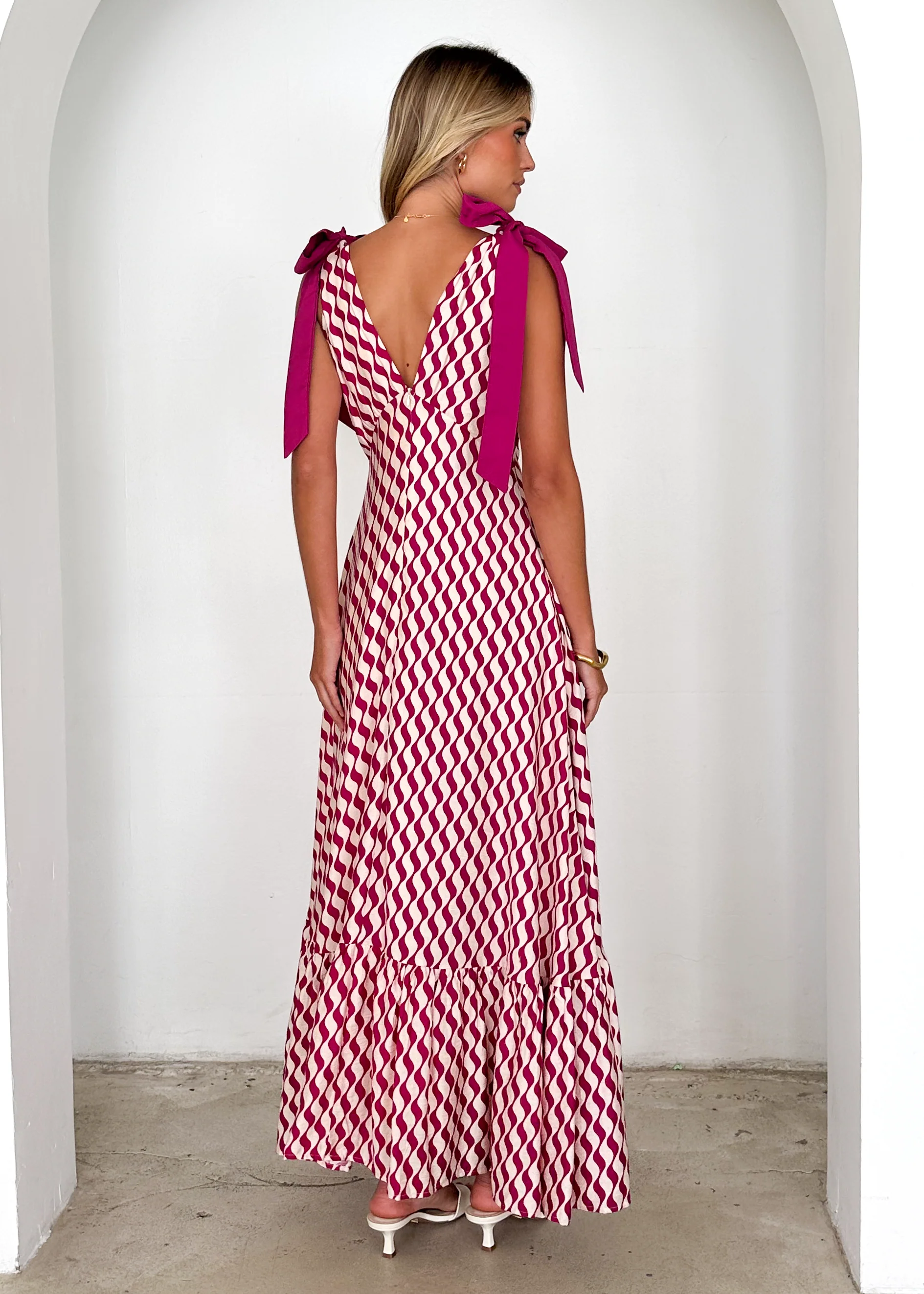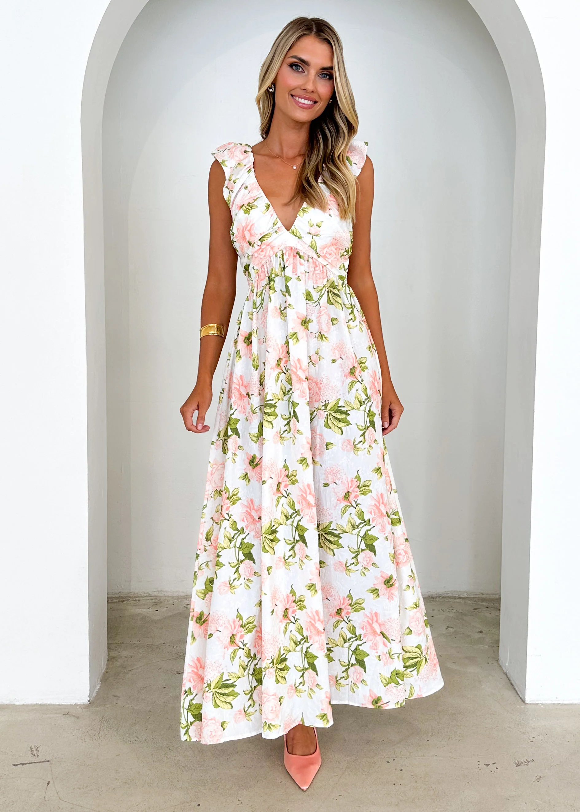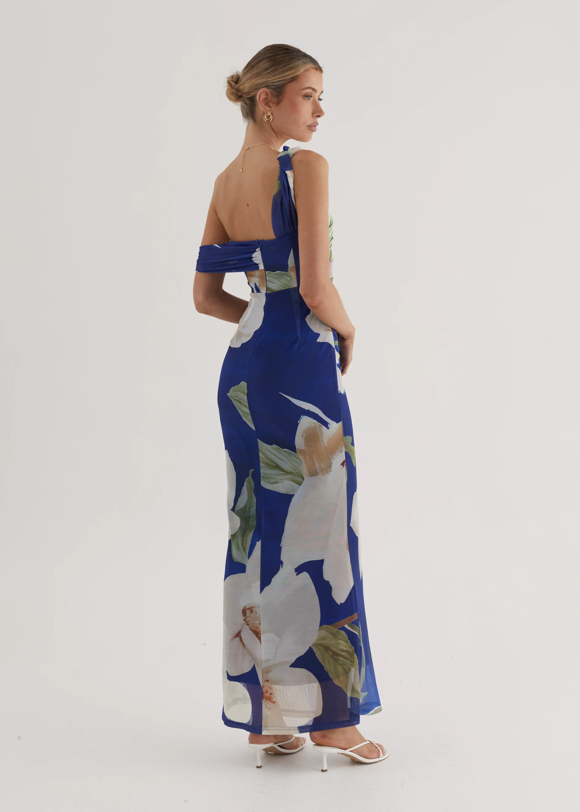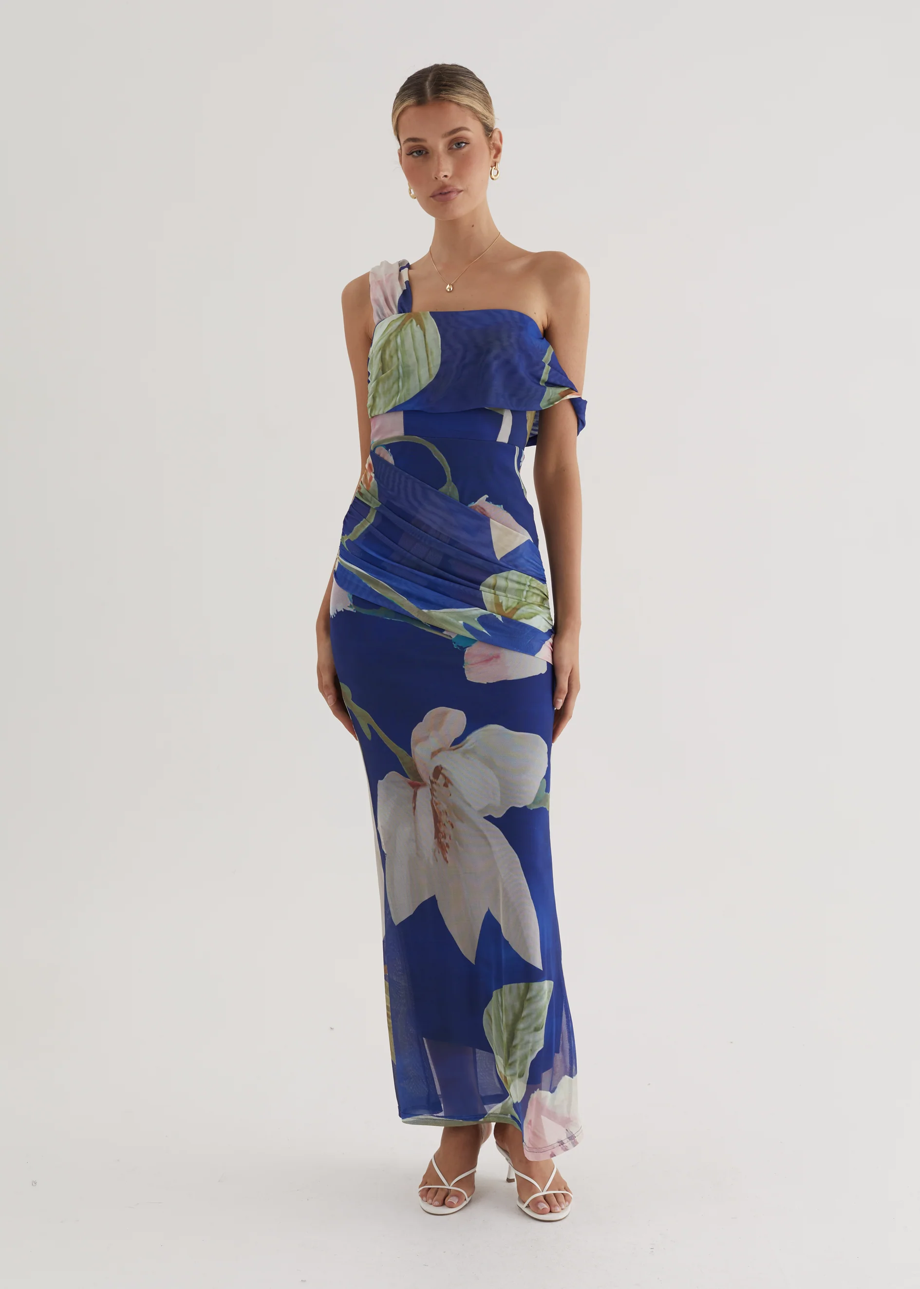 Iris Off Shoulder Mesh Maxi Dress - Hot Pink Floral