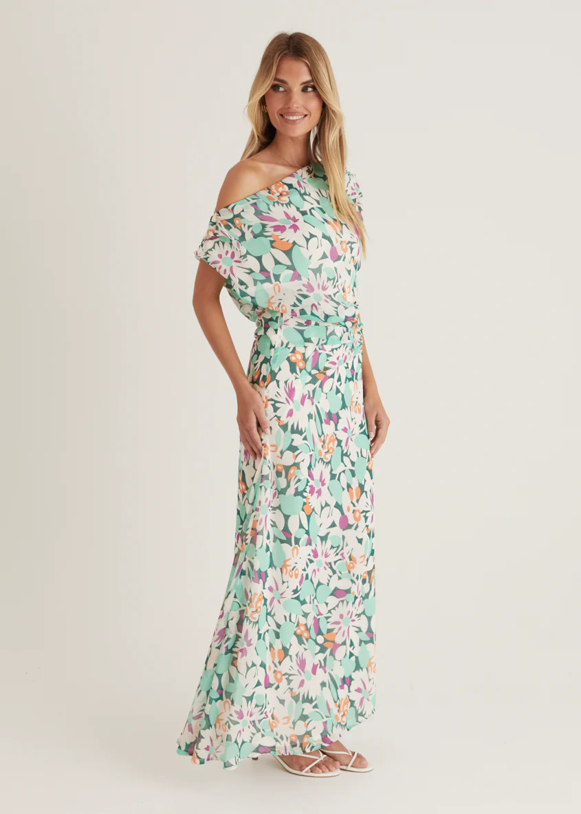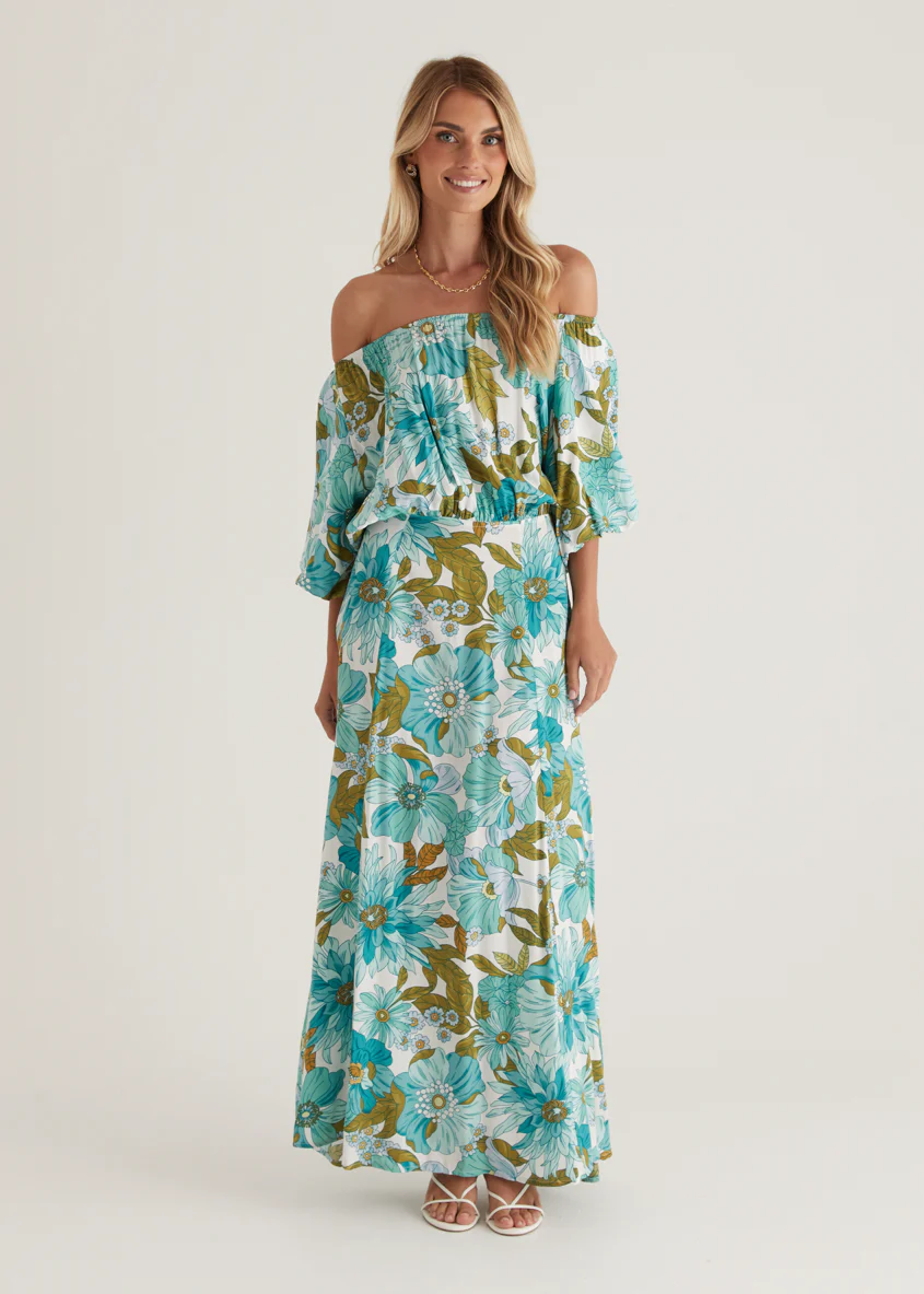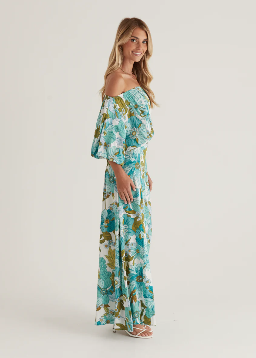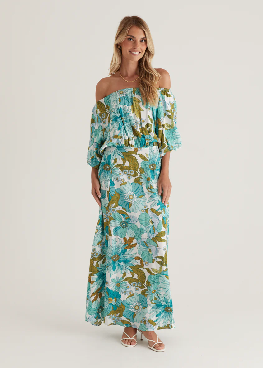 Hallie Off Shoulder Maxi Dress - Amaya Green