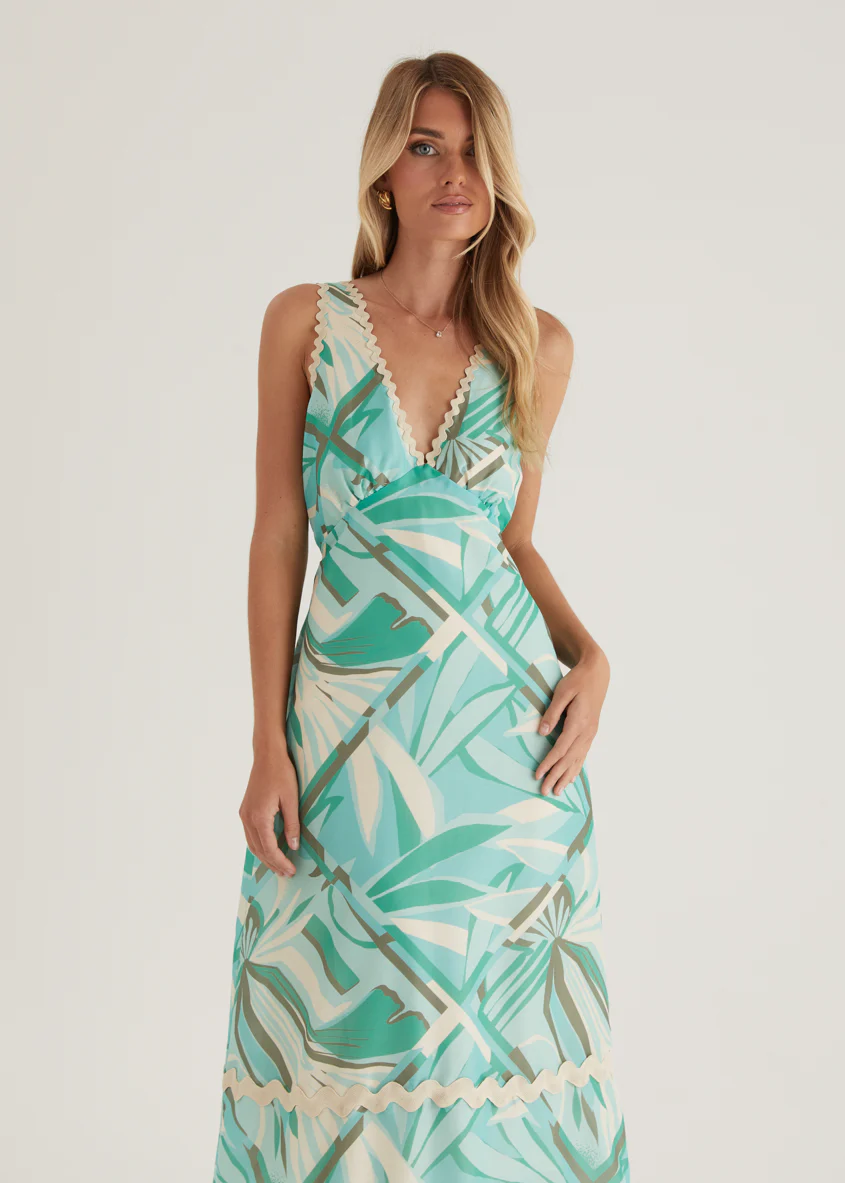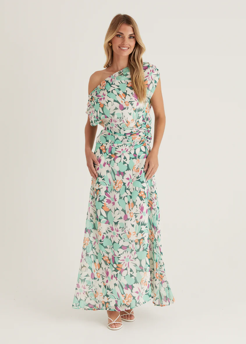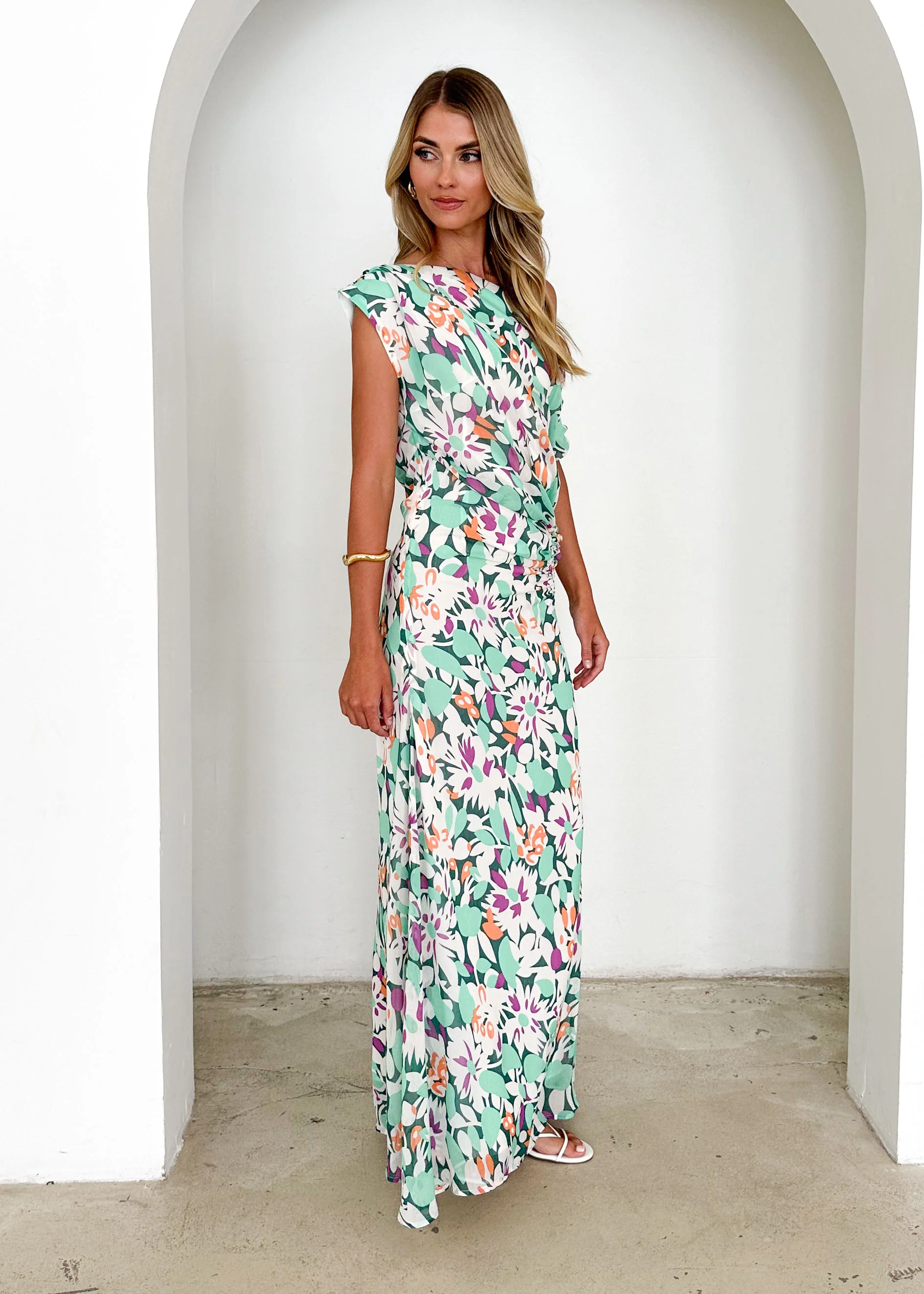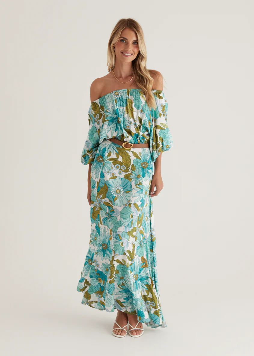 Hallie Off Shoulder Maxi Dress - Amaya Green