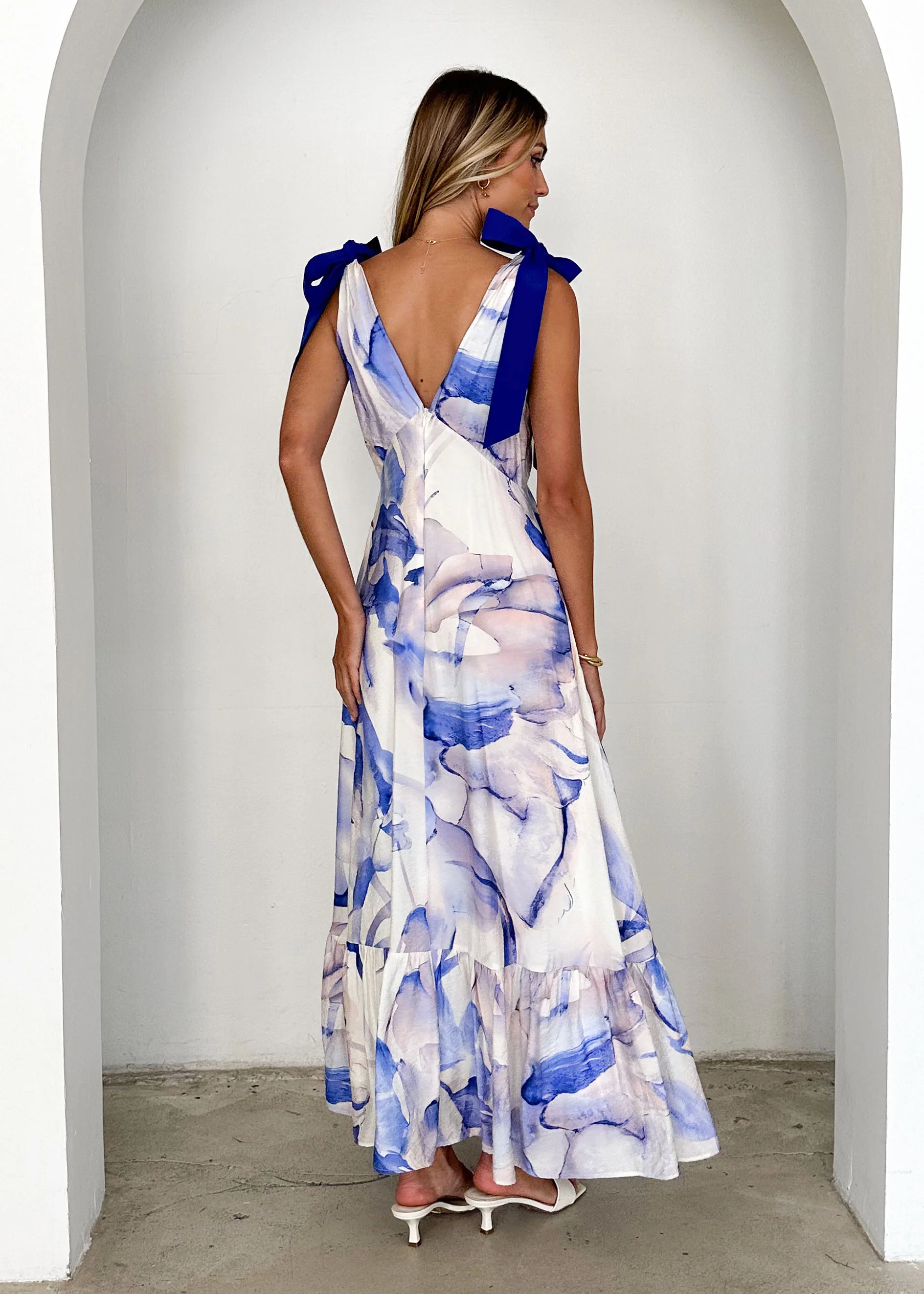 Halia Off Shoulder Midi Dress - Violet Watercolour