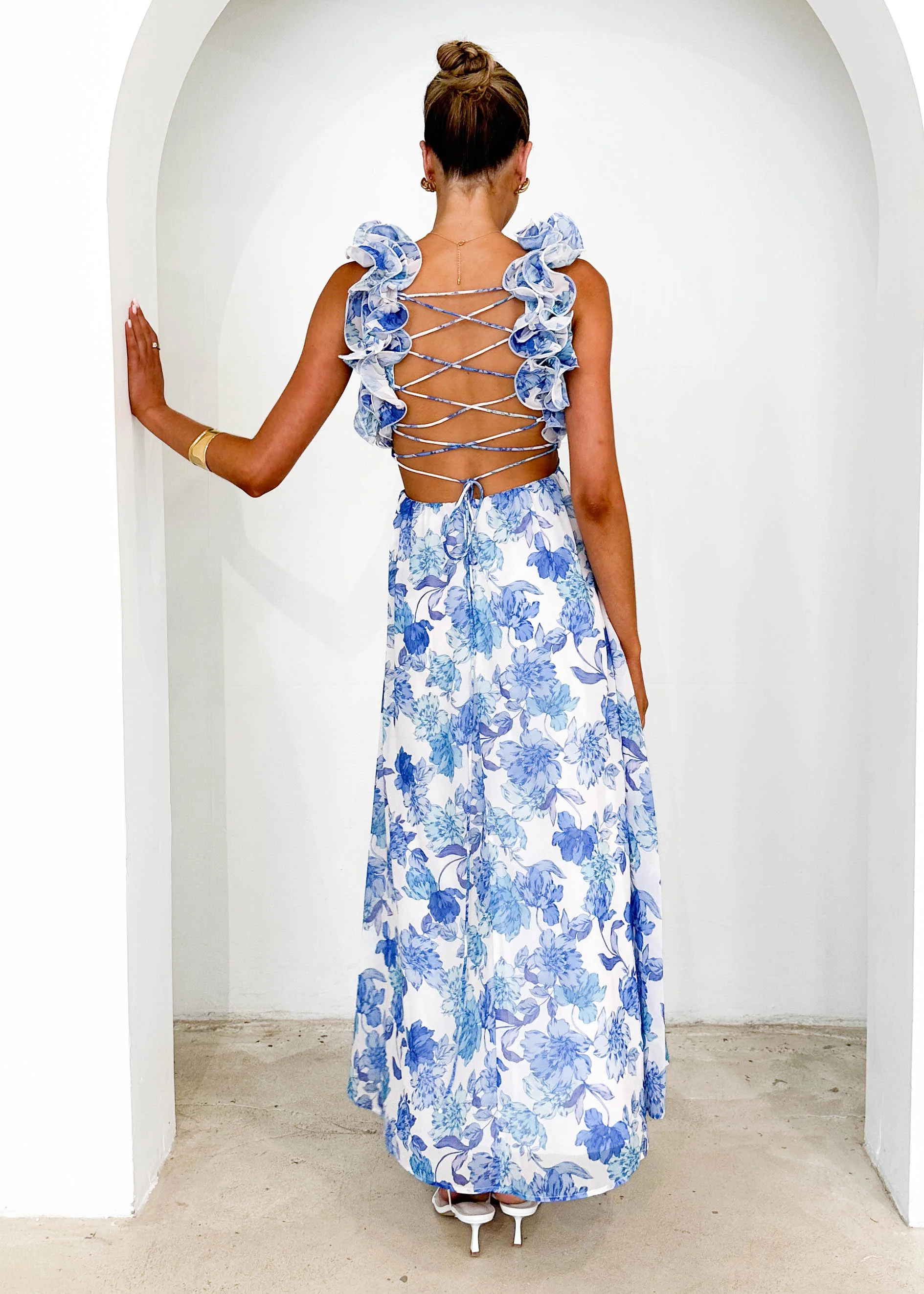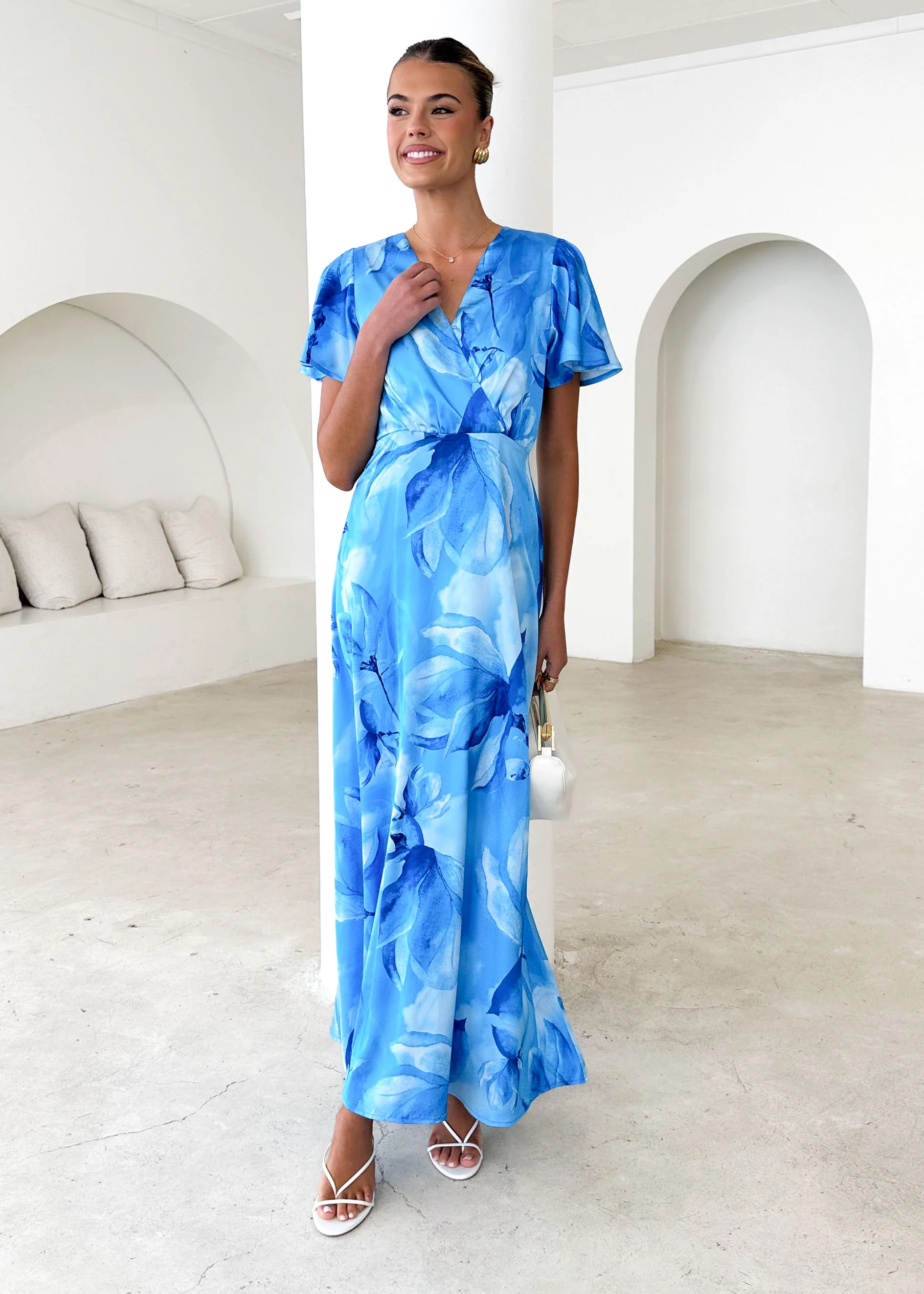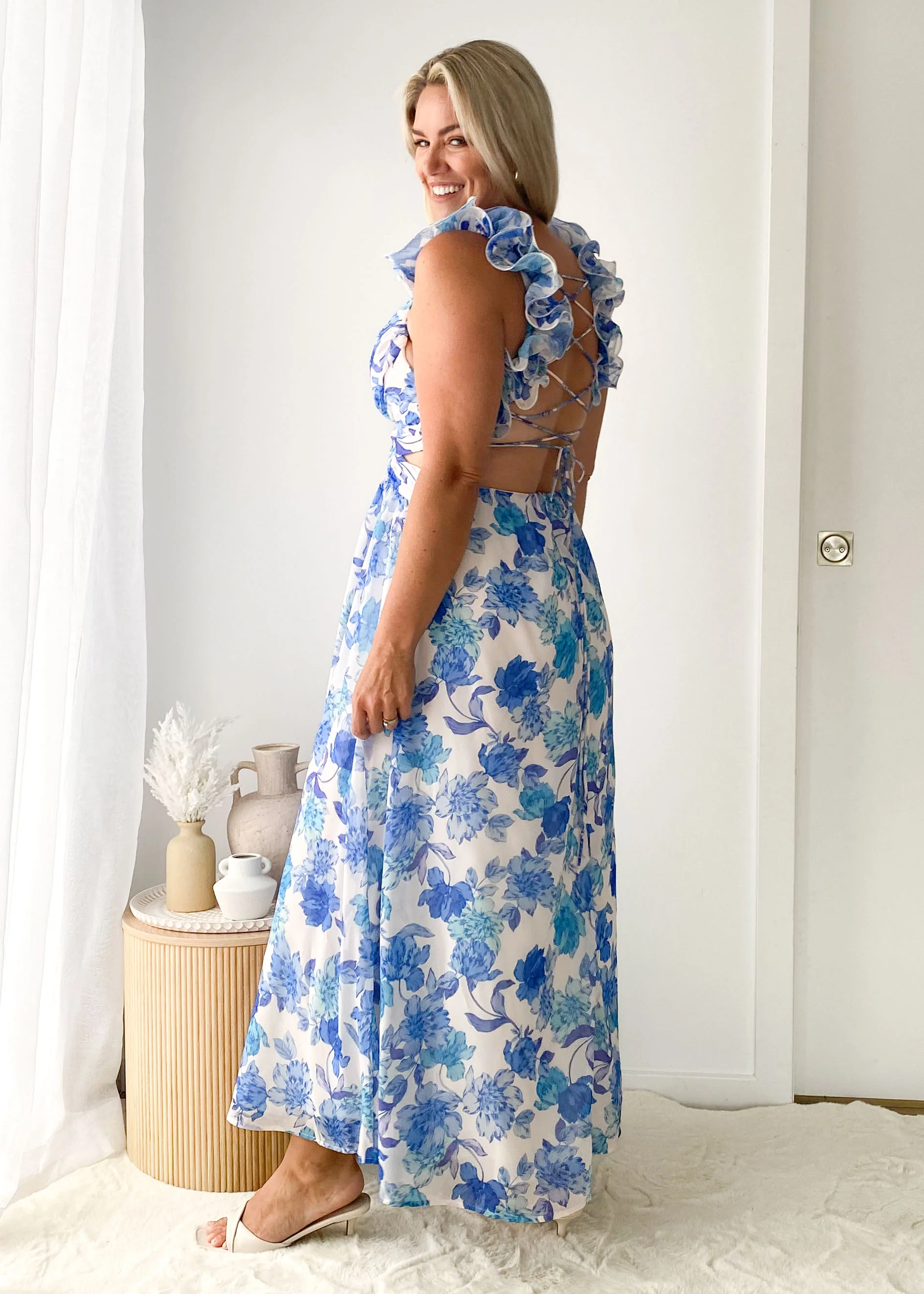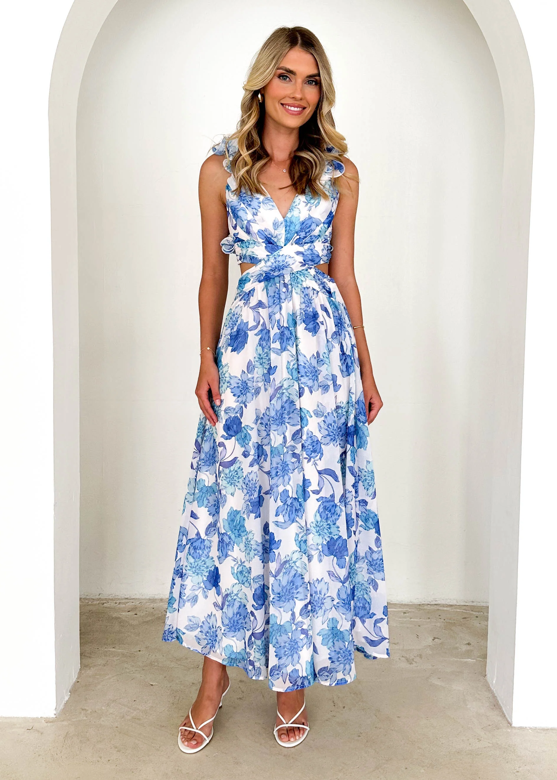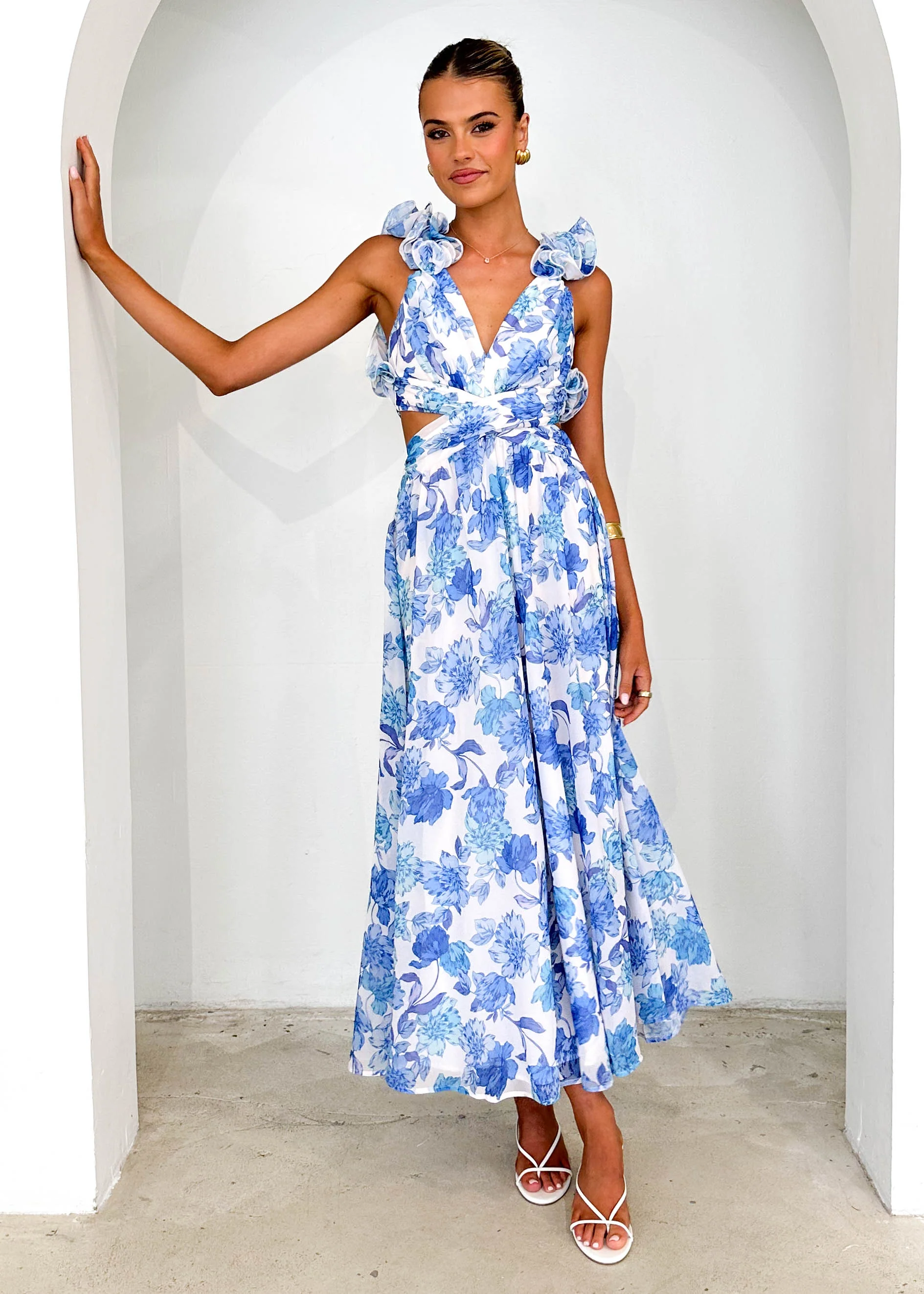 Dulcie One Shoulder Midi Dress - Blue Flowers