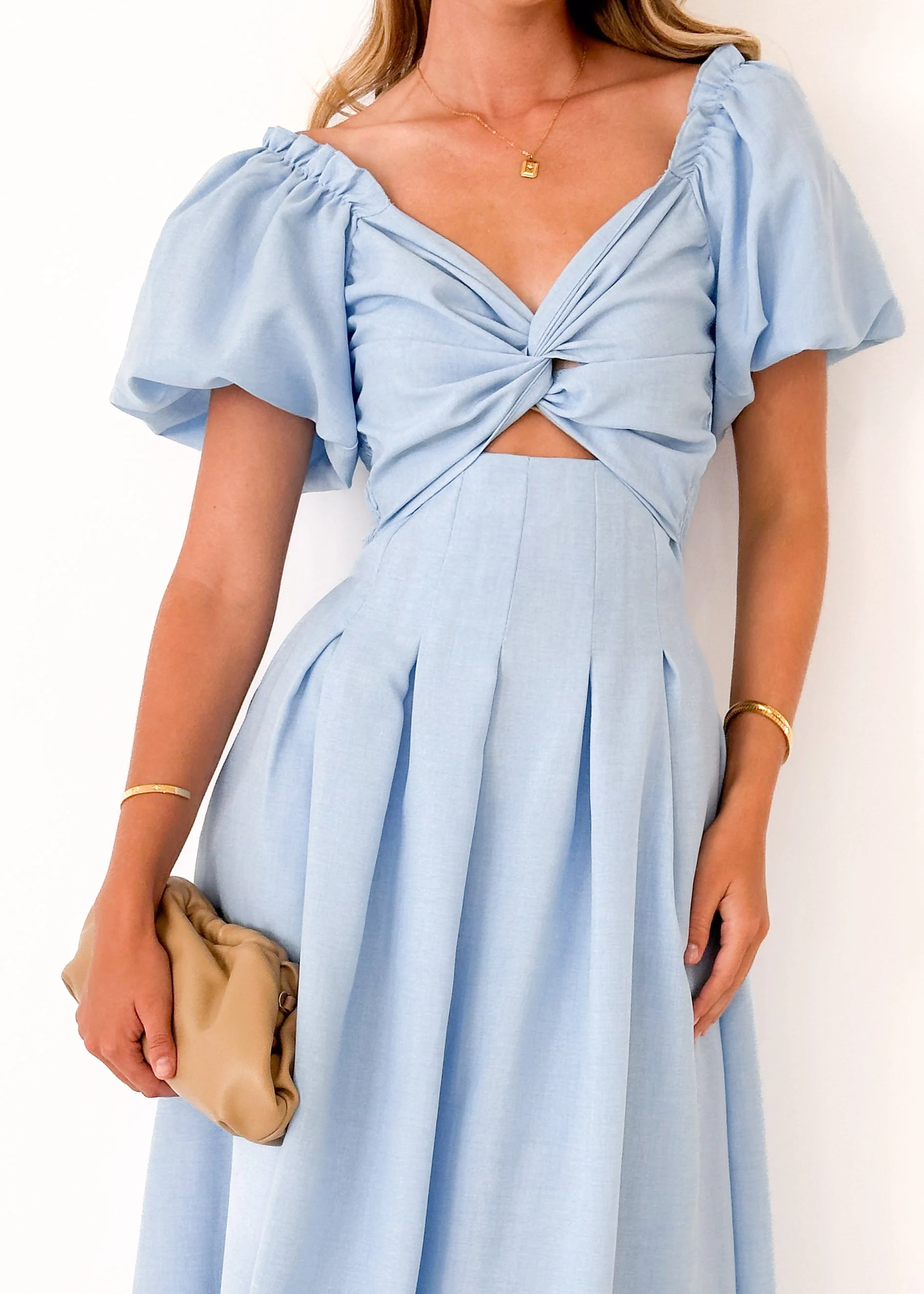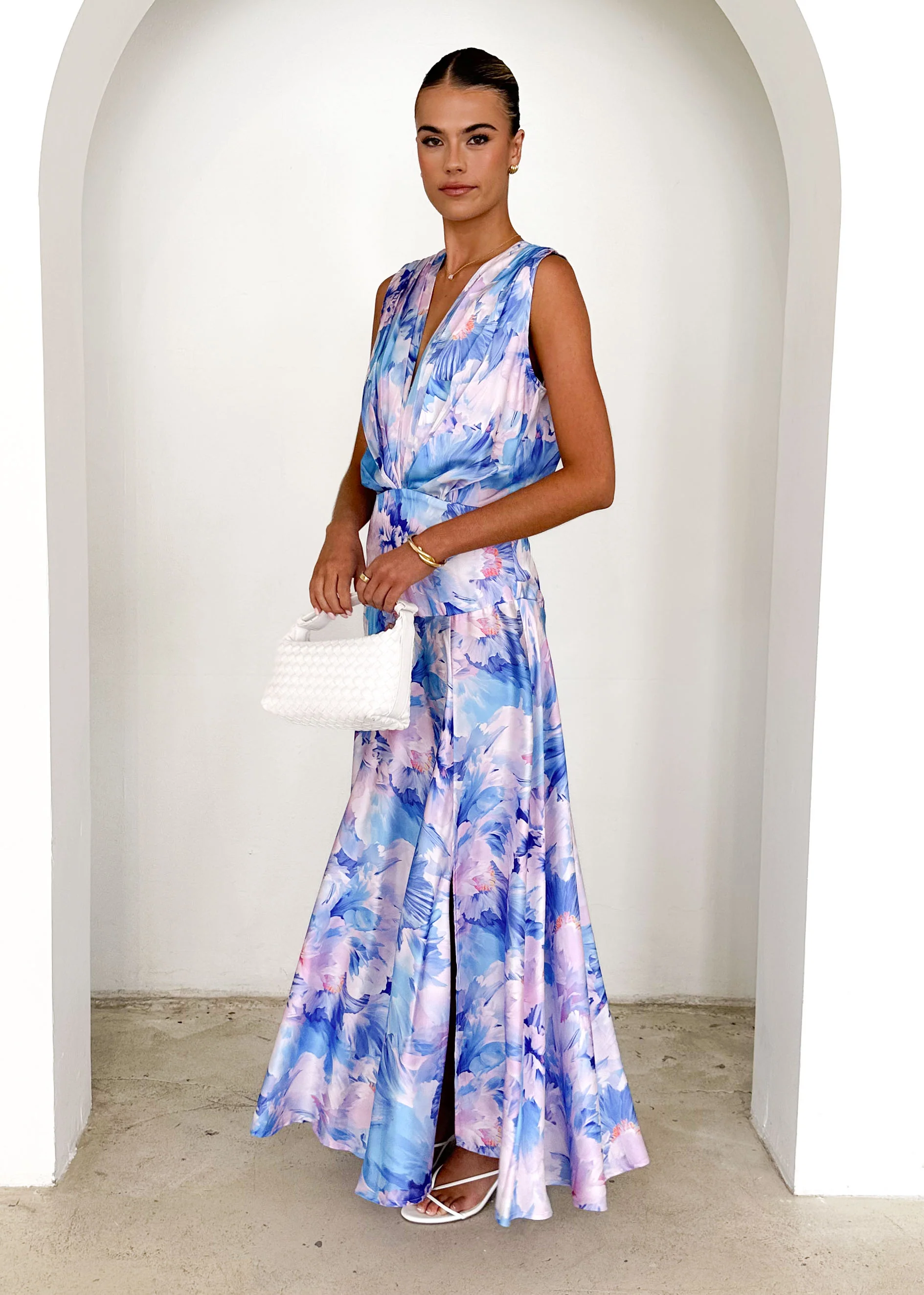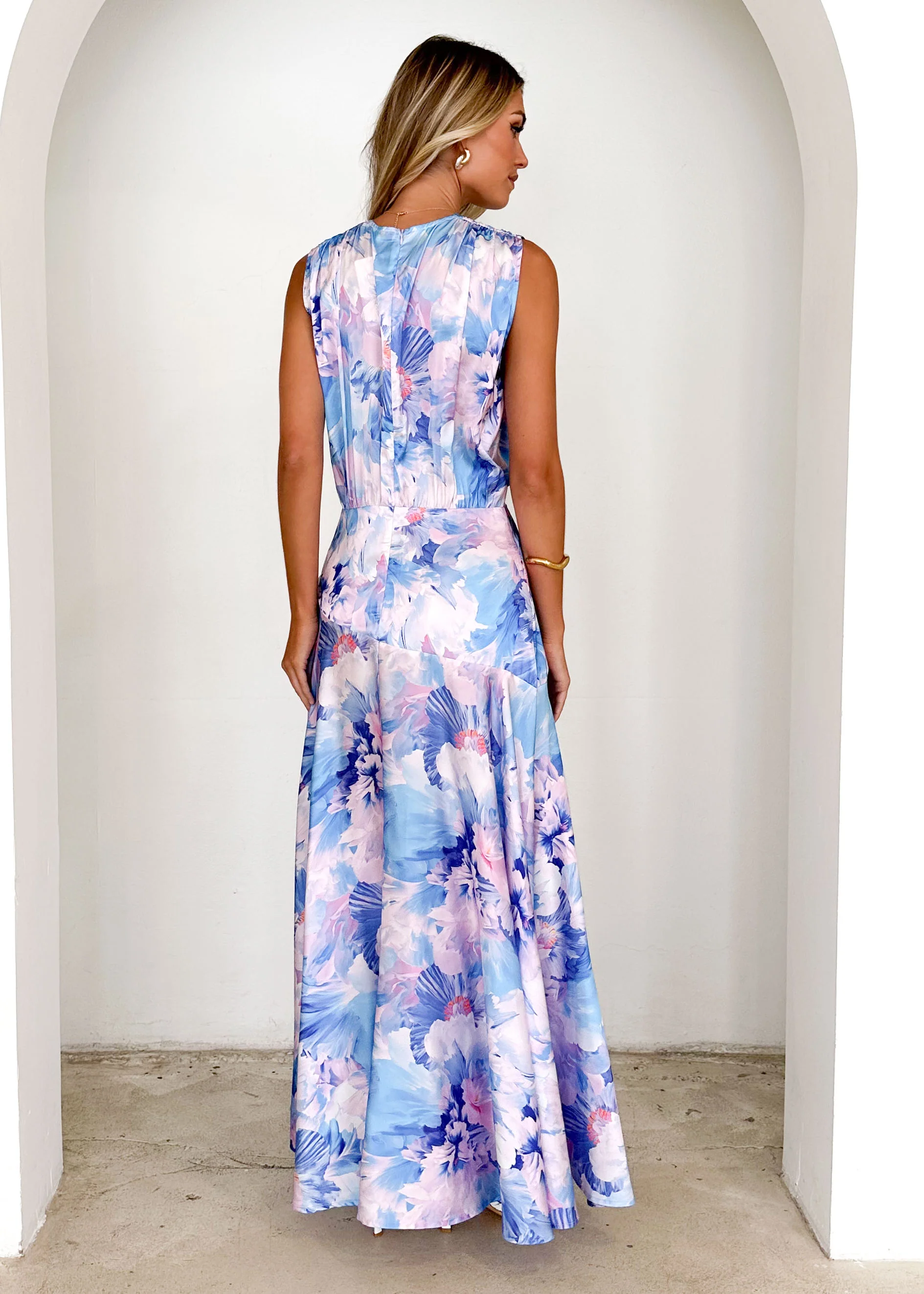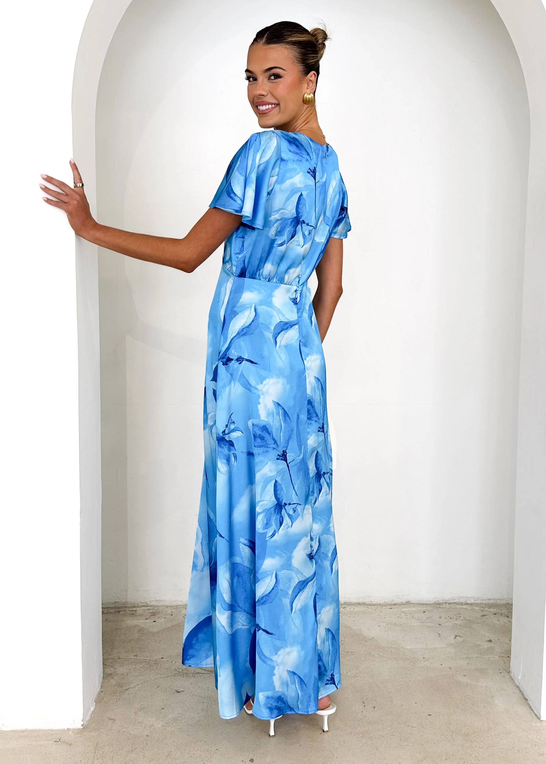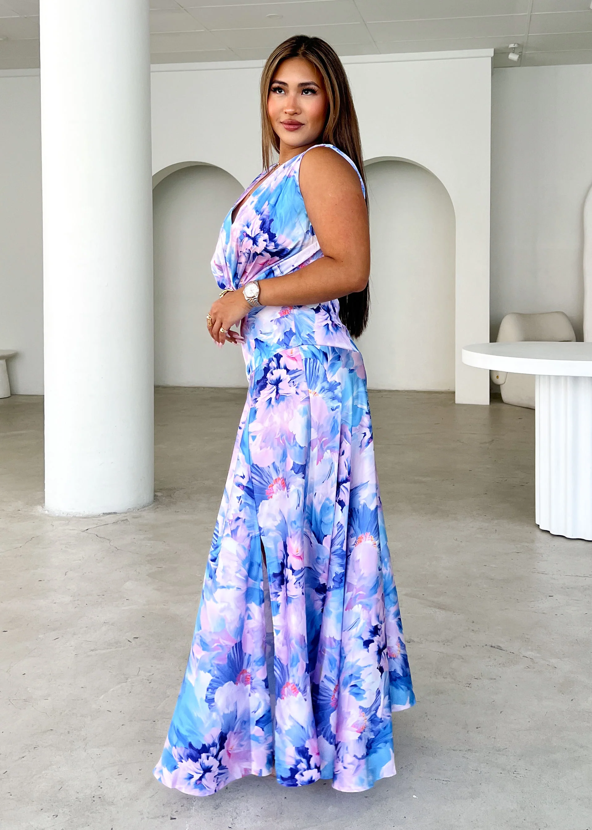 Dulcie One Shoulder Midi Dress - Blue Flowers
