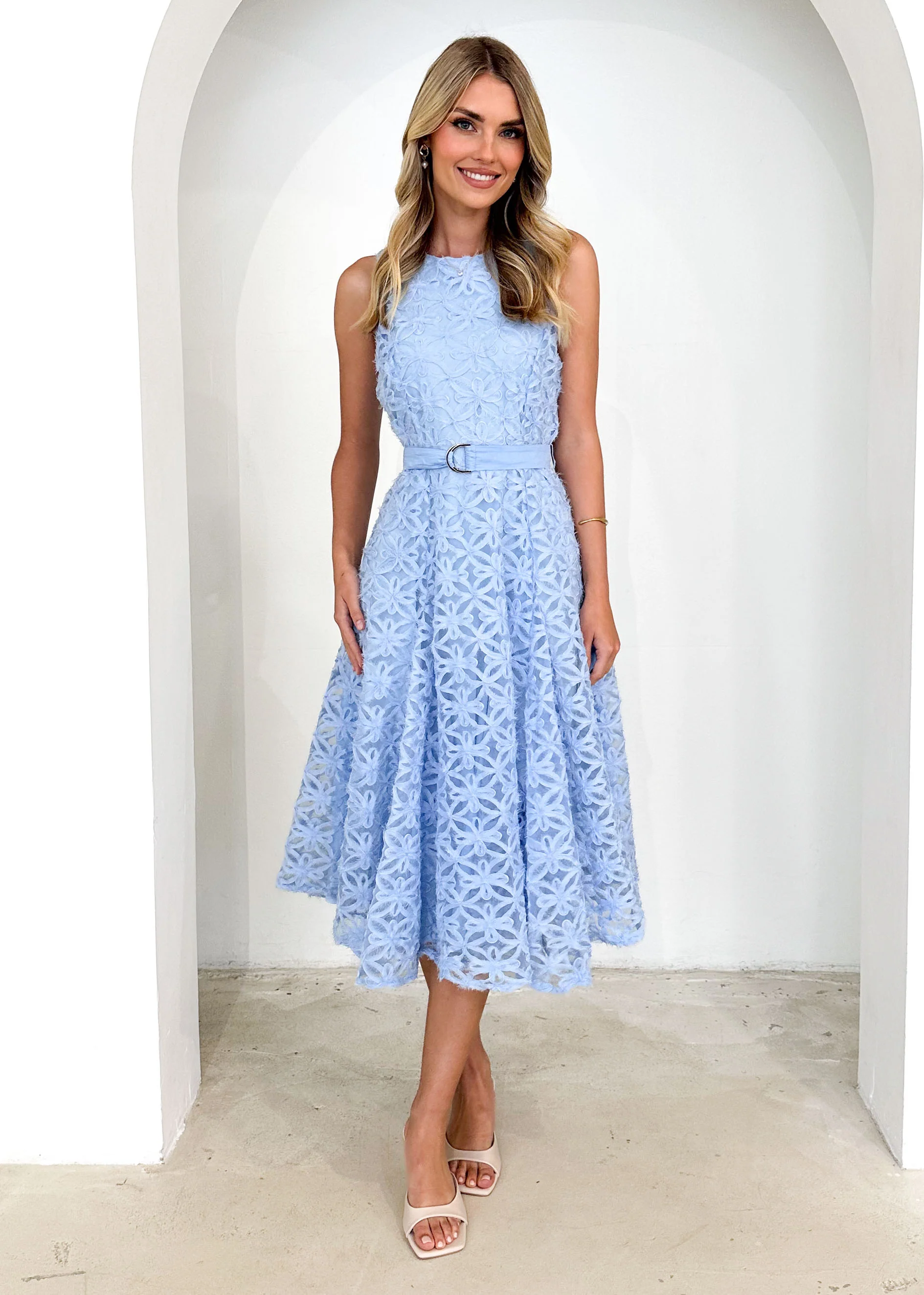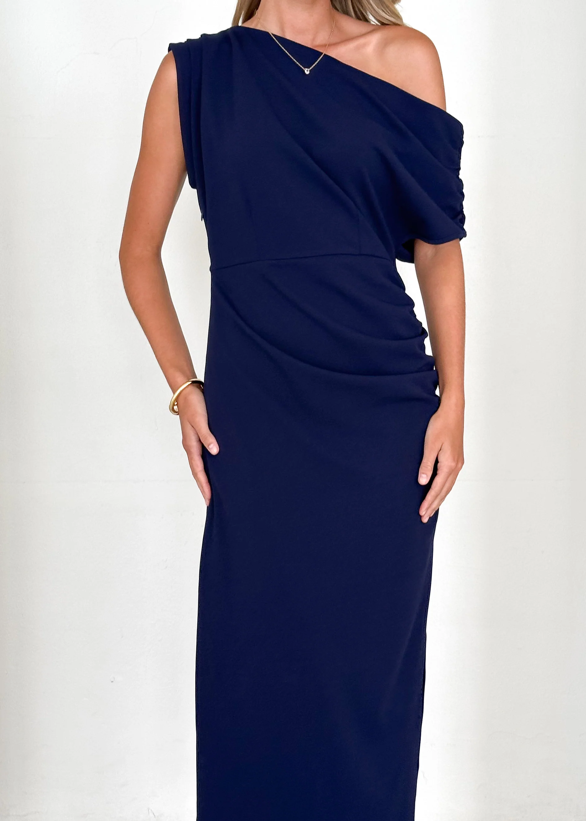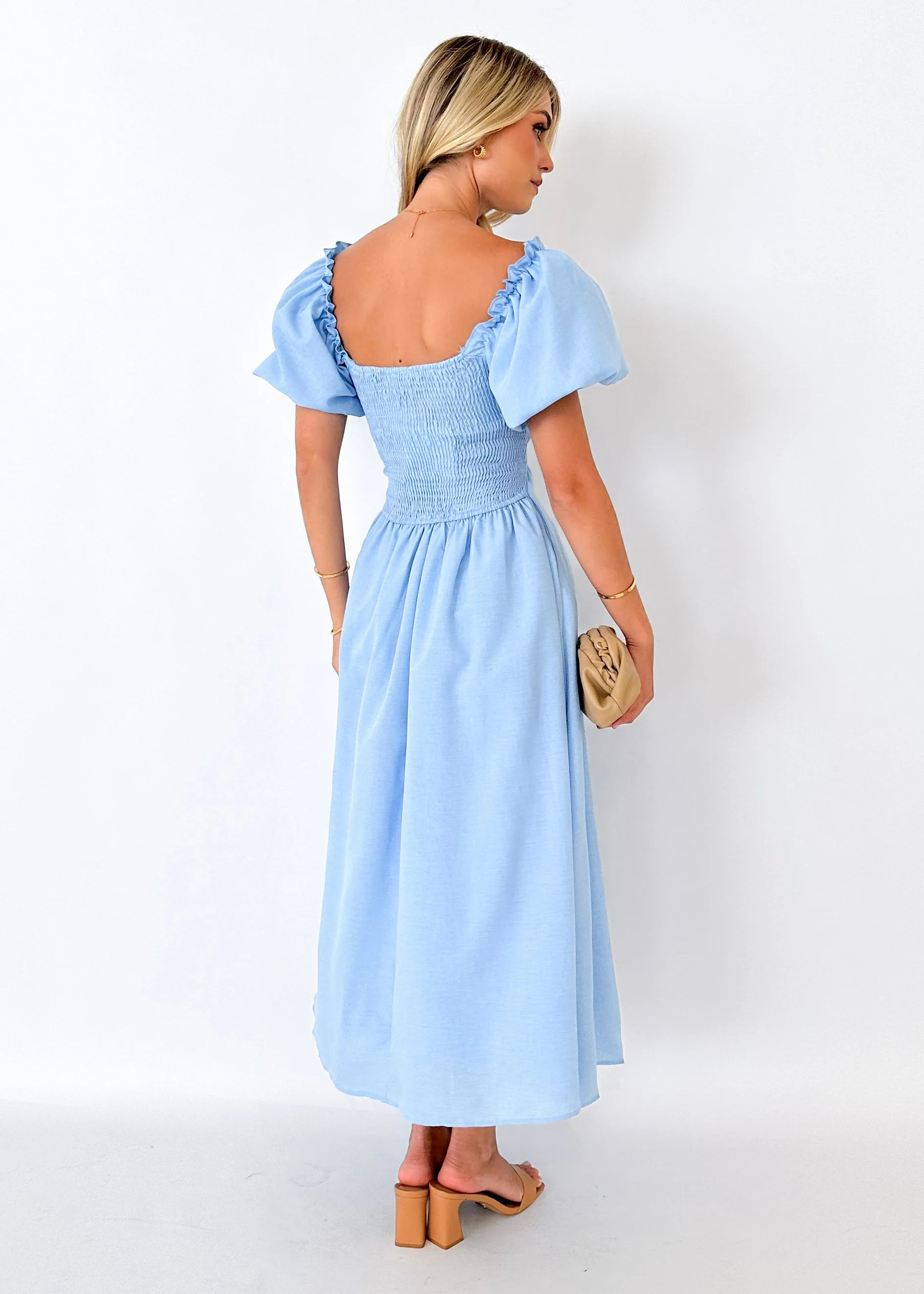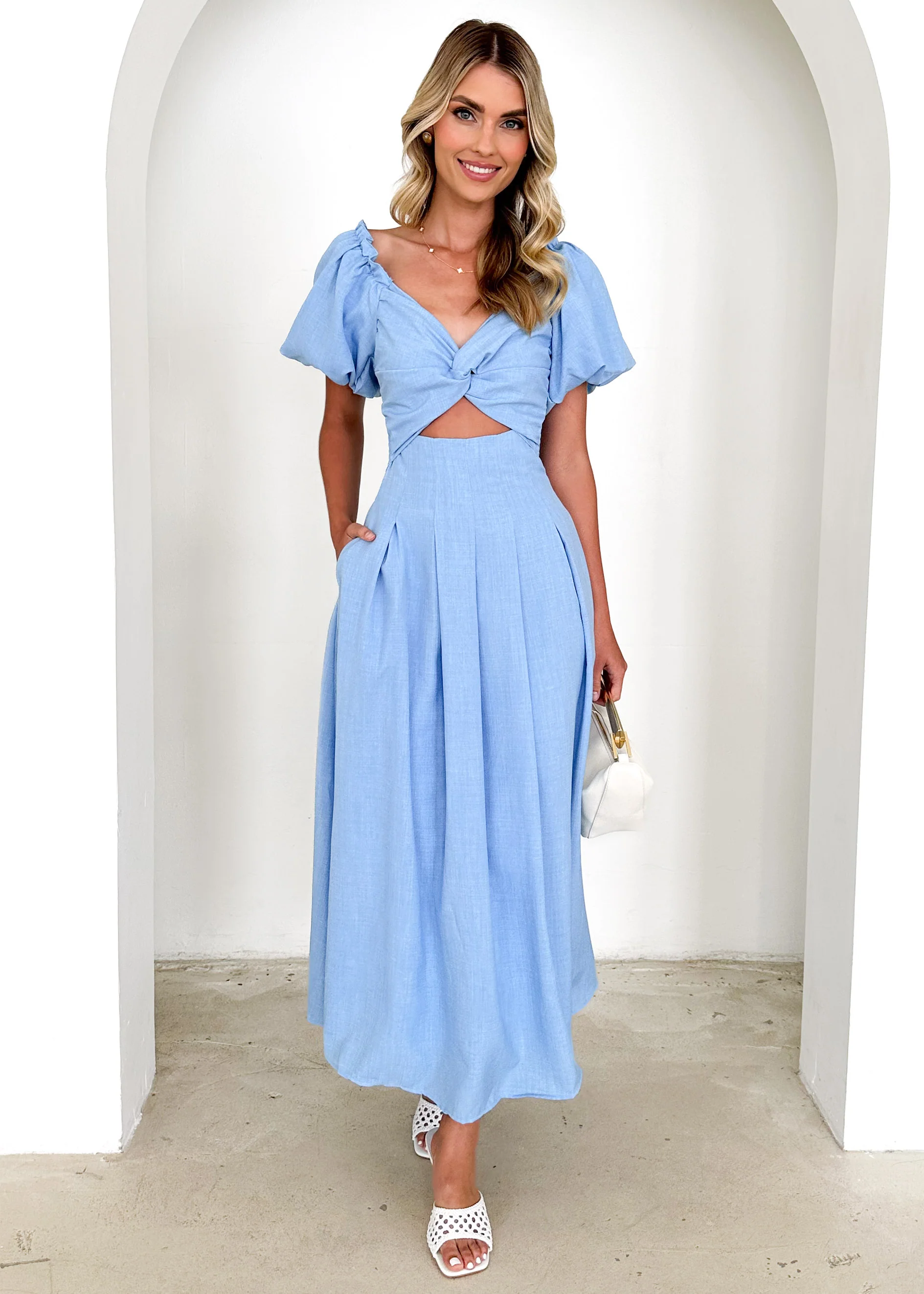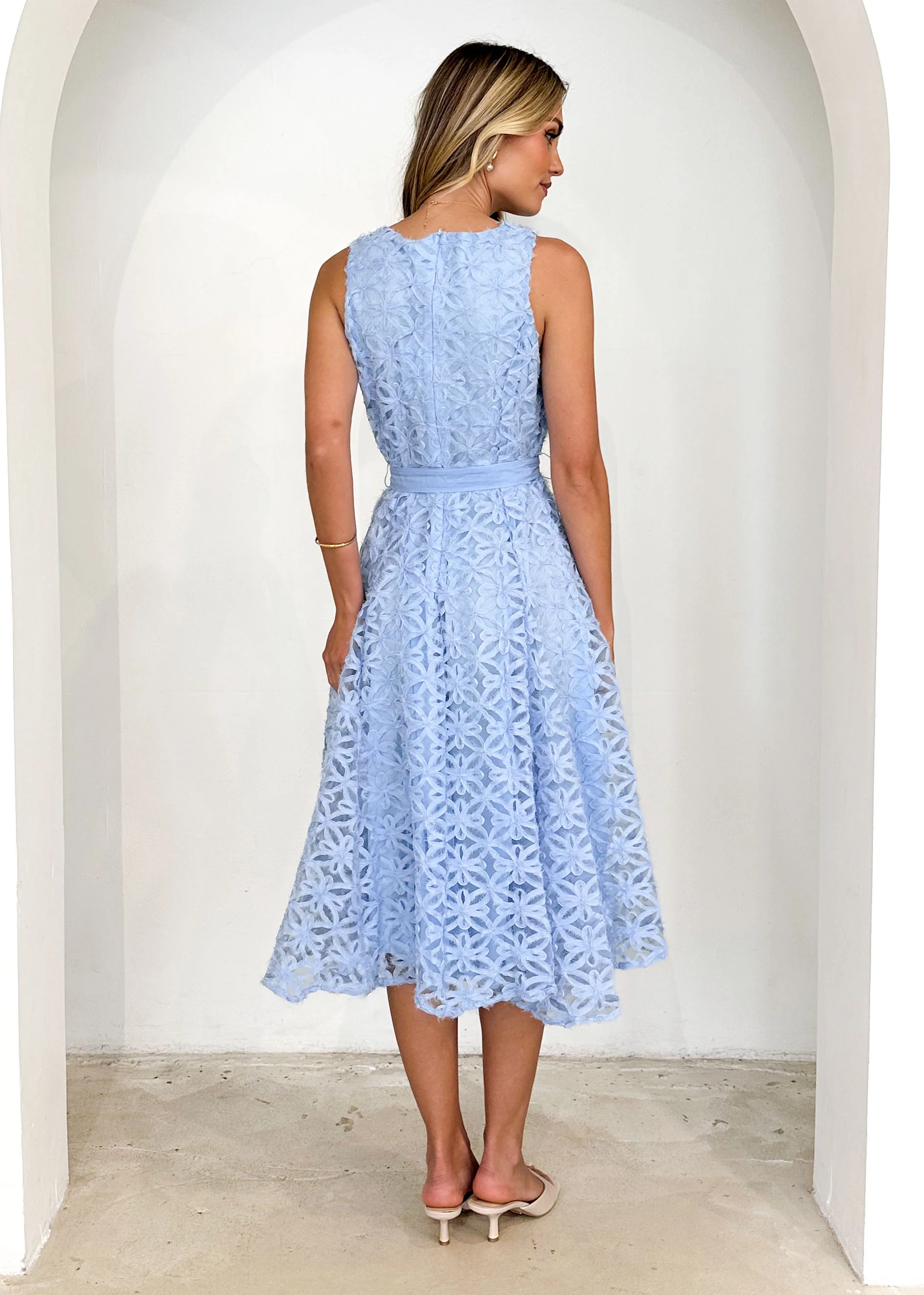 Dulcie One Shoulder Midi Dress - Blue Flowers