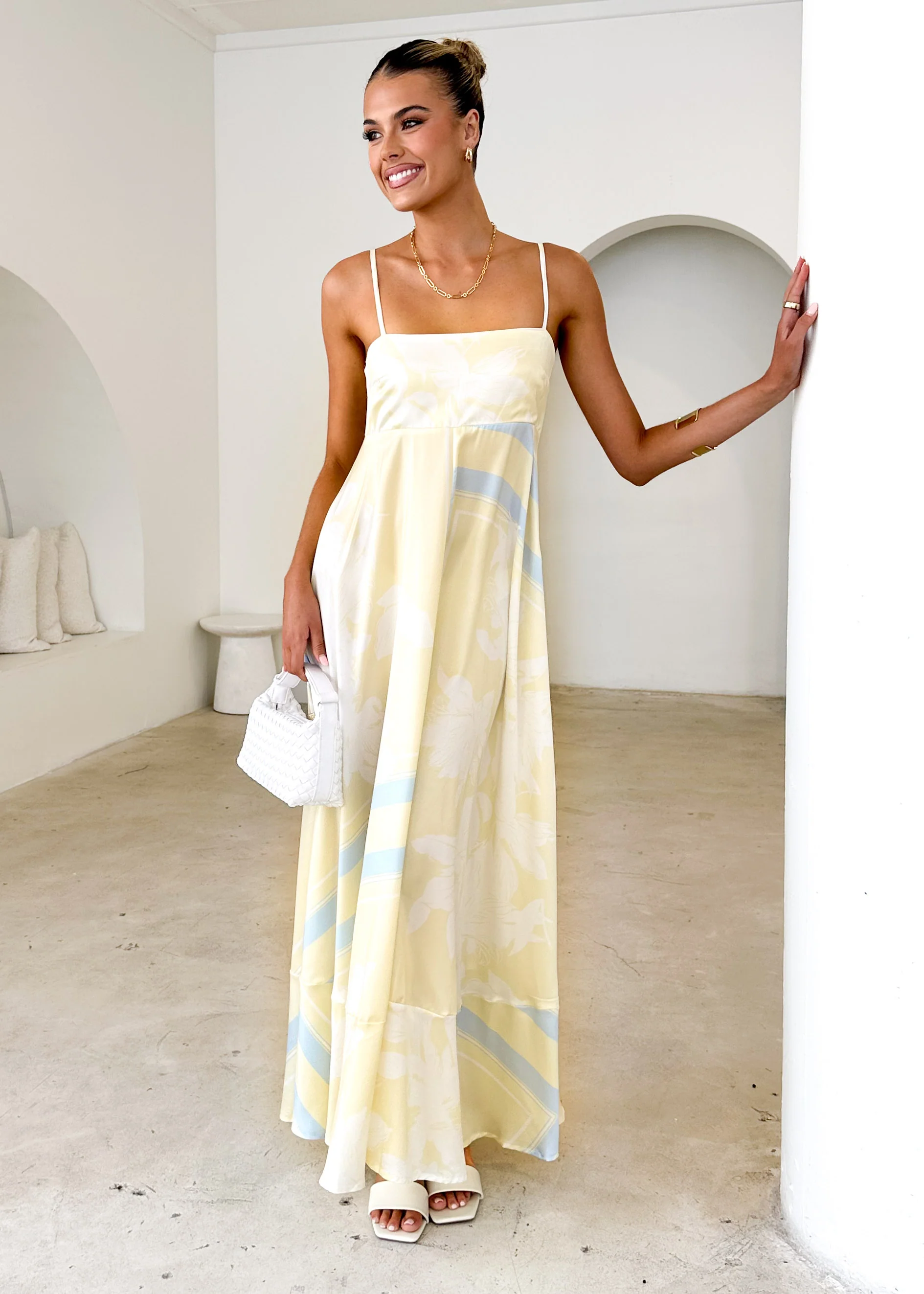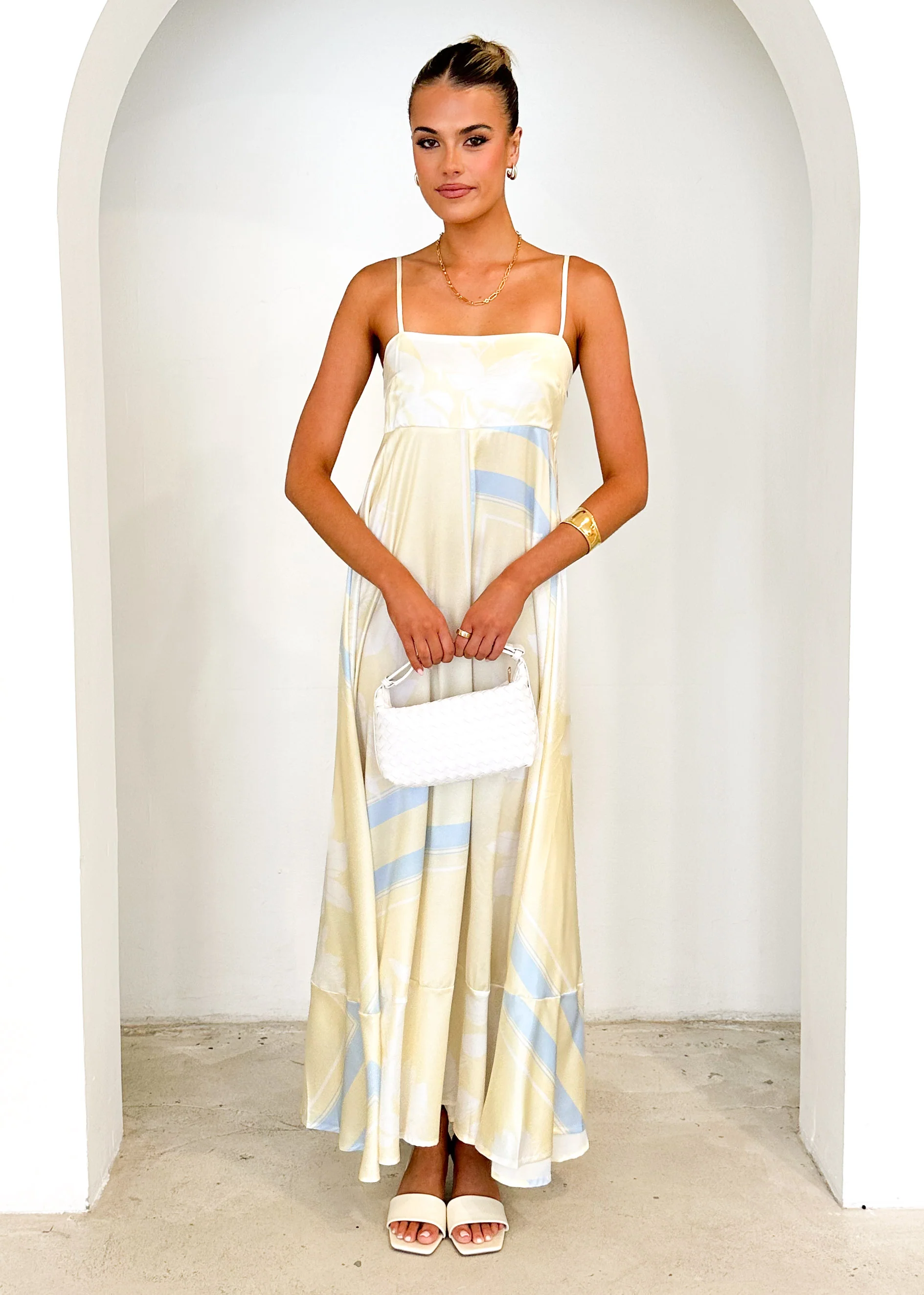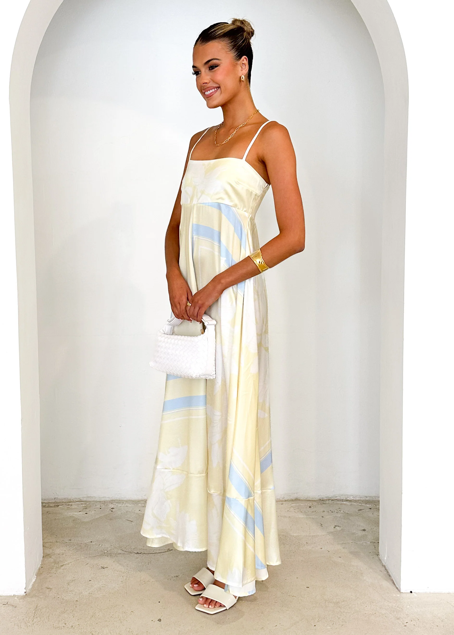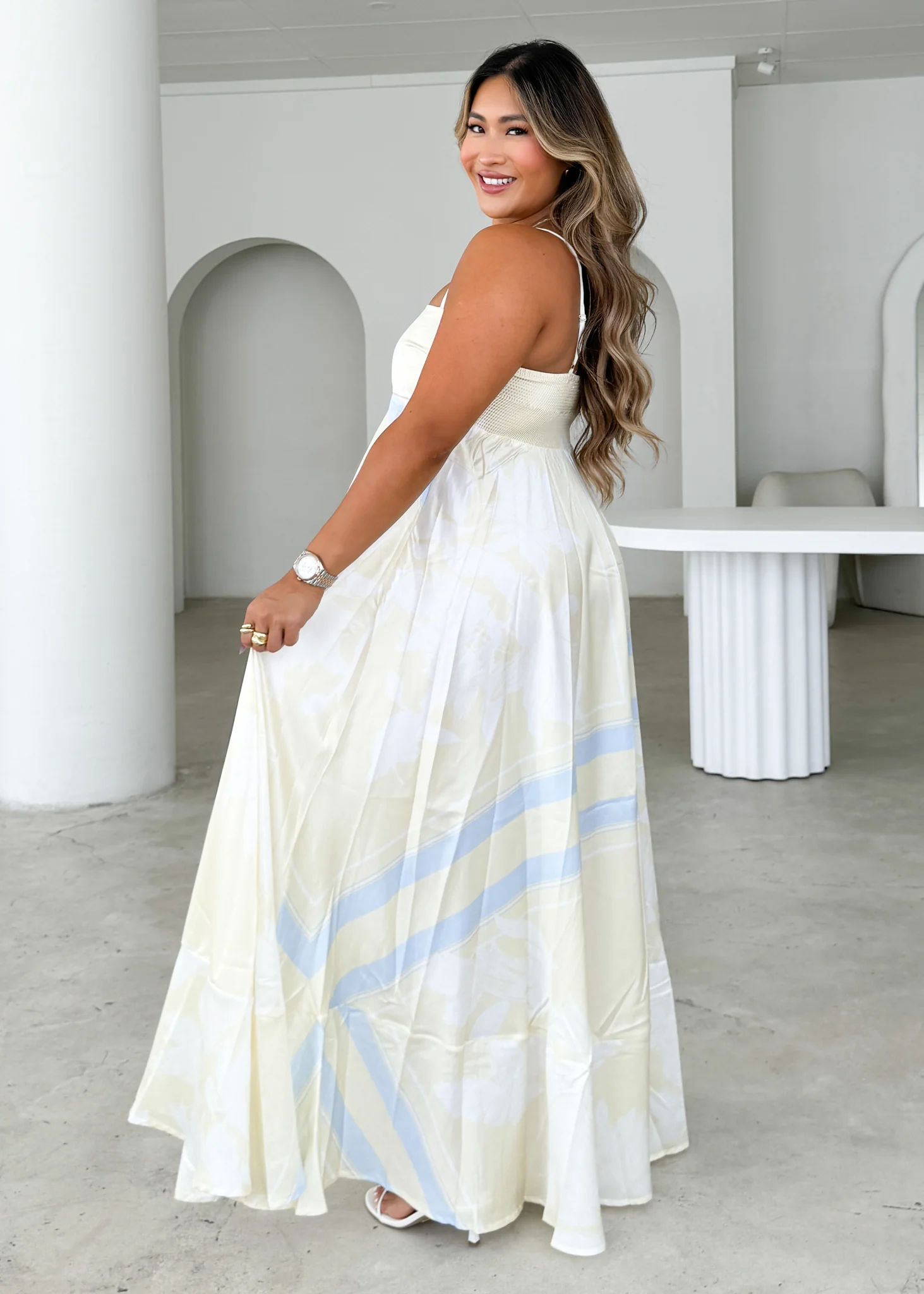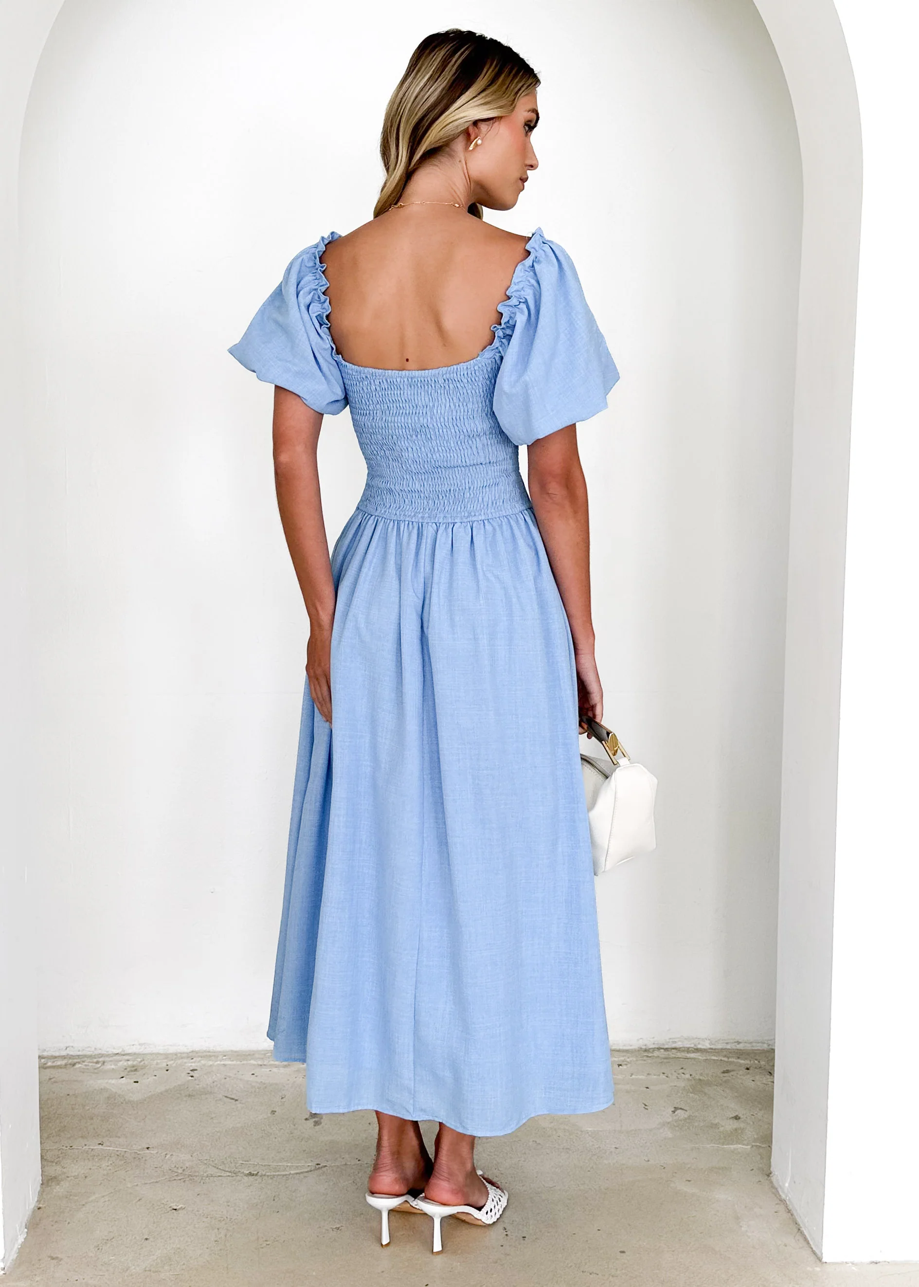 Dulcie One Shoulder Midi Dress - Blue Flowers