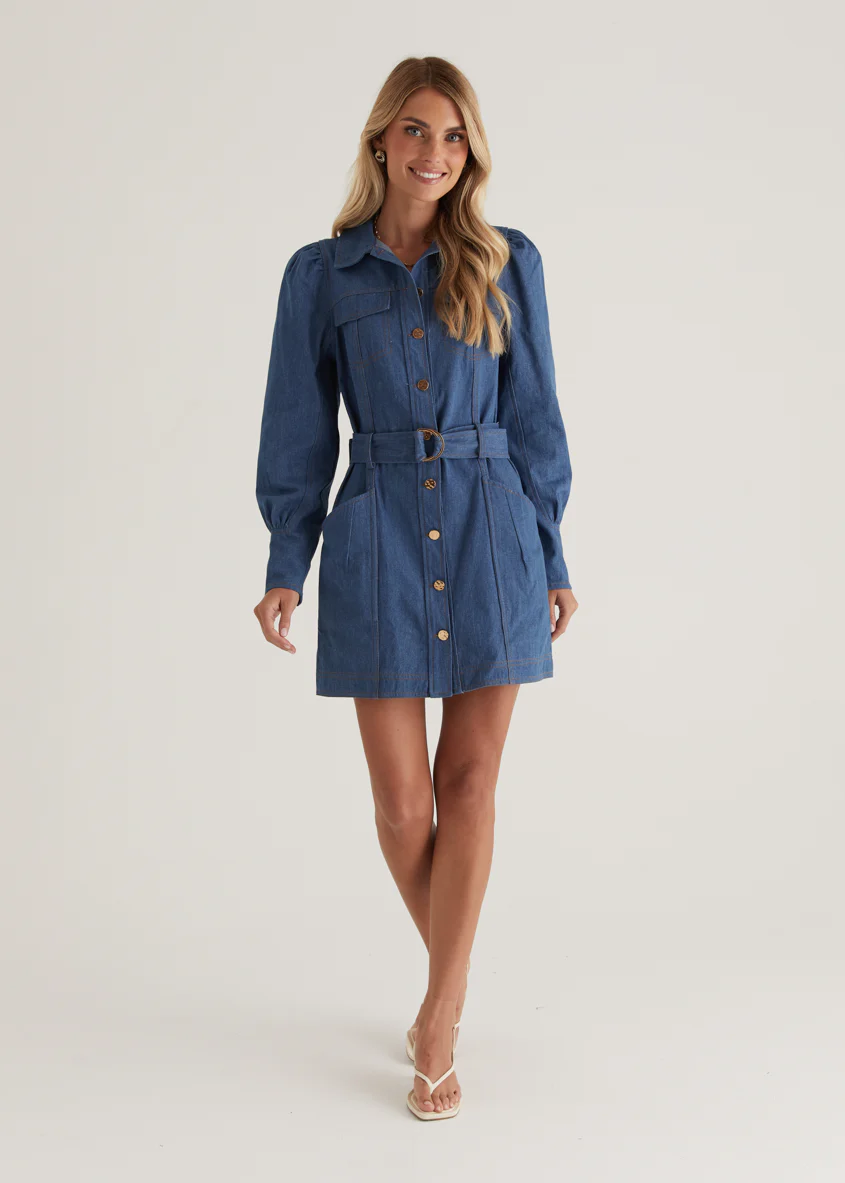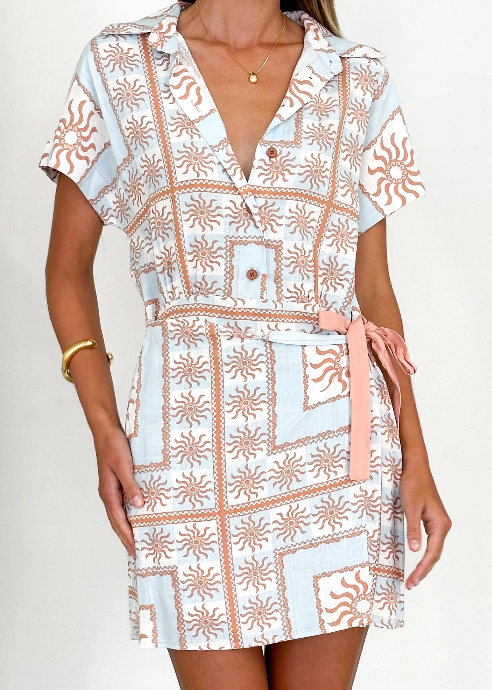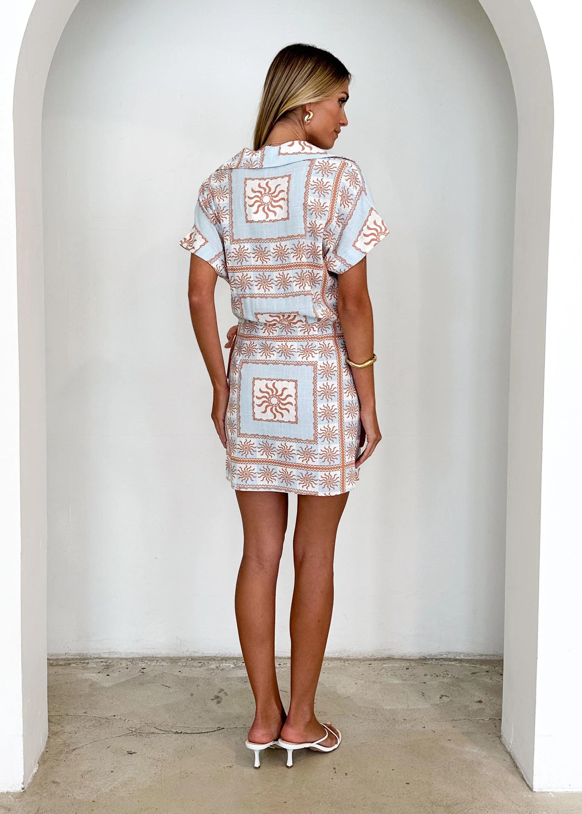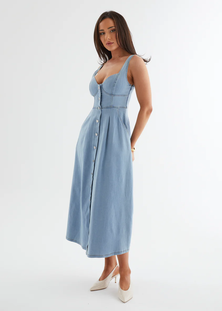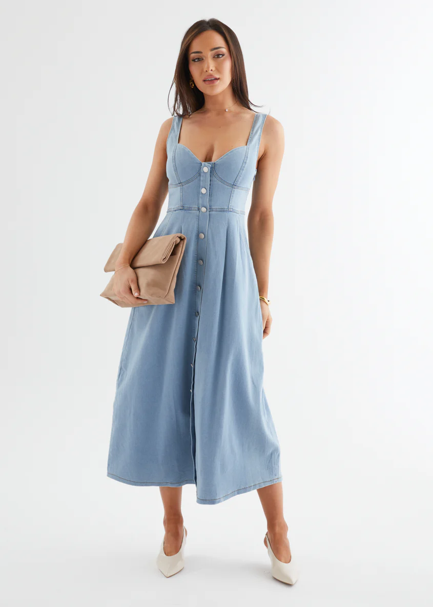 Dulcie One Shoulder Midi Dress - Blue Flowers