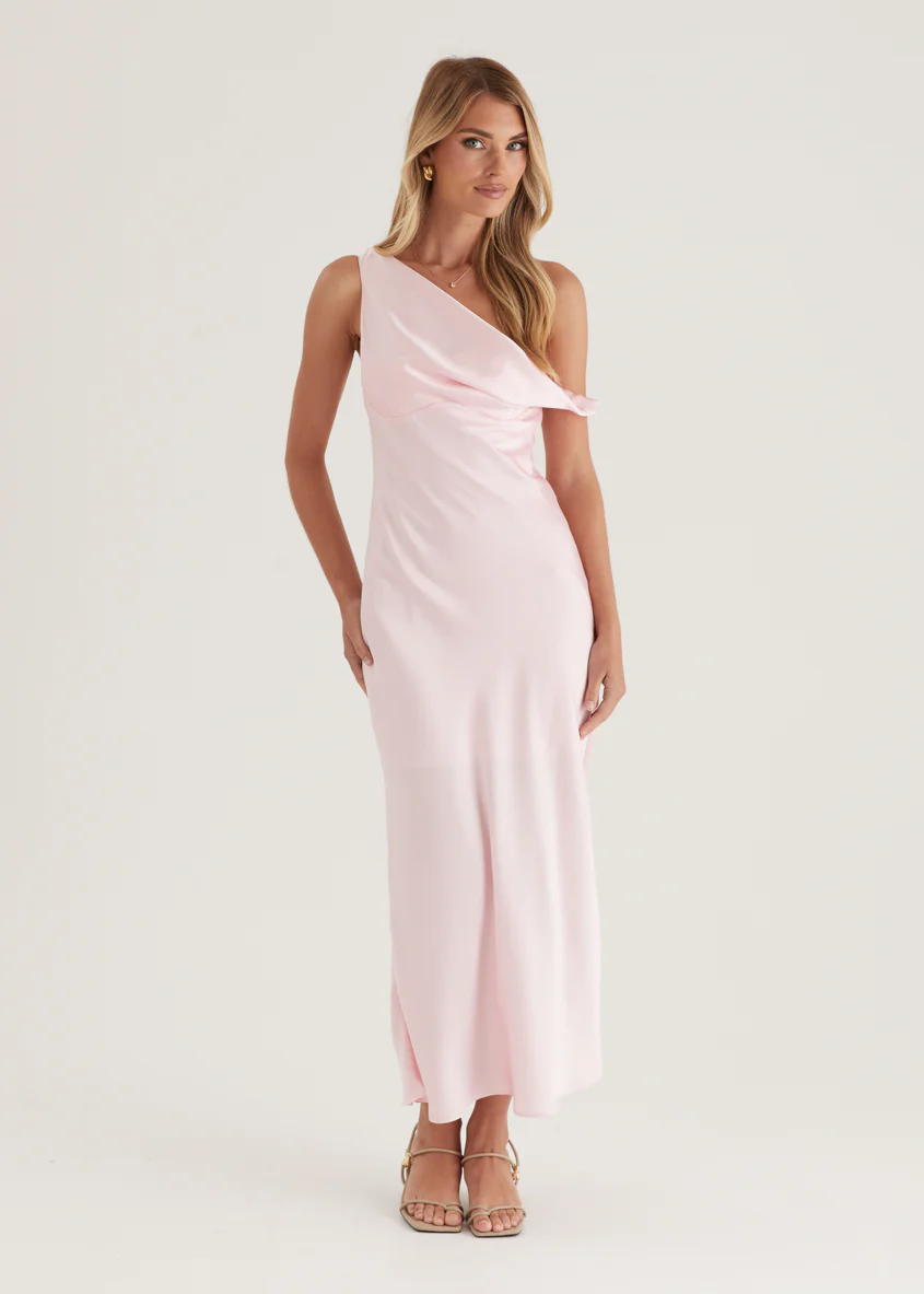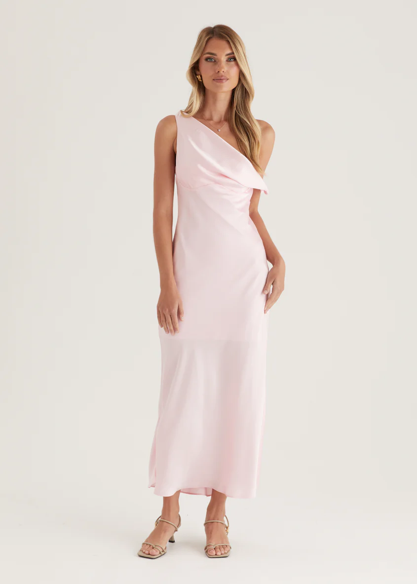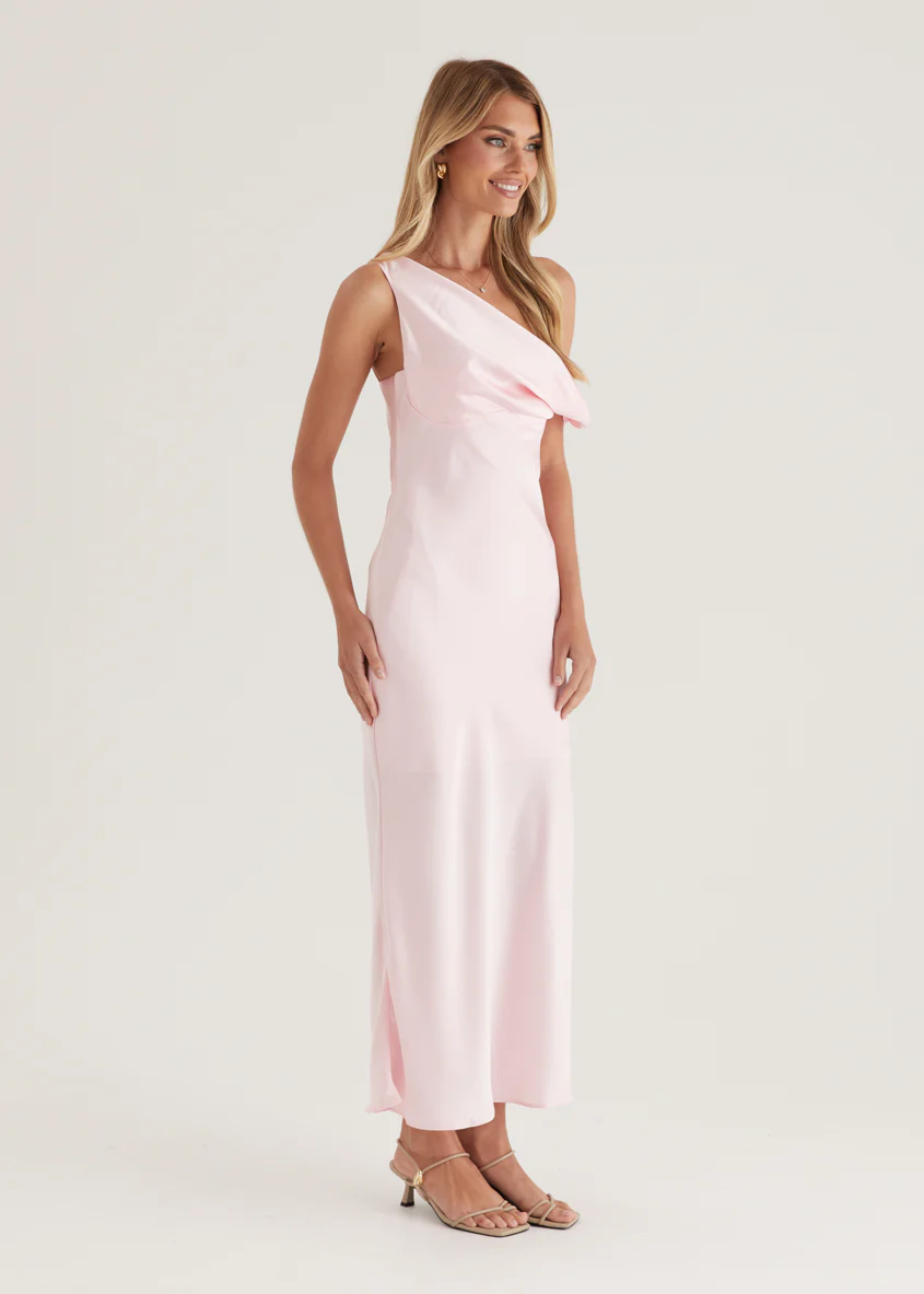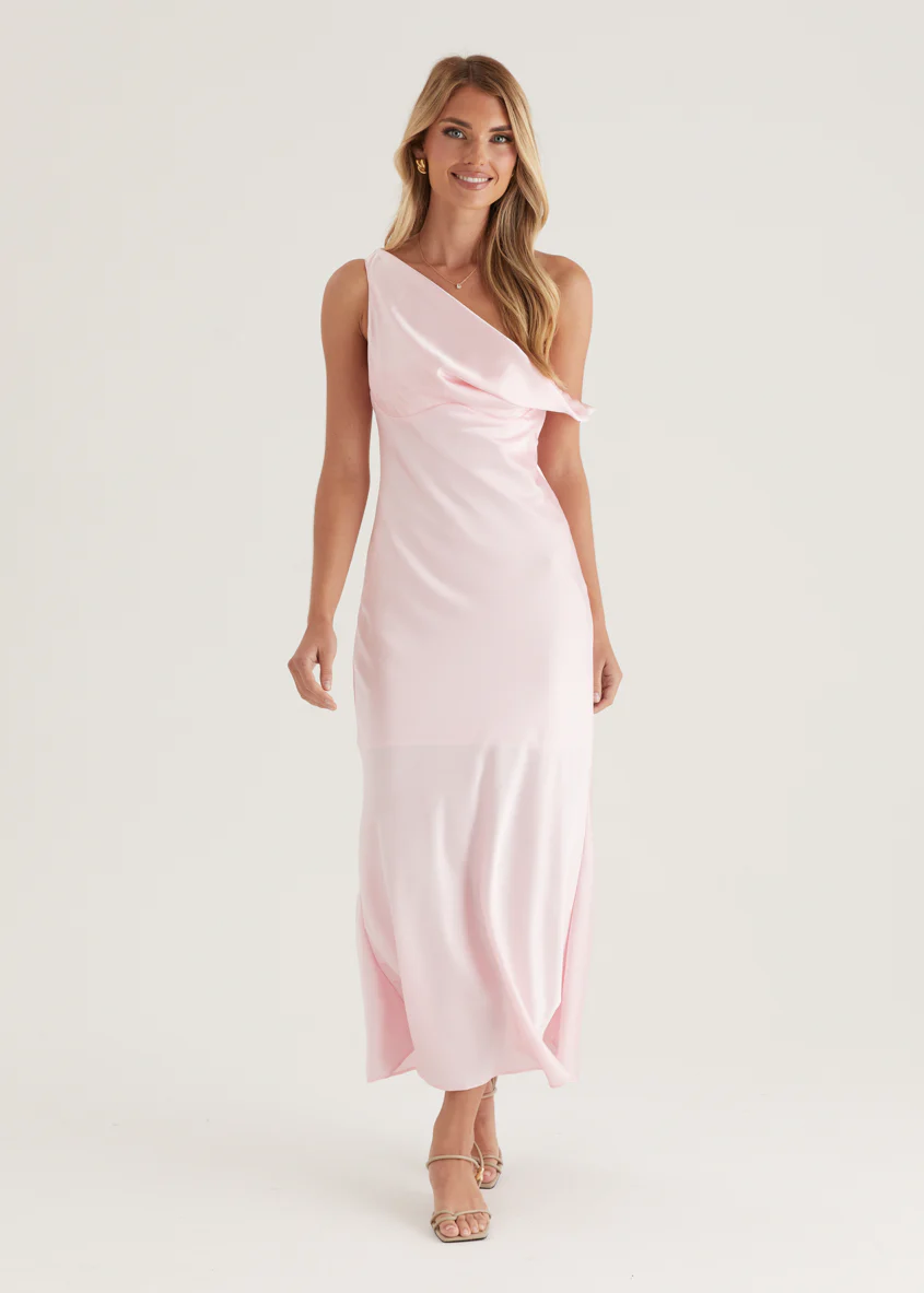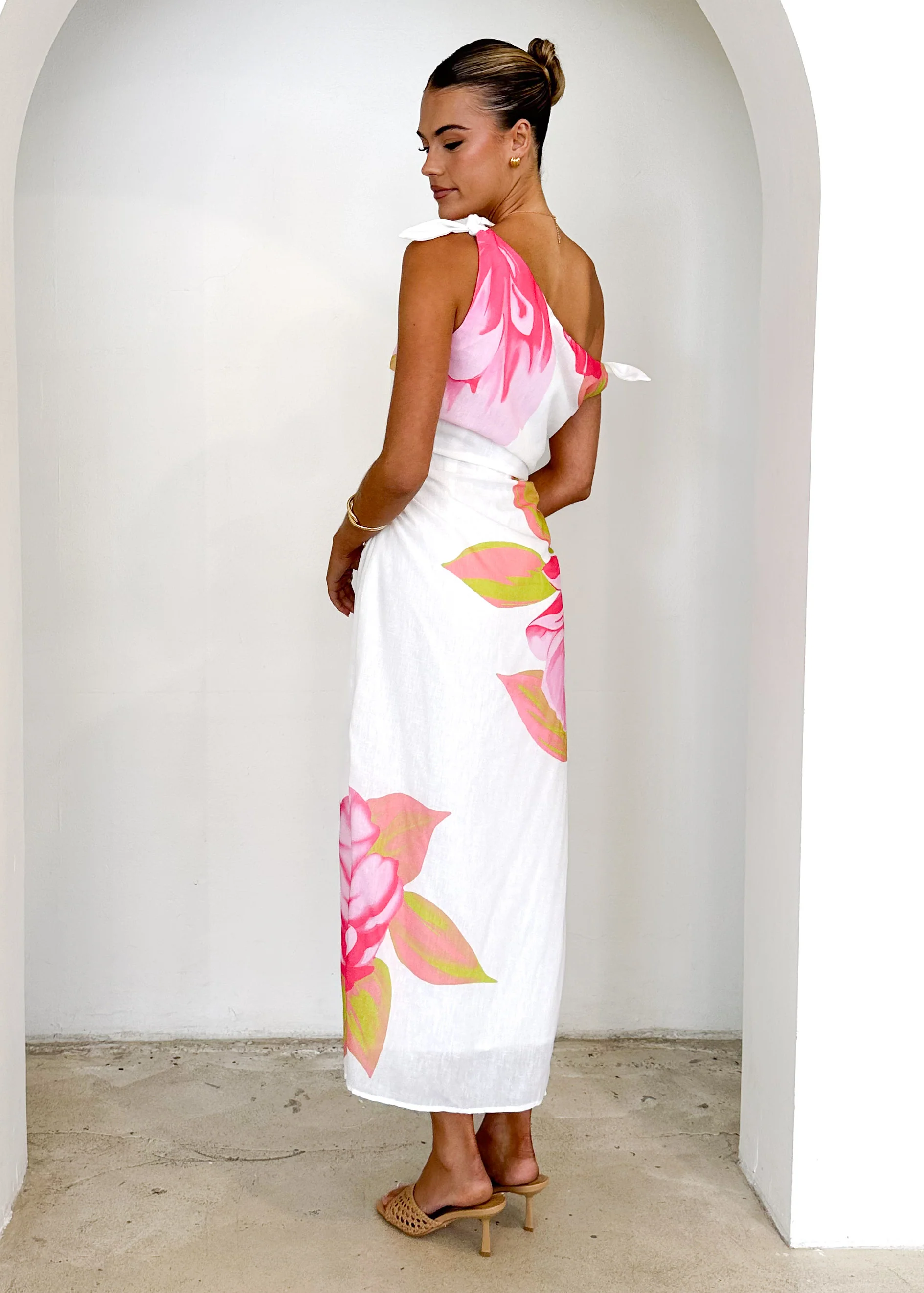 Dulcie One Shoulder Midi Dress - Pink Flowers