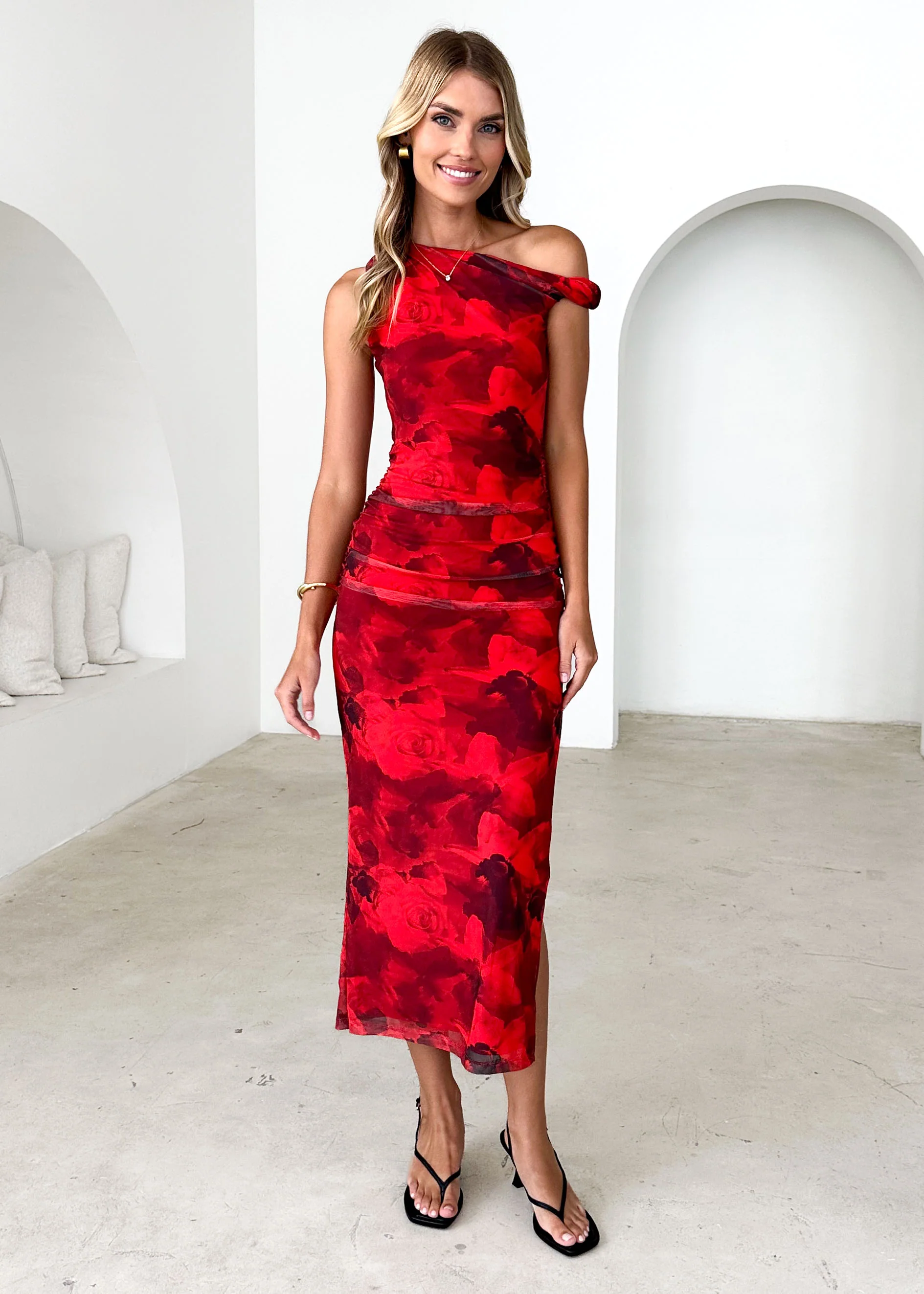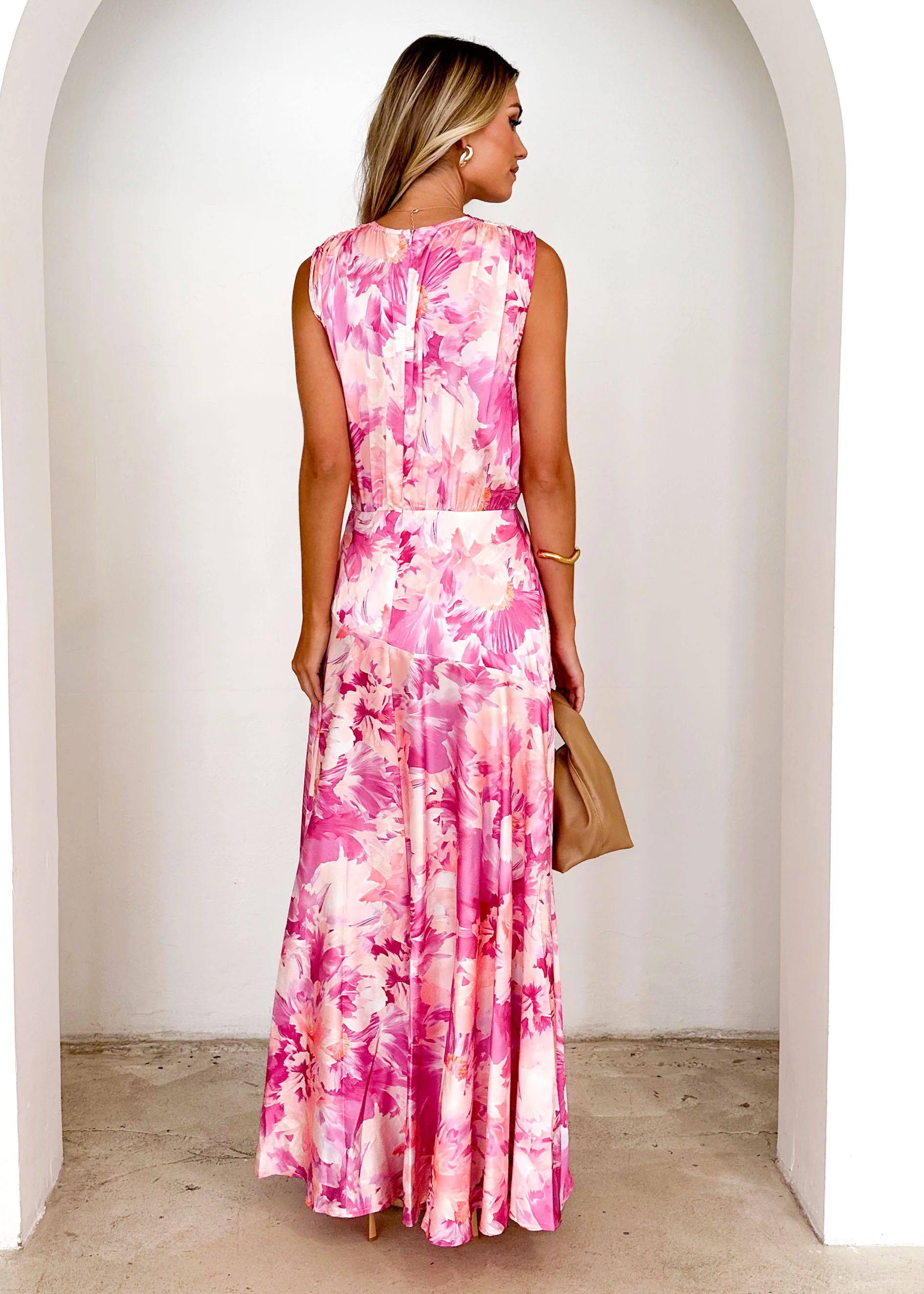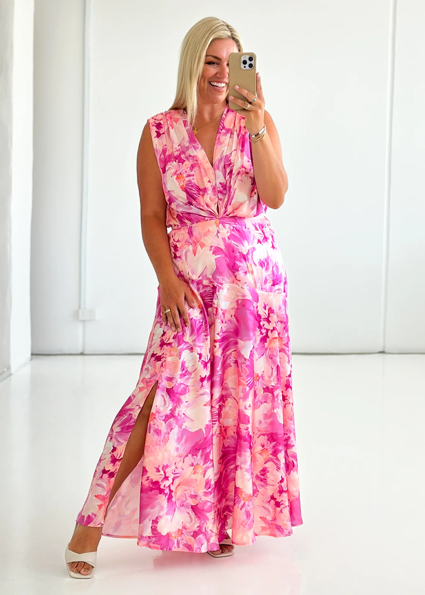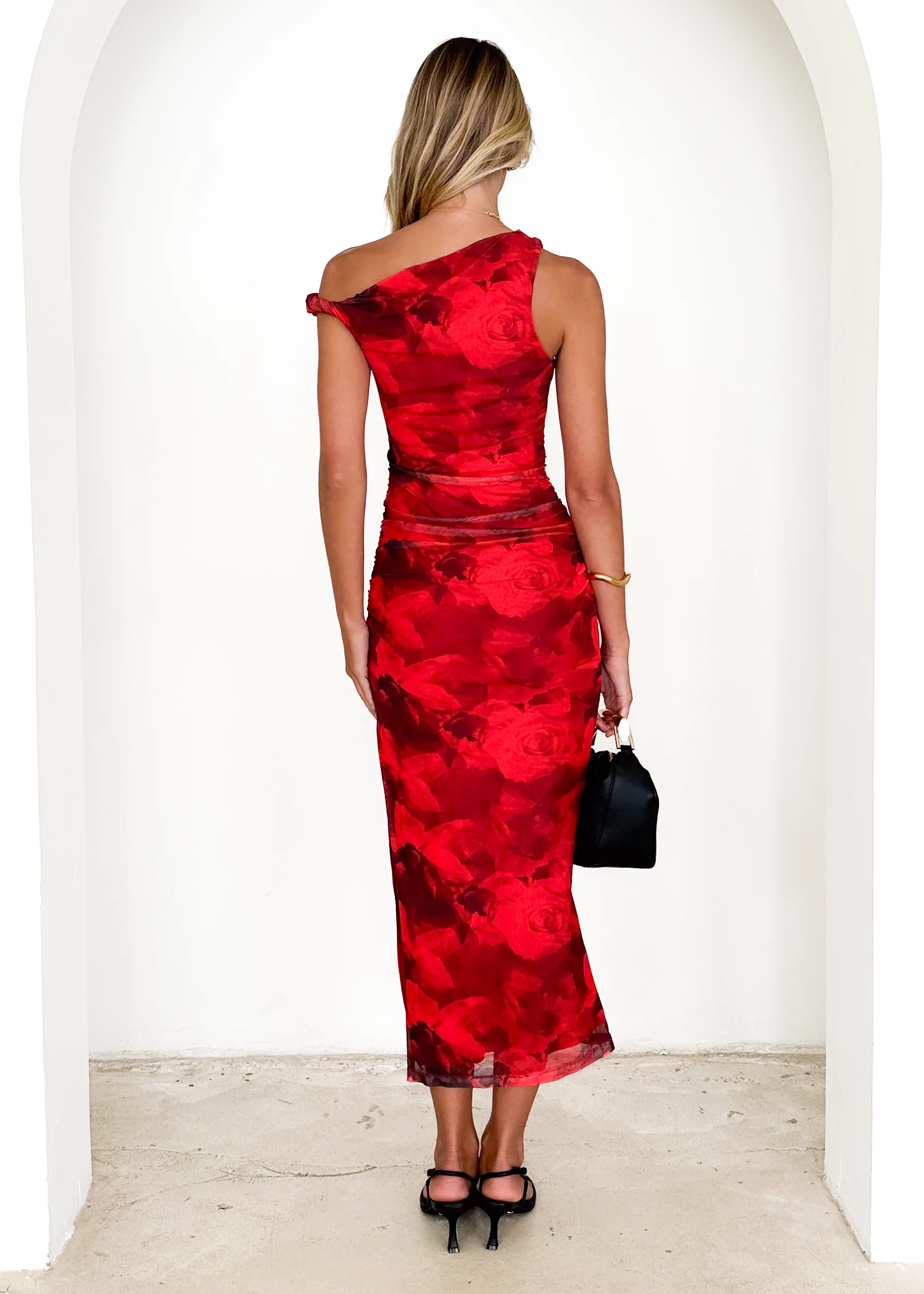 Dulcie One Shoulder Midi Dress - Pink Flowers