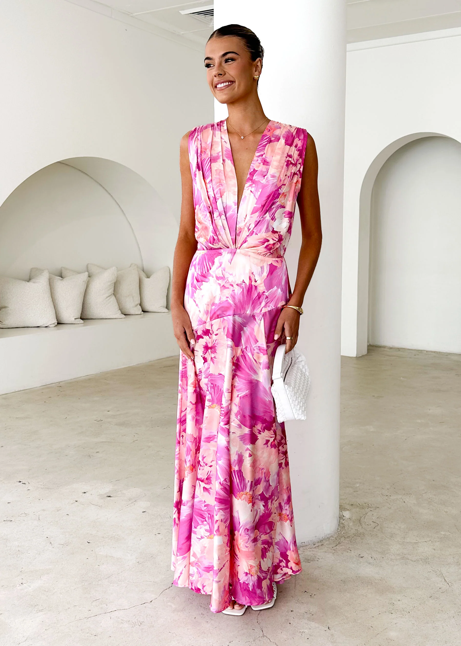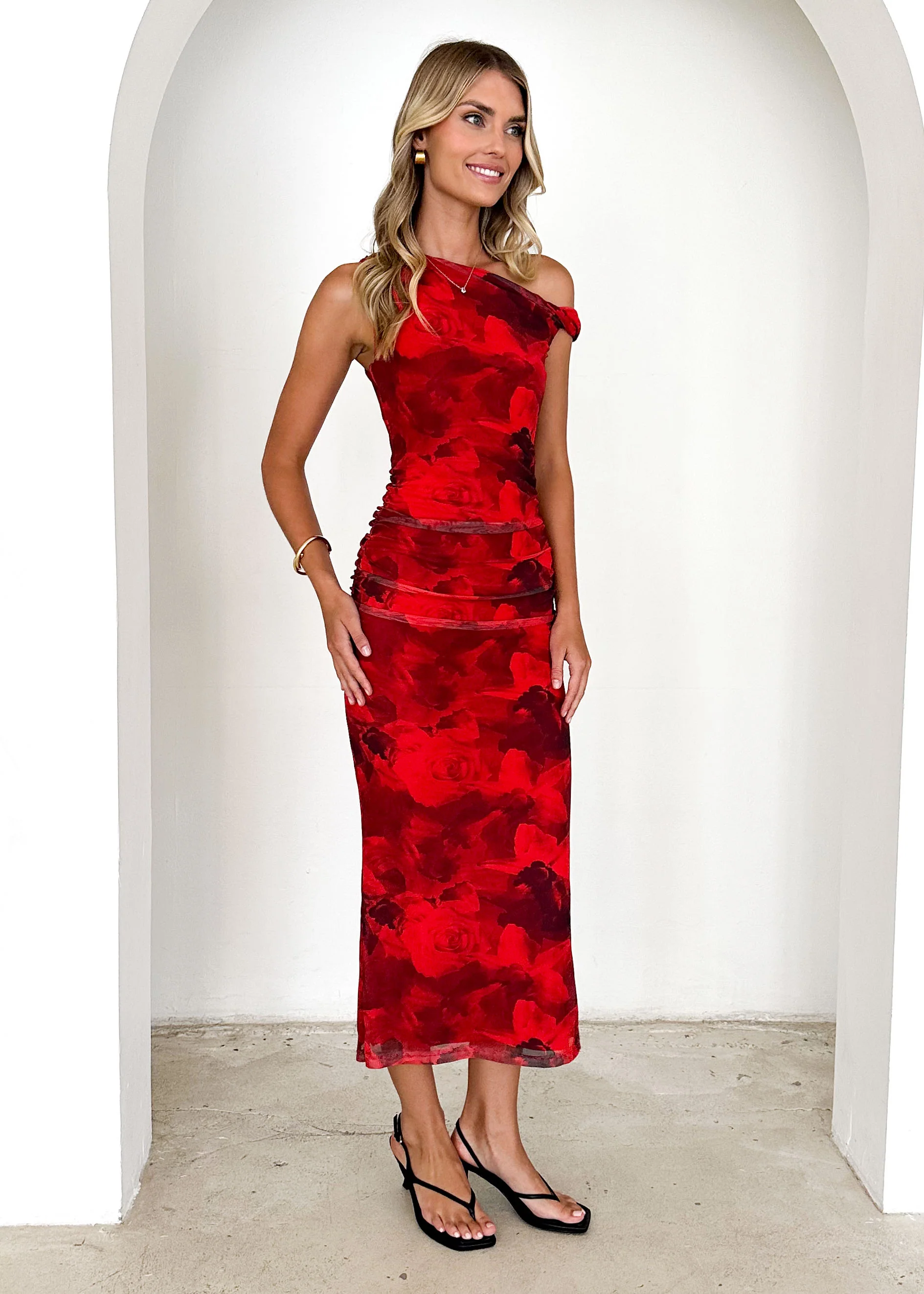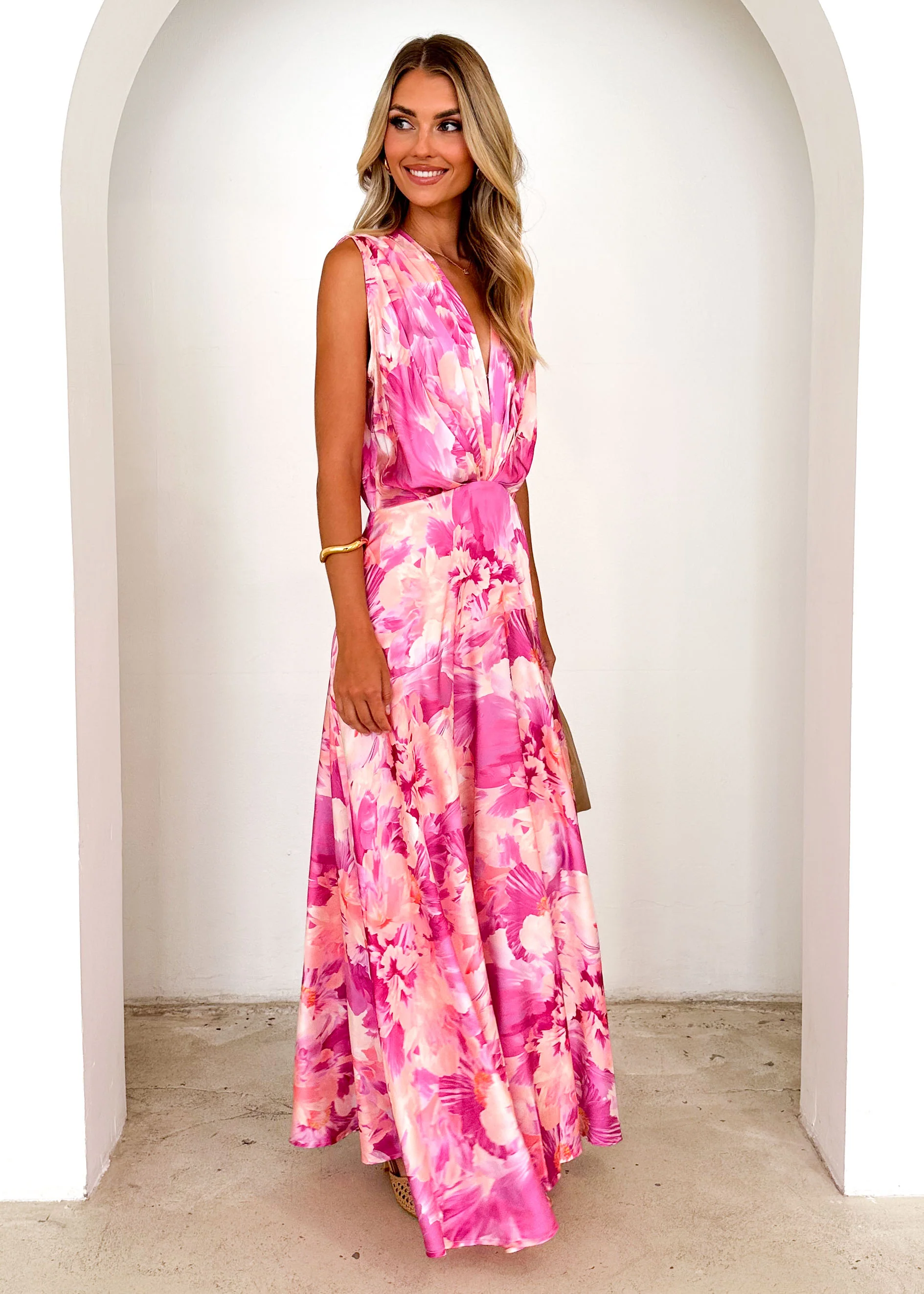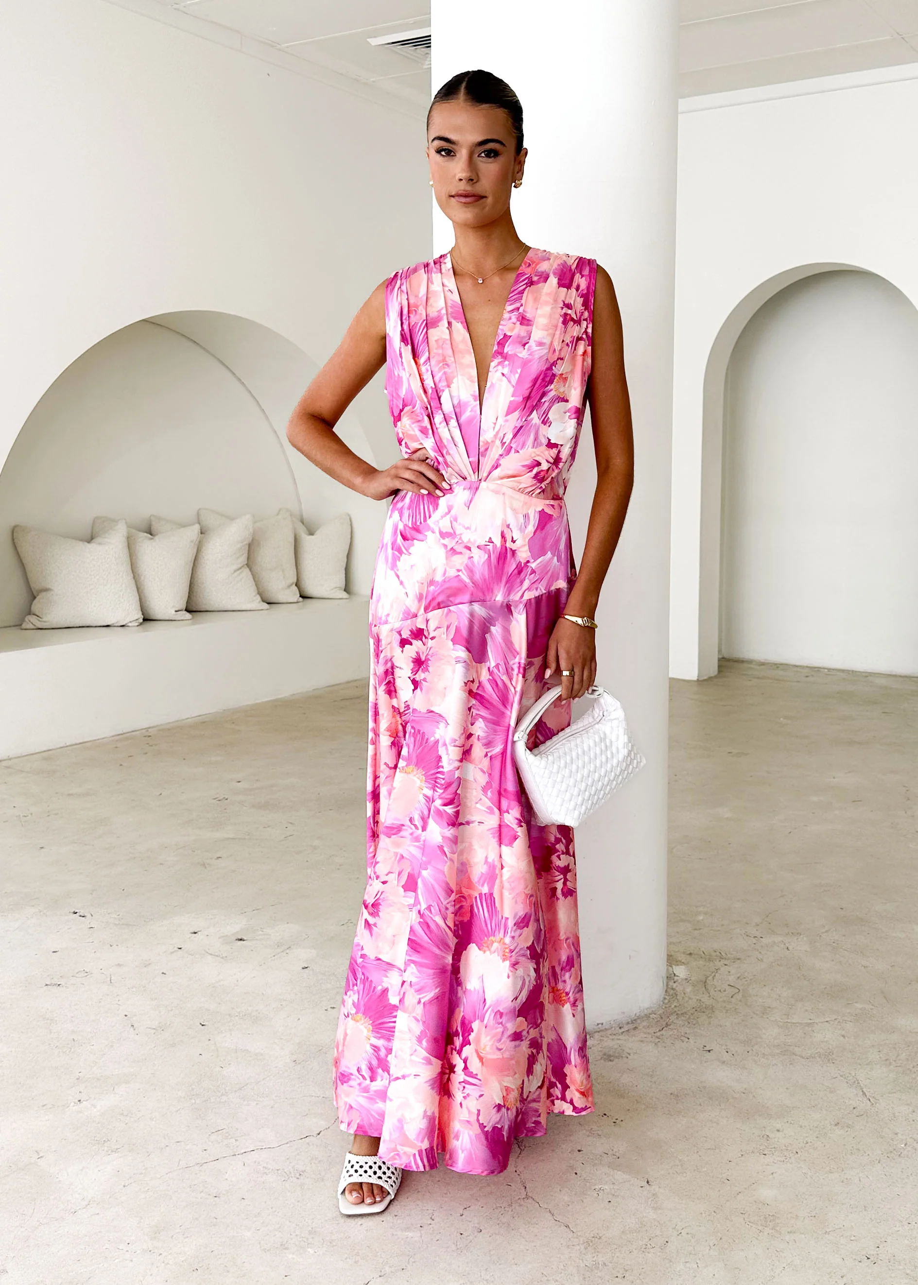 Dulcie One Shoulder Midi Dress - Pink Flowers