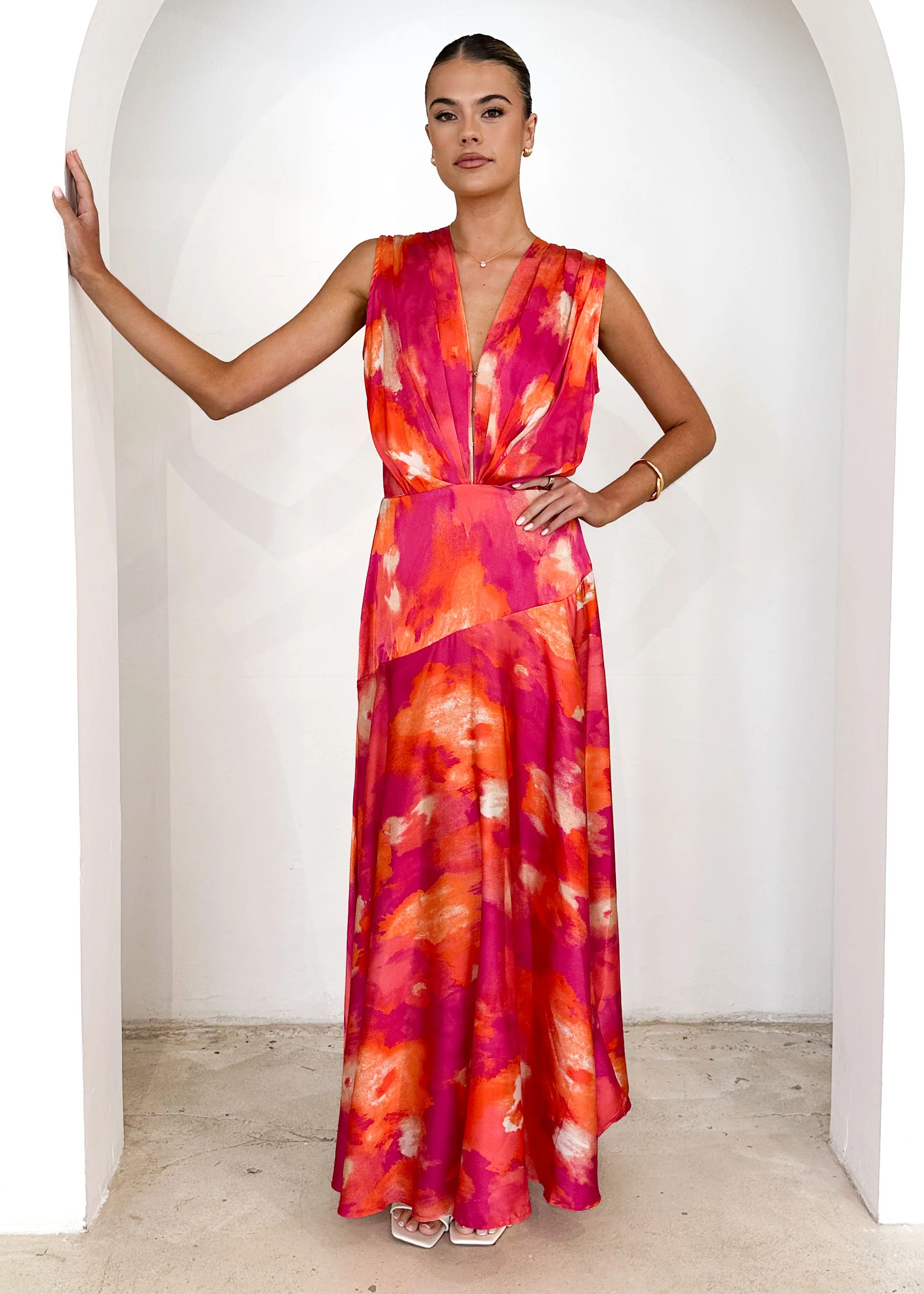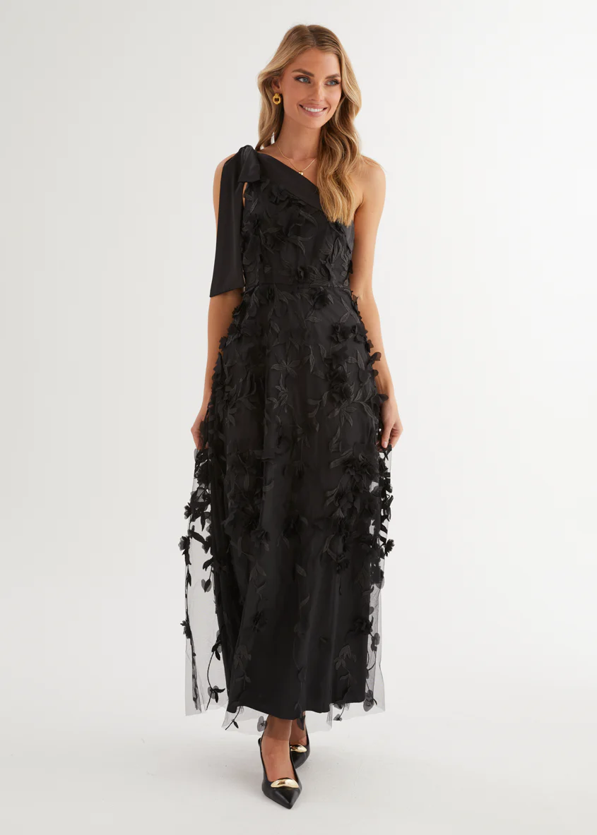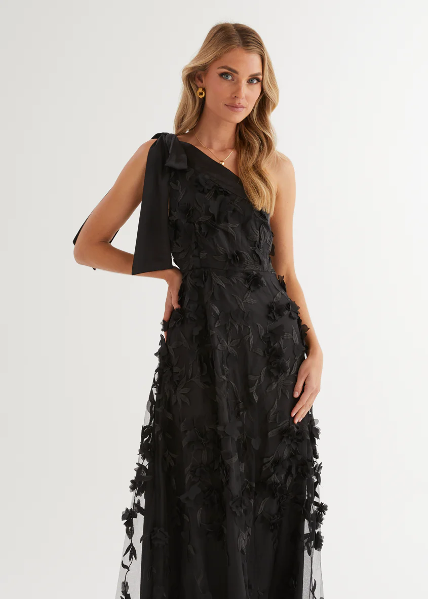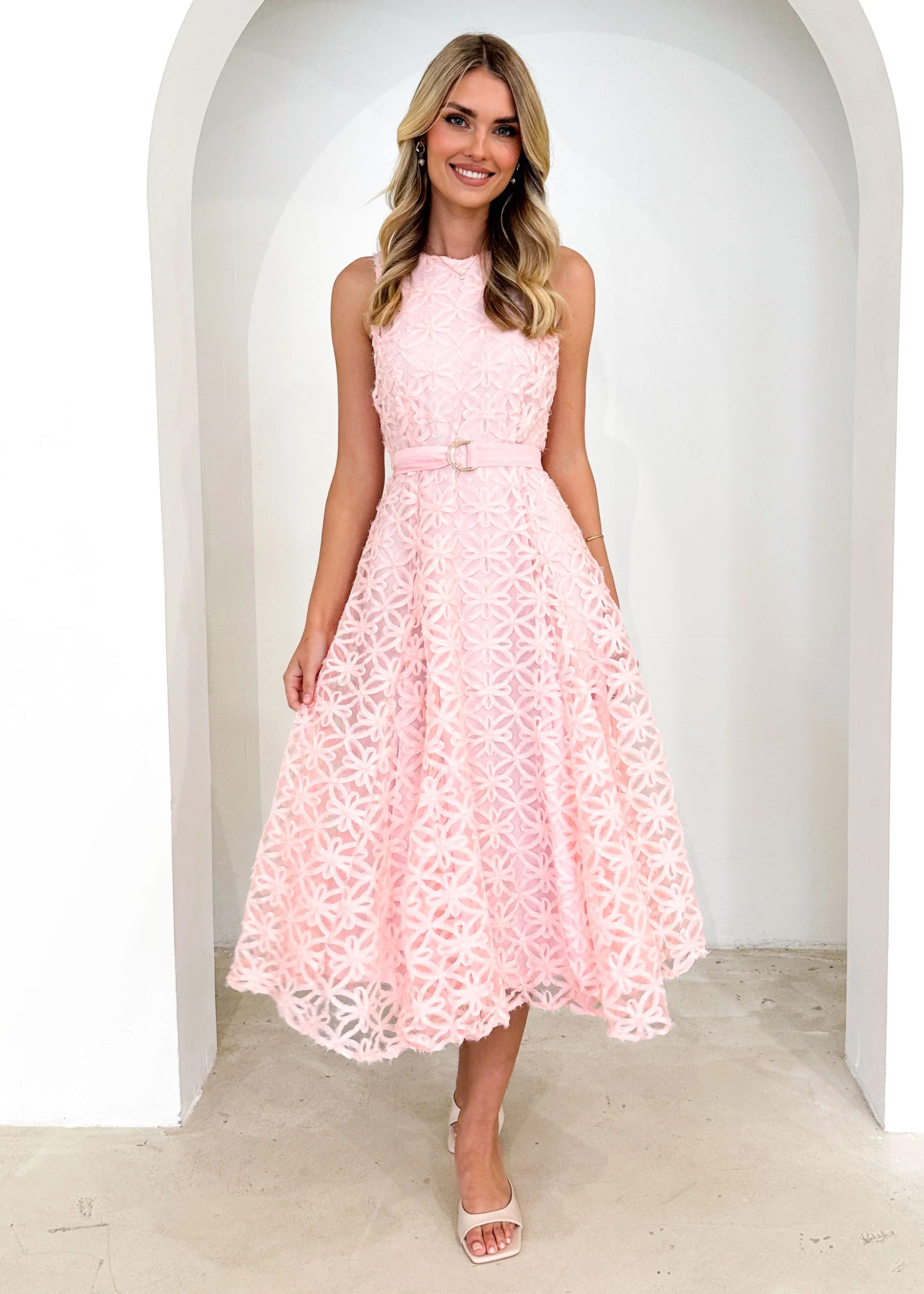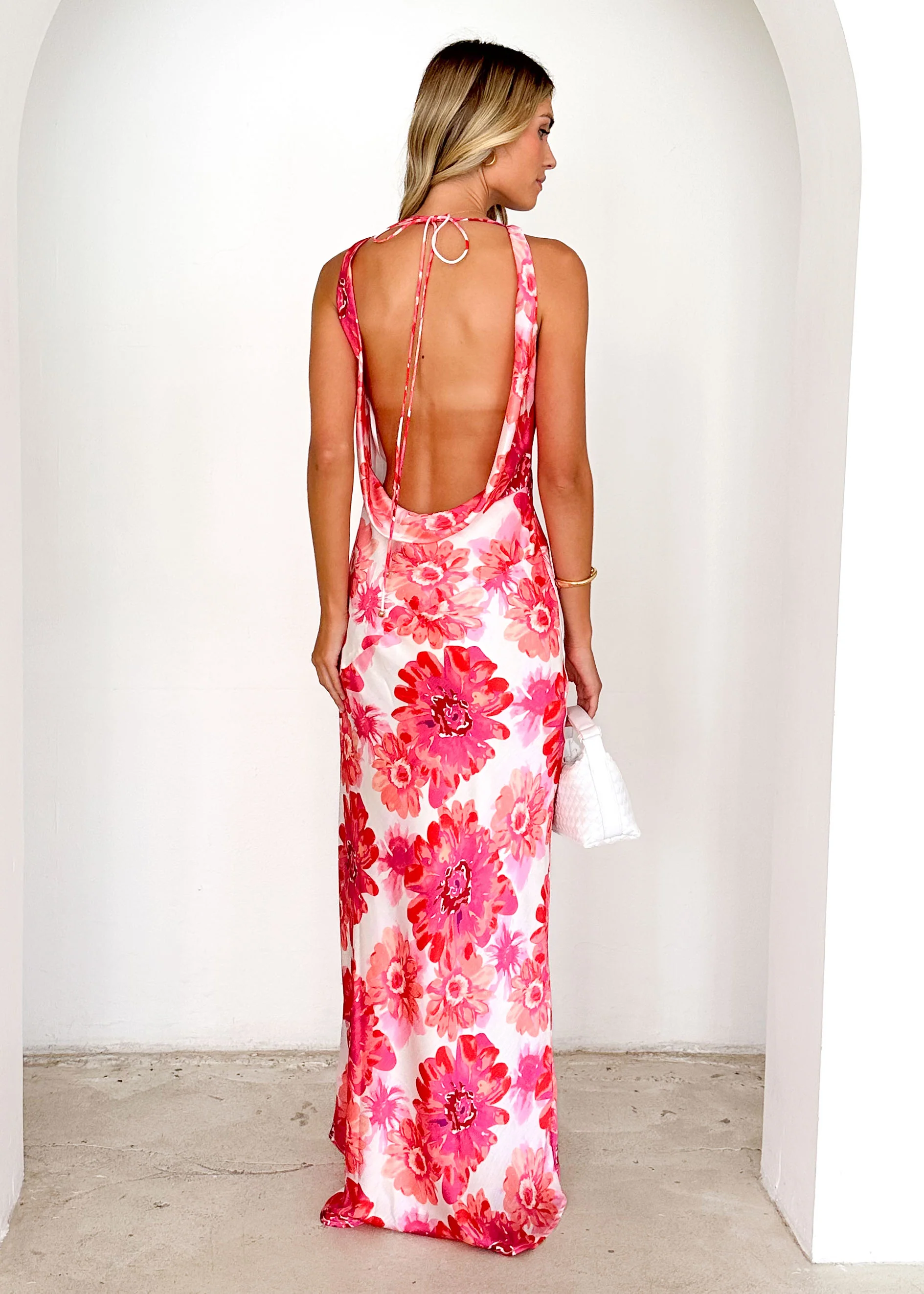 Dulcie One Shoulder Midi Dress - Pink Flowers