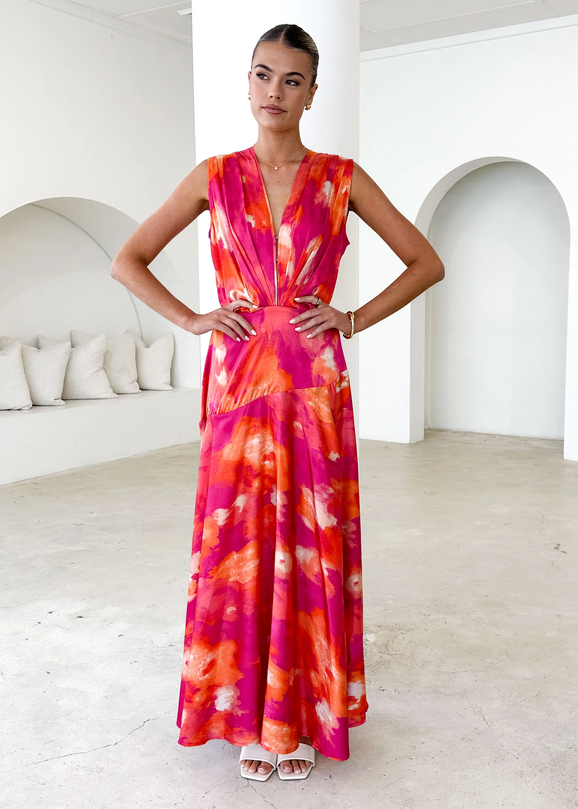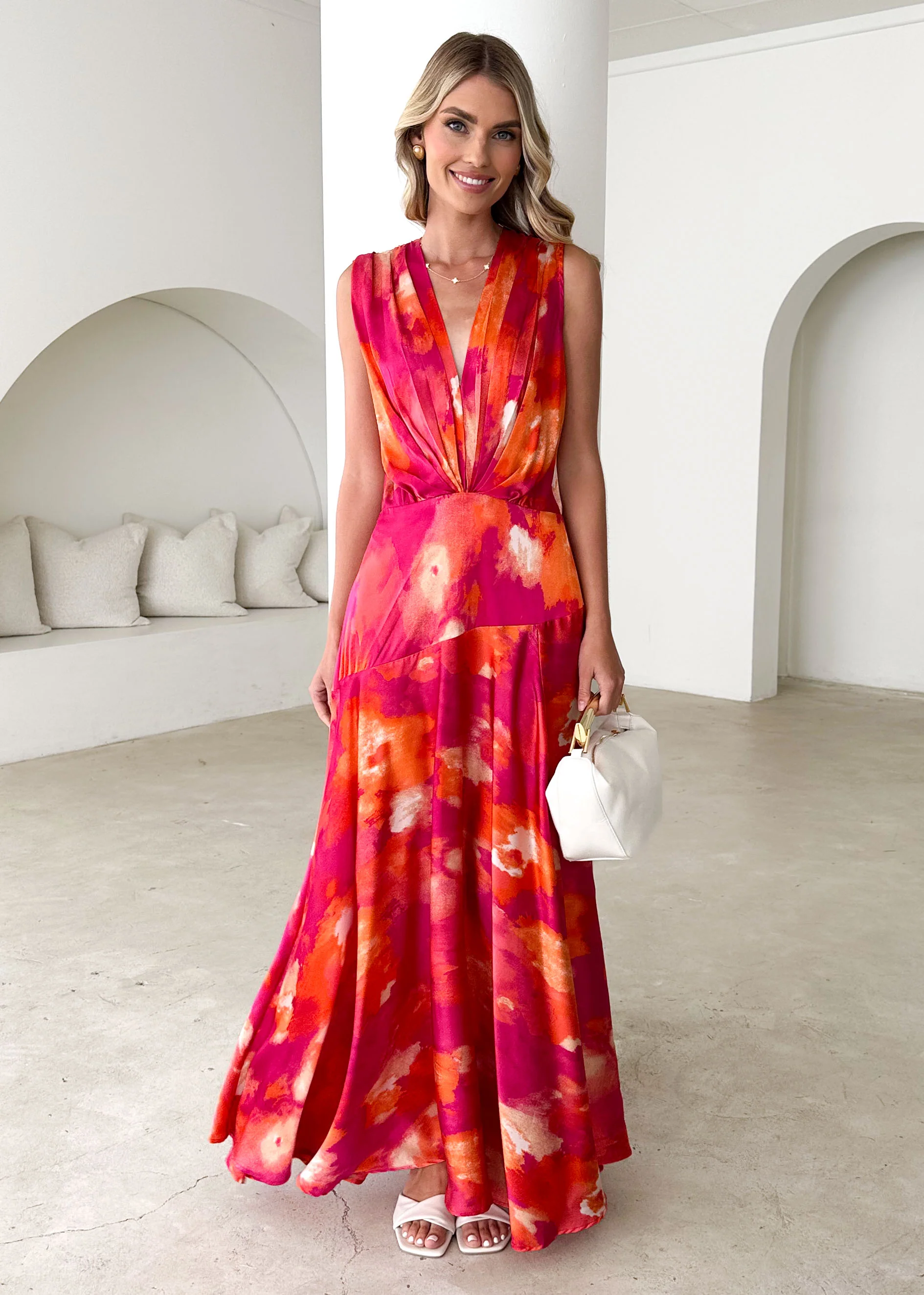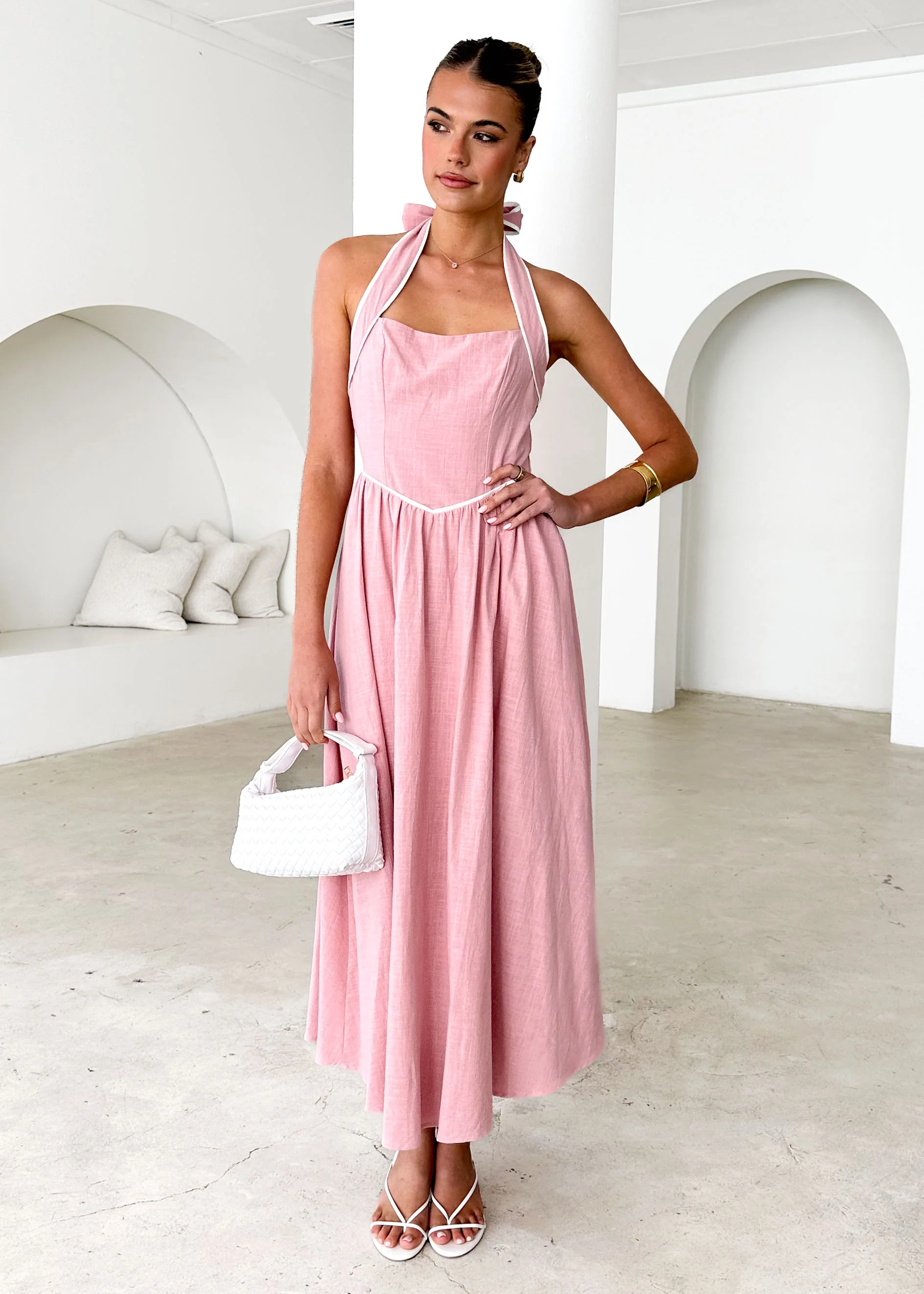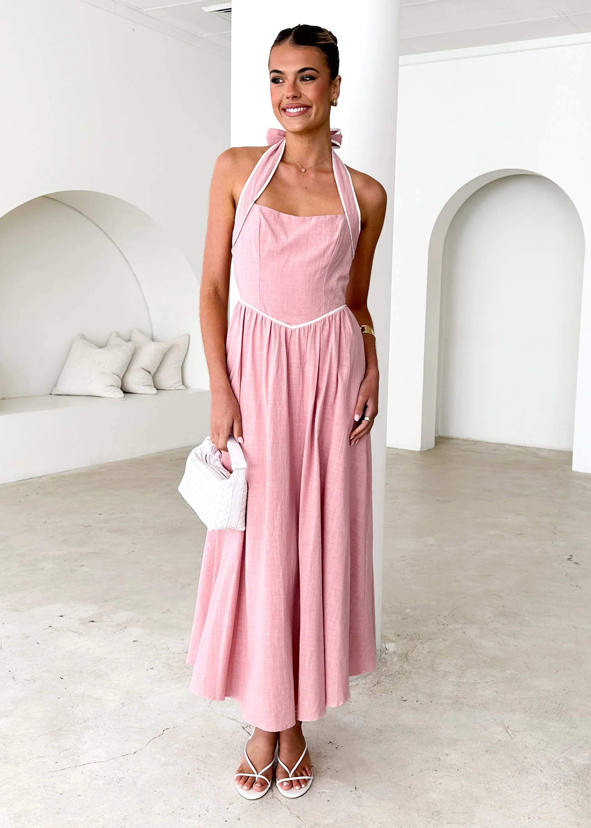 Dulcie One Shoulder Midi Dress - Pink Flowers