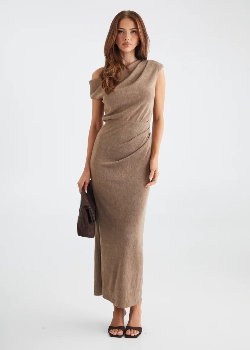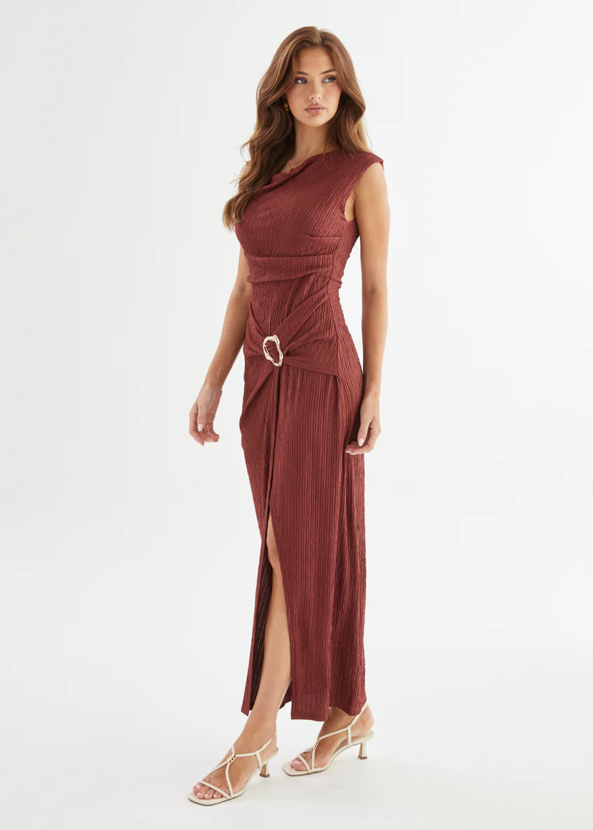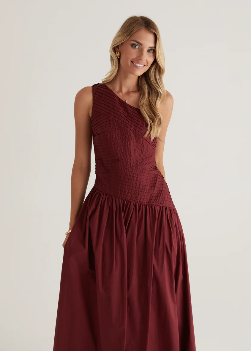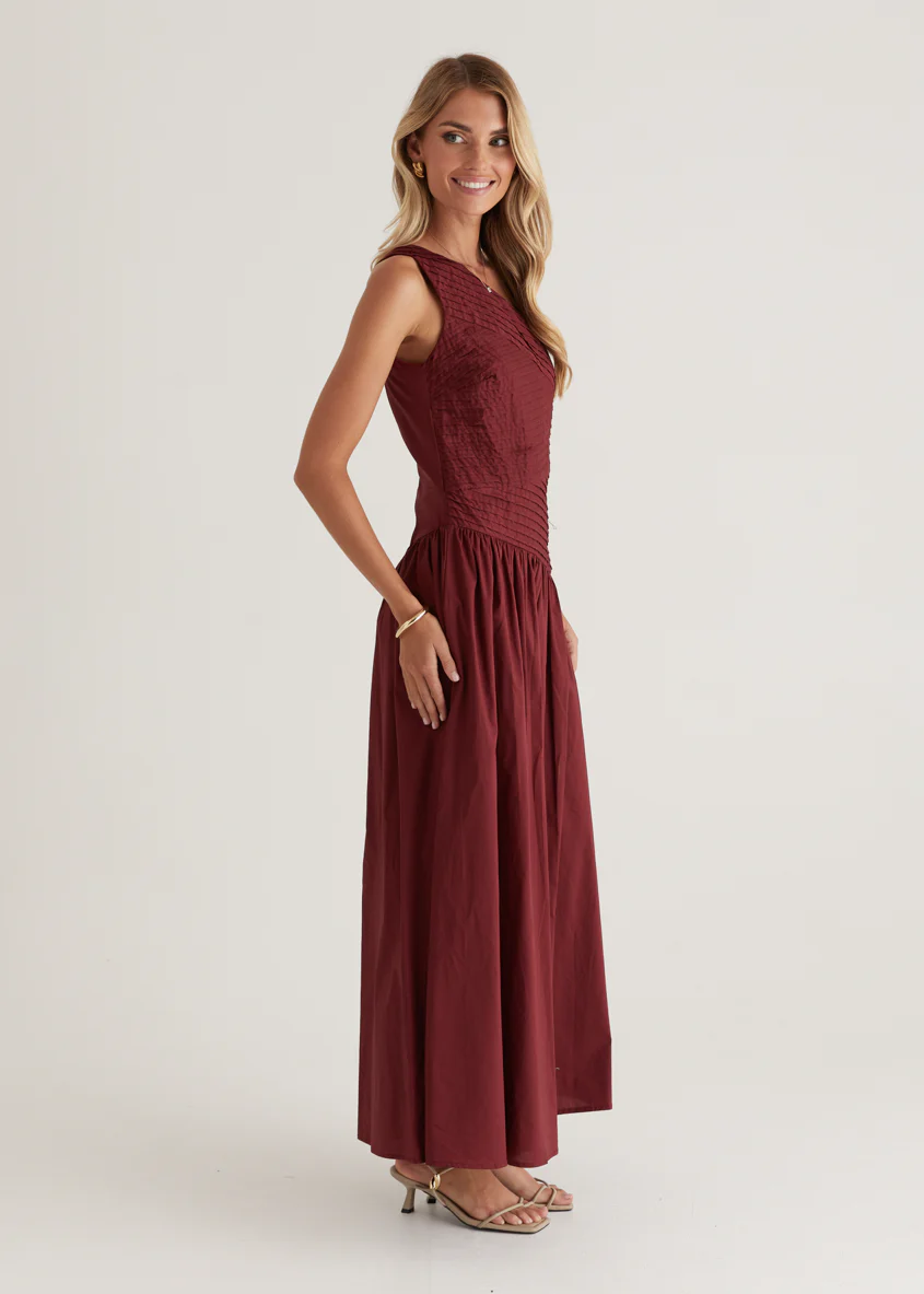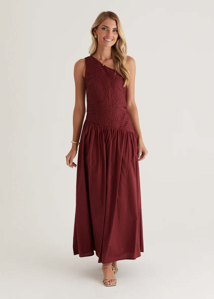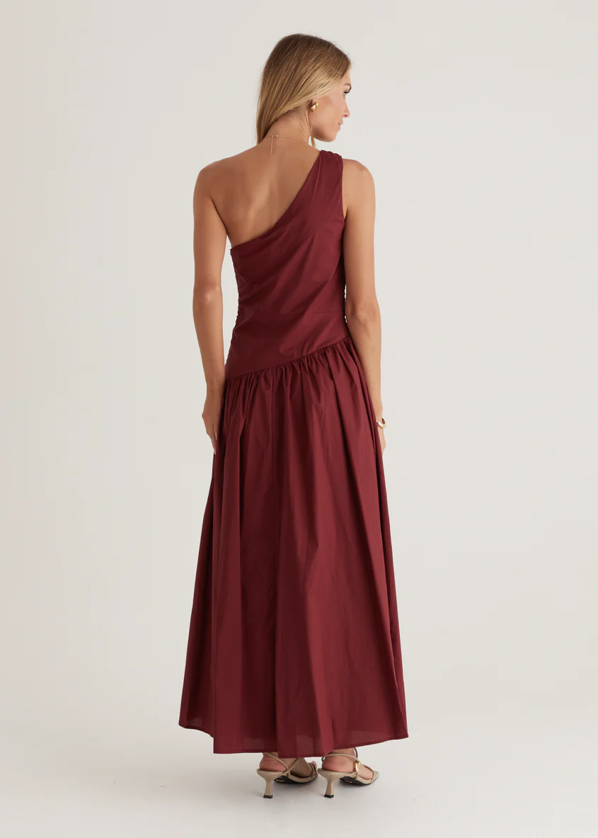 Tazzy One Shoulder Maxi Dress - Burgundy
