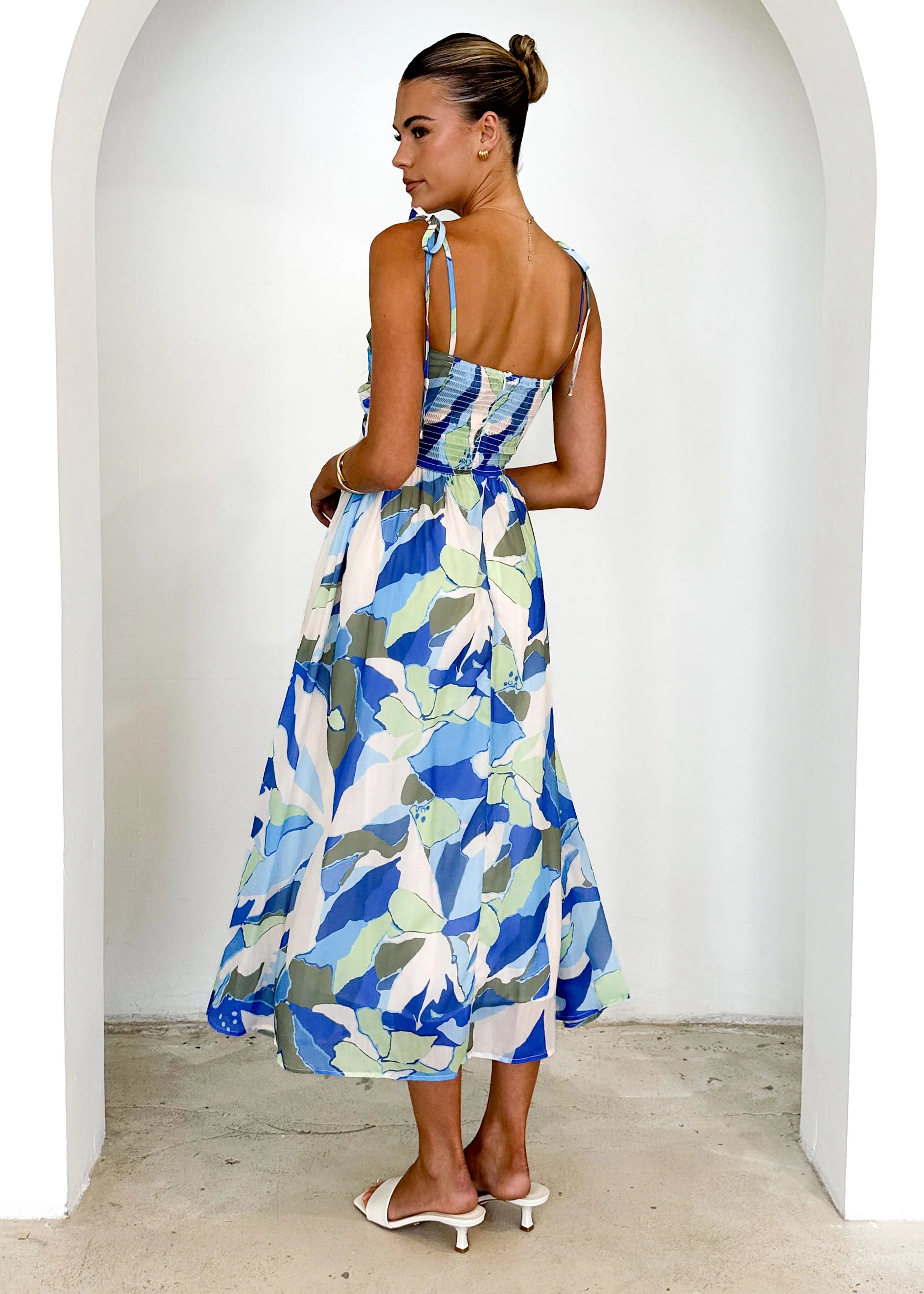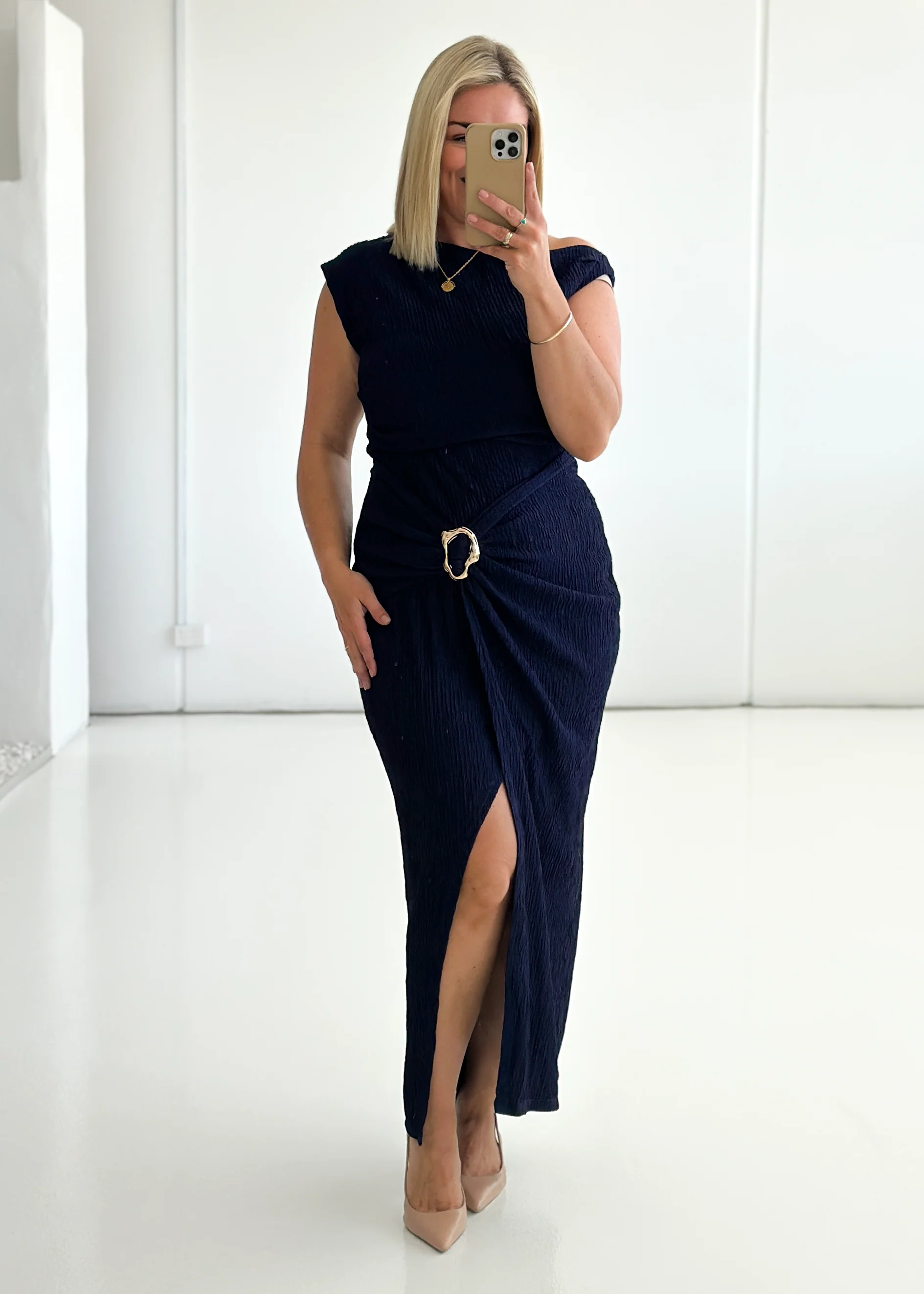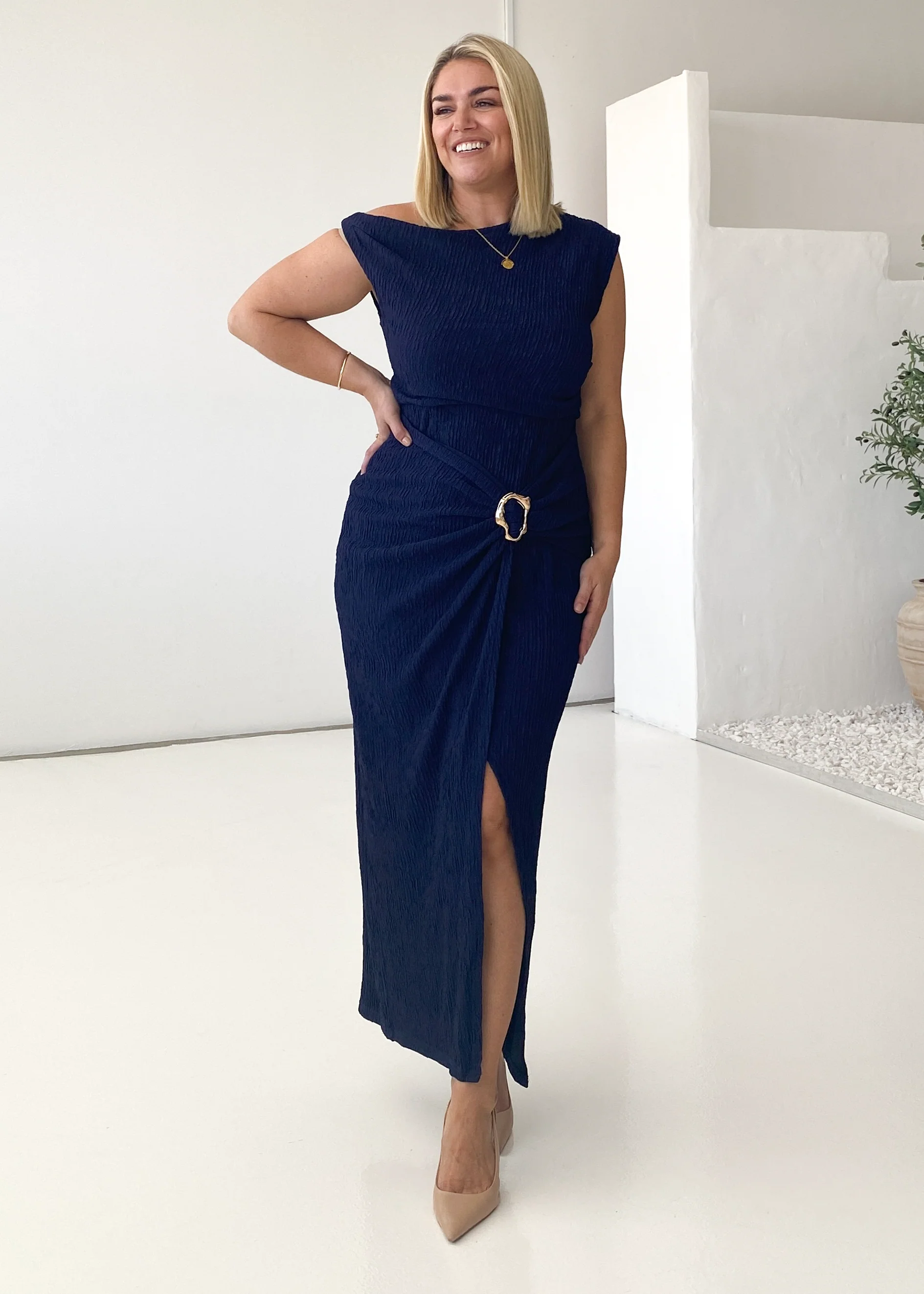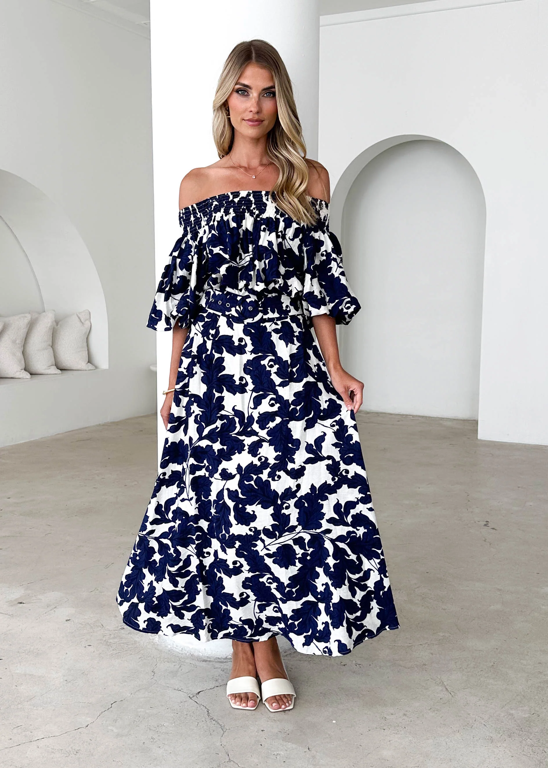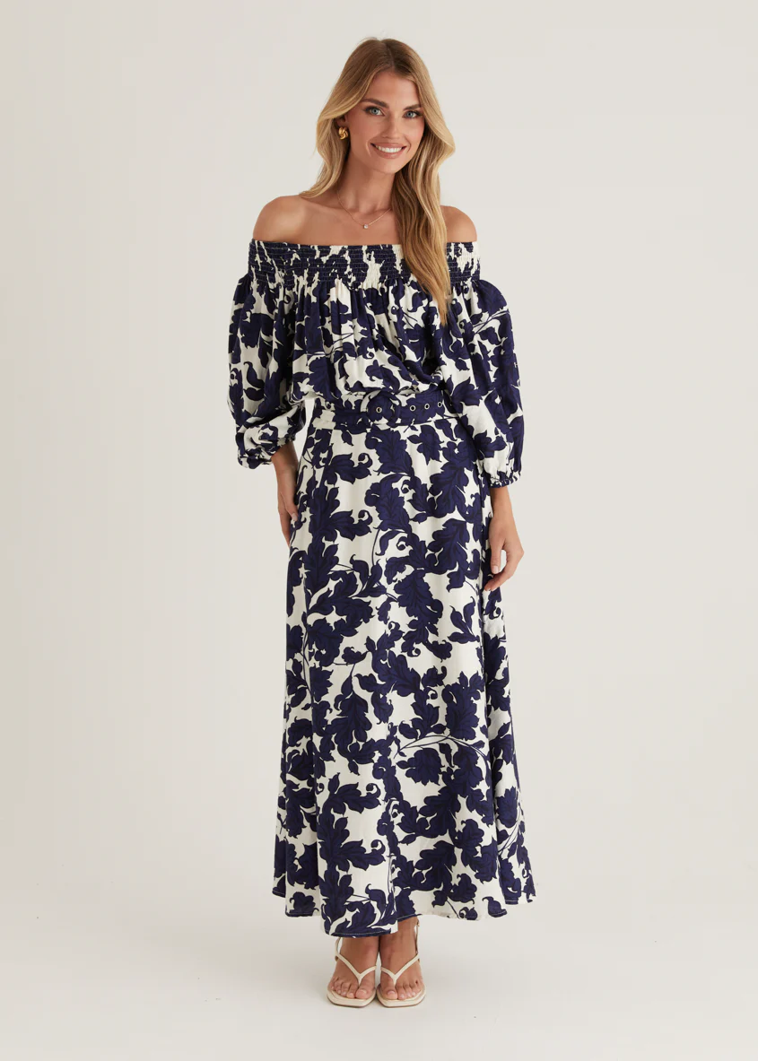 Talu Off Shoulder Midi Dress - Navy Paisley