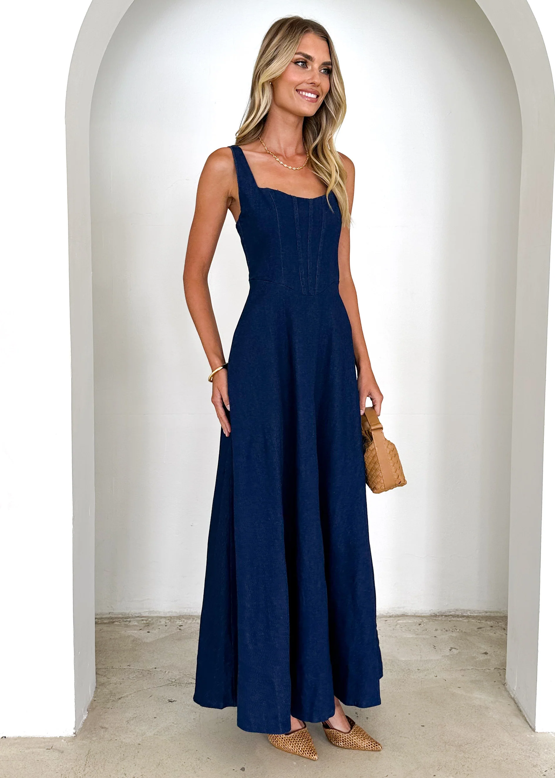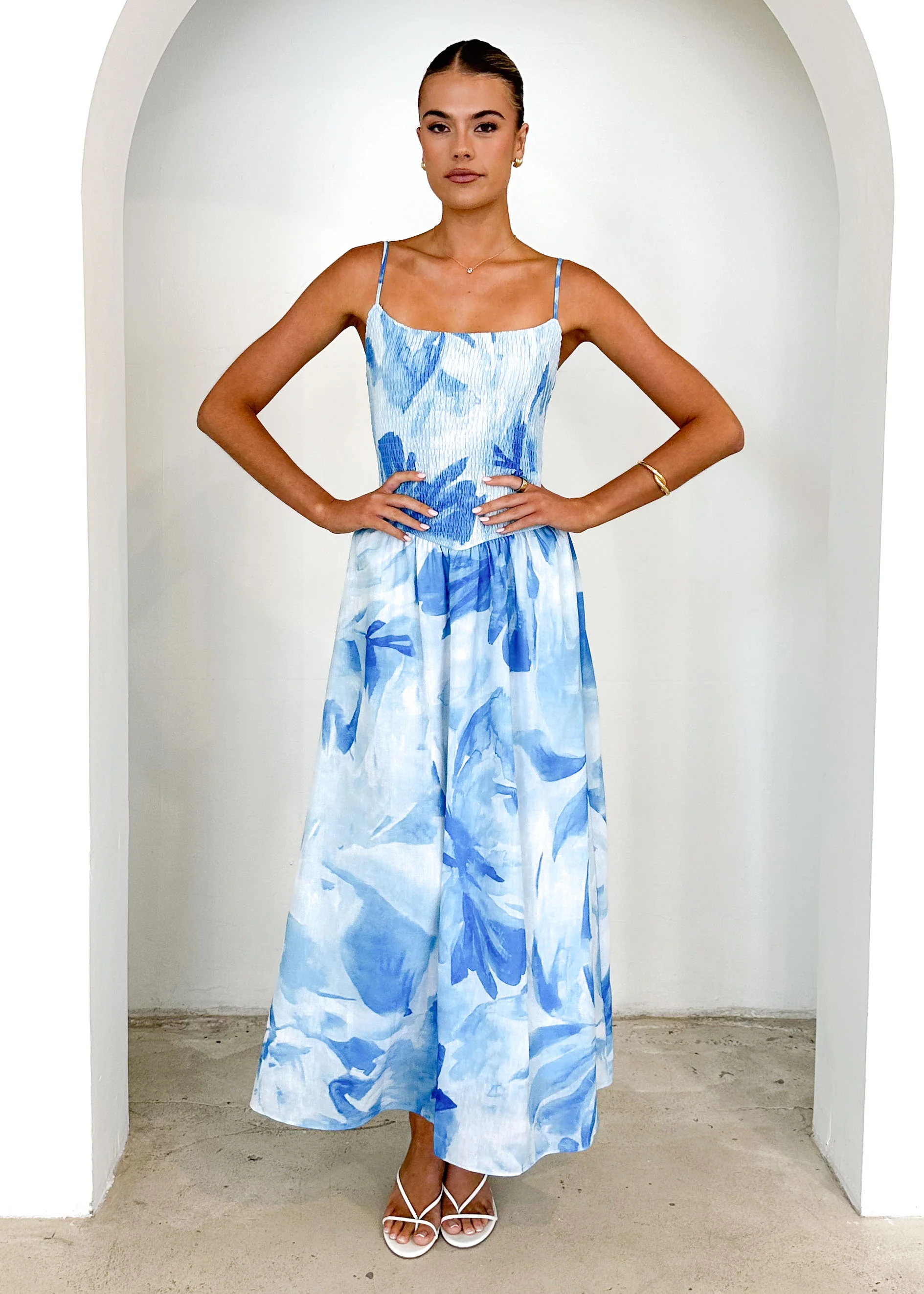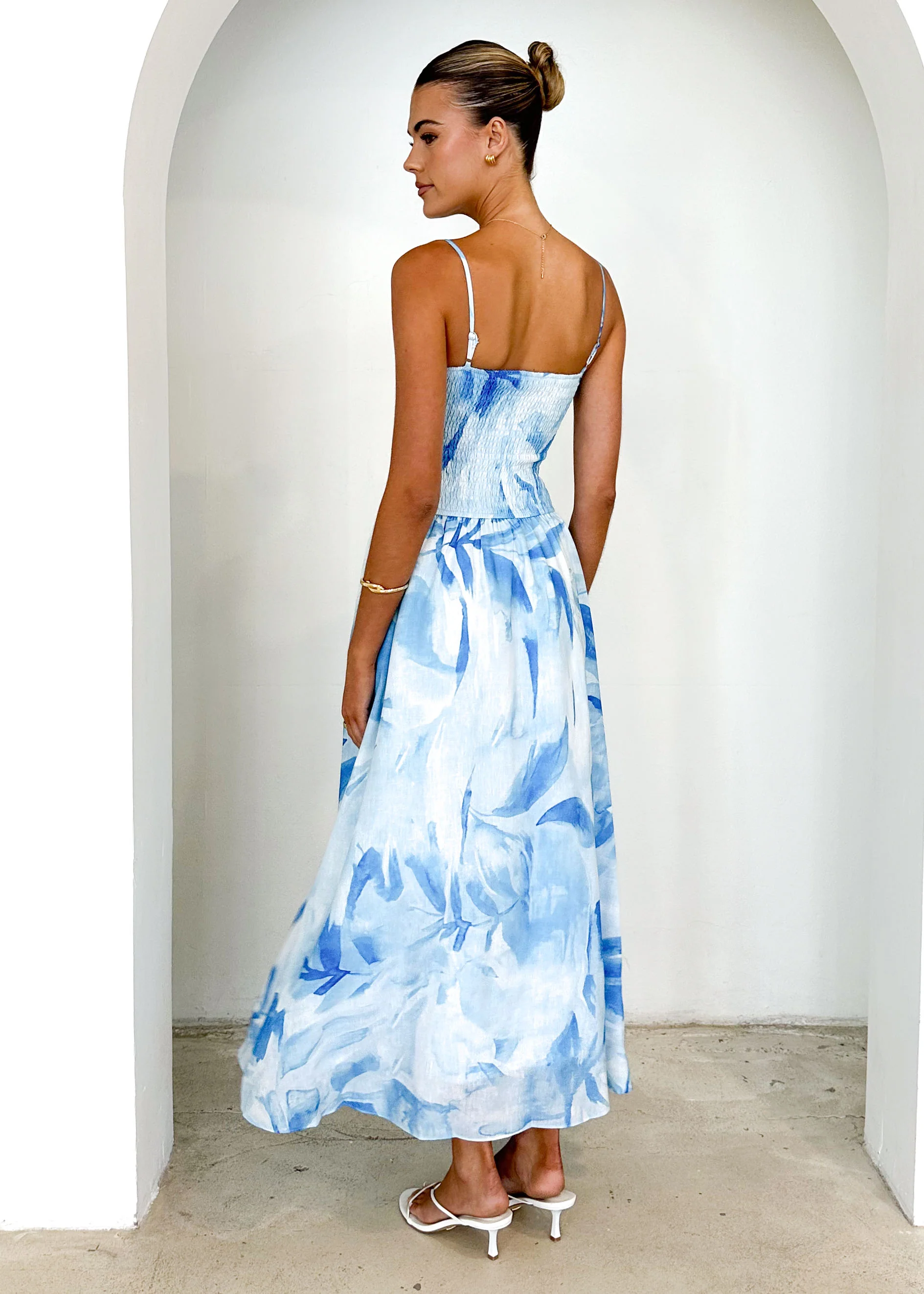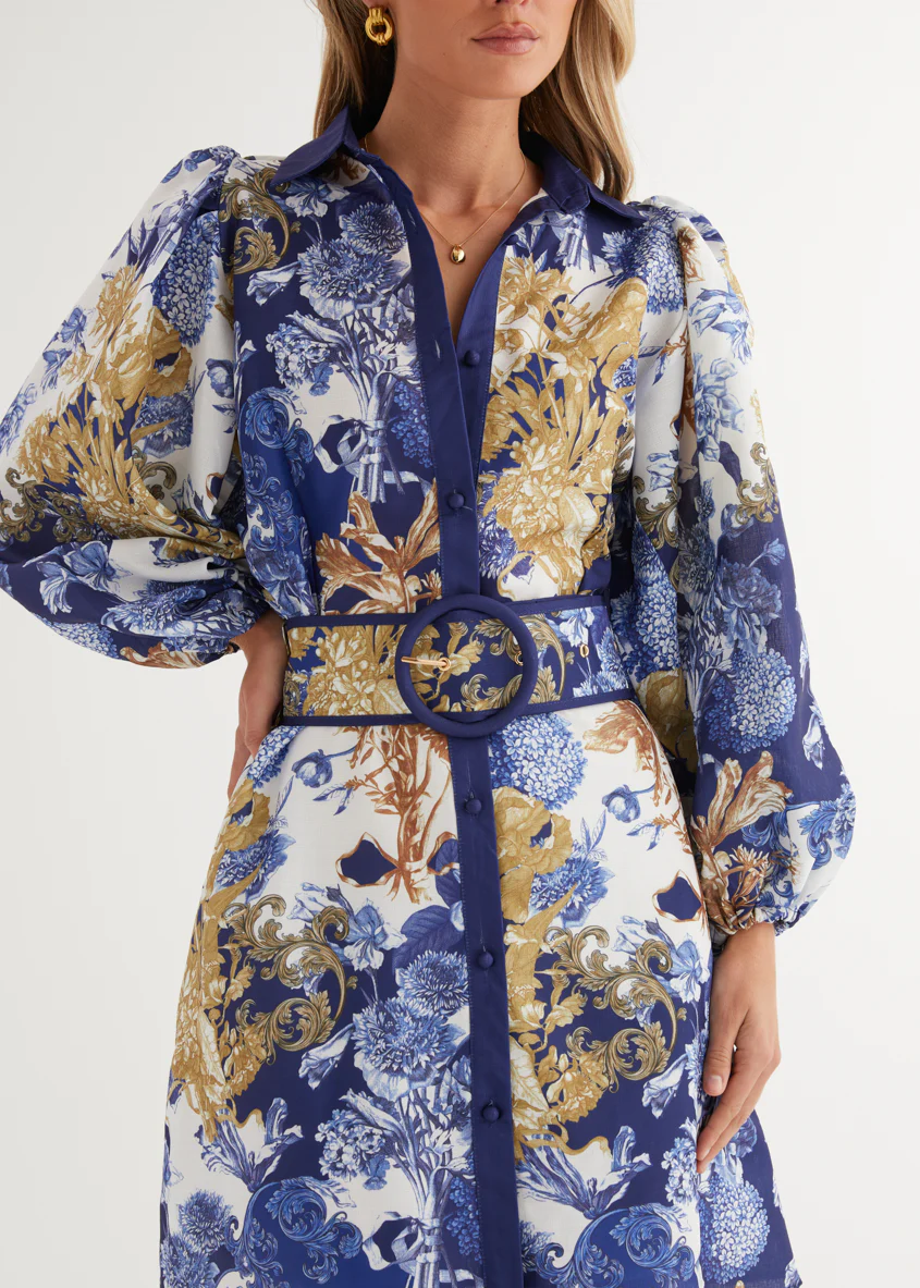 Talu Off Shoulder Midi Dress - Navy Paisley