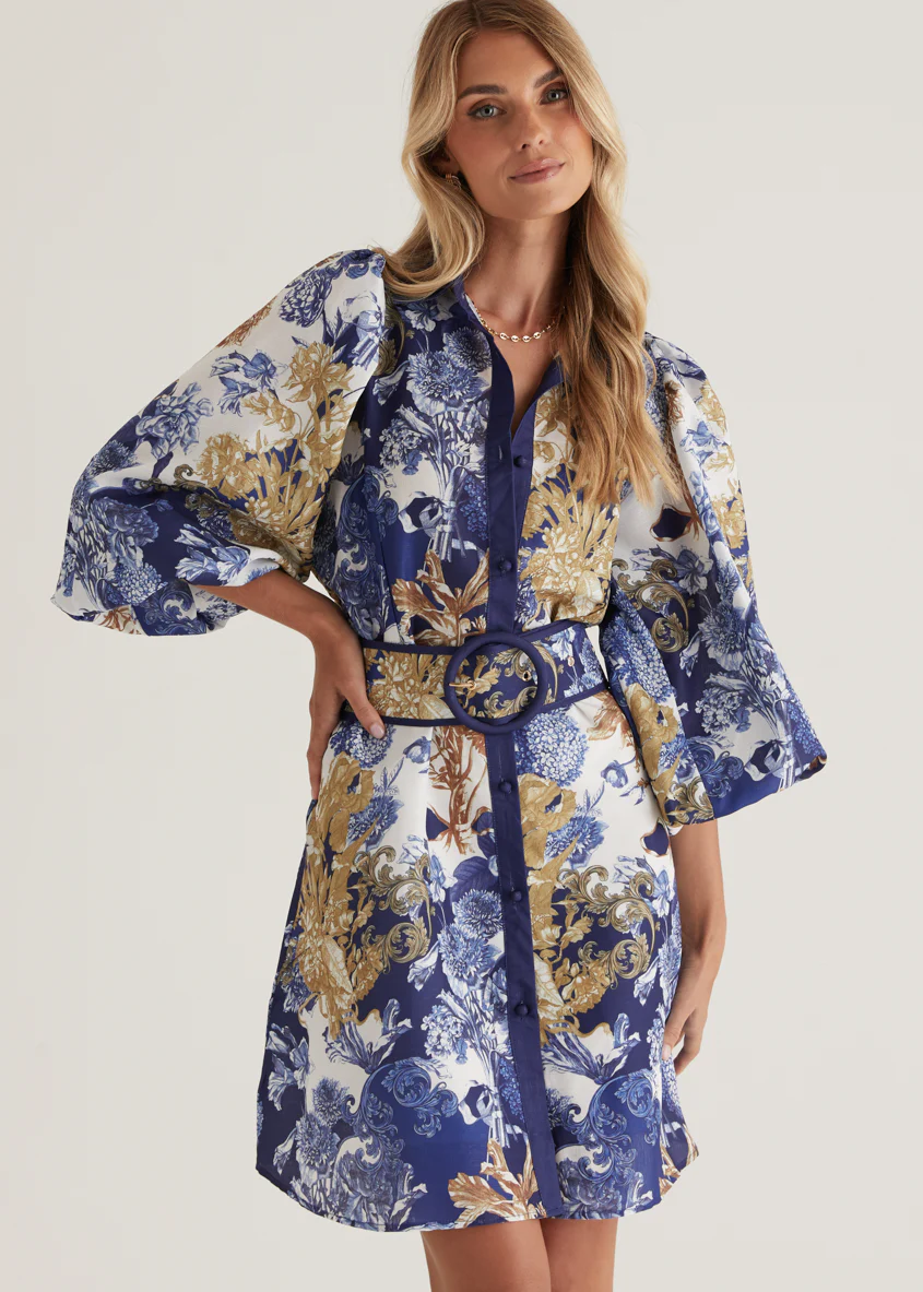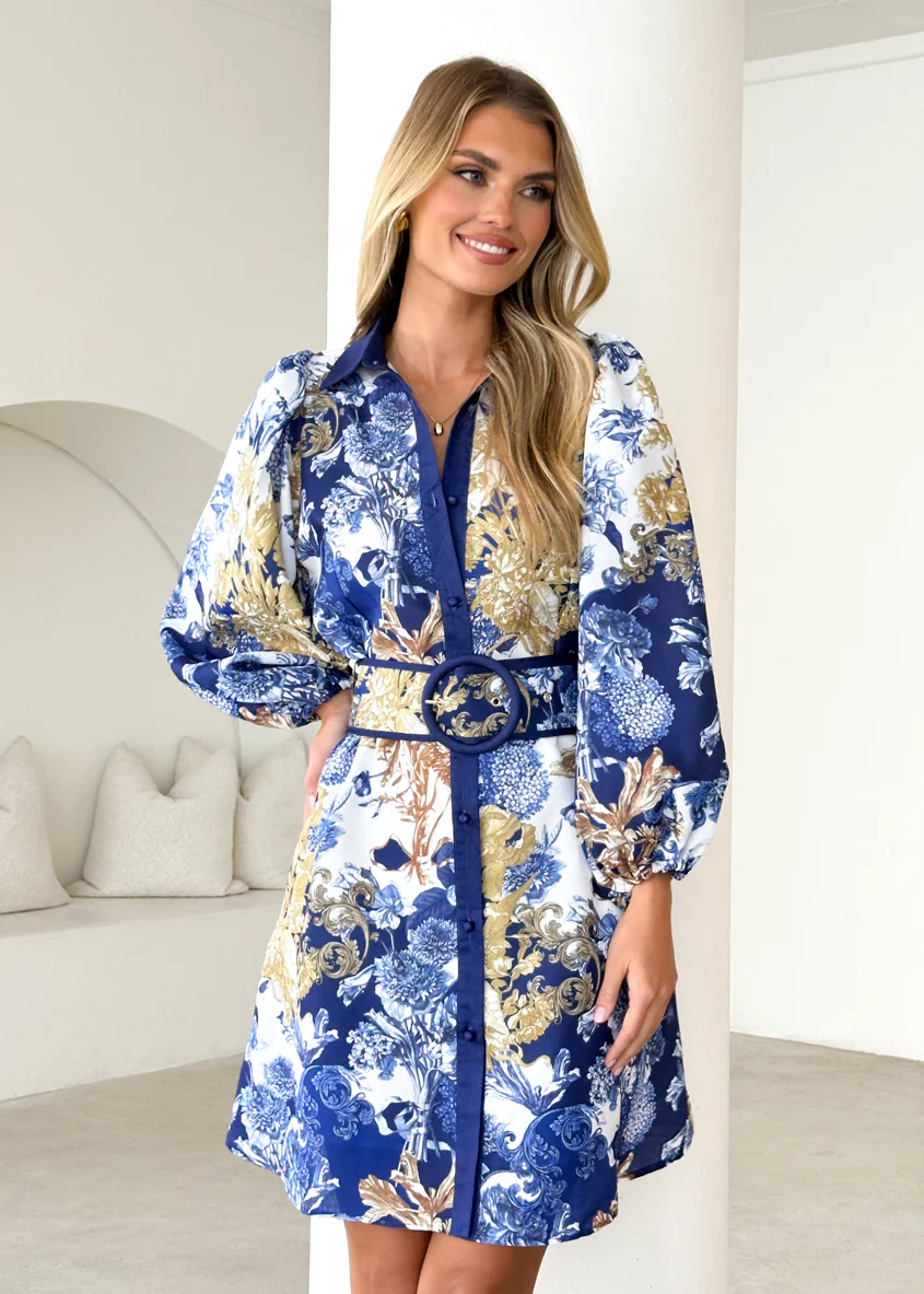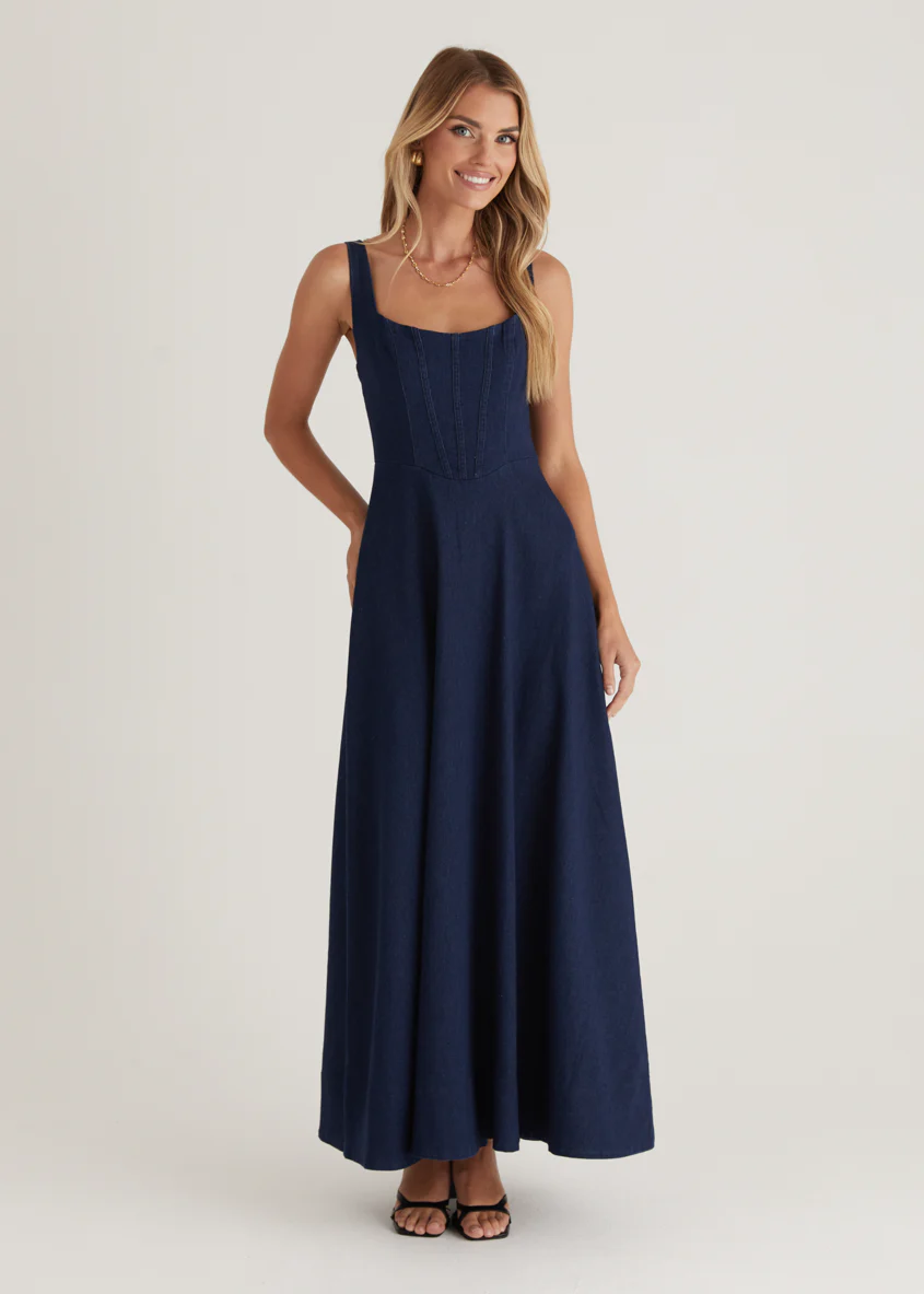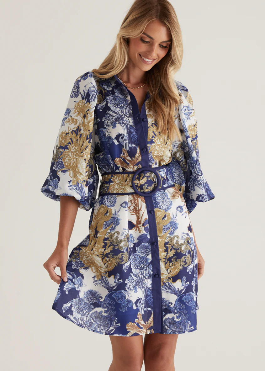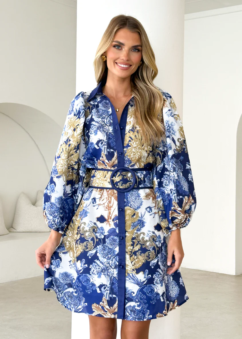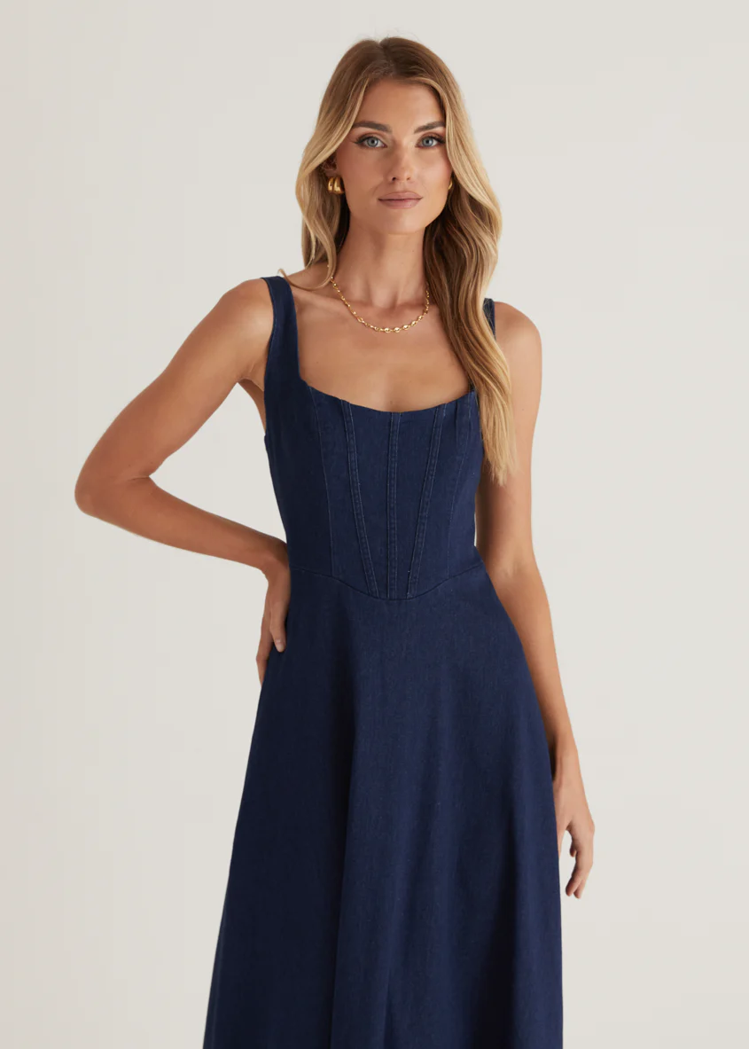 Talu Off Shoulder Midi Dress - Navy Paisley