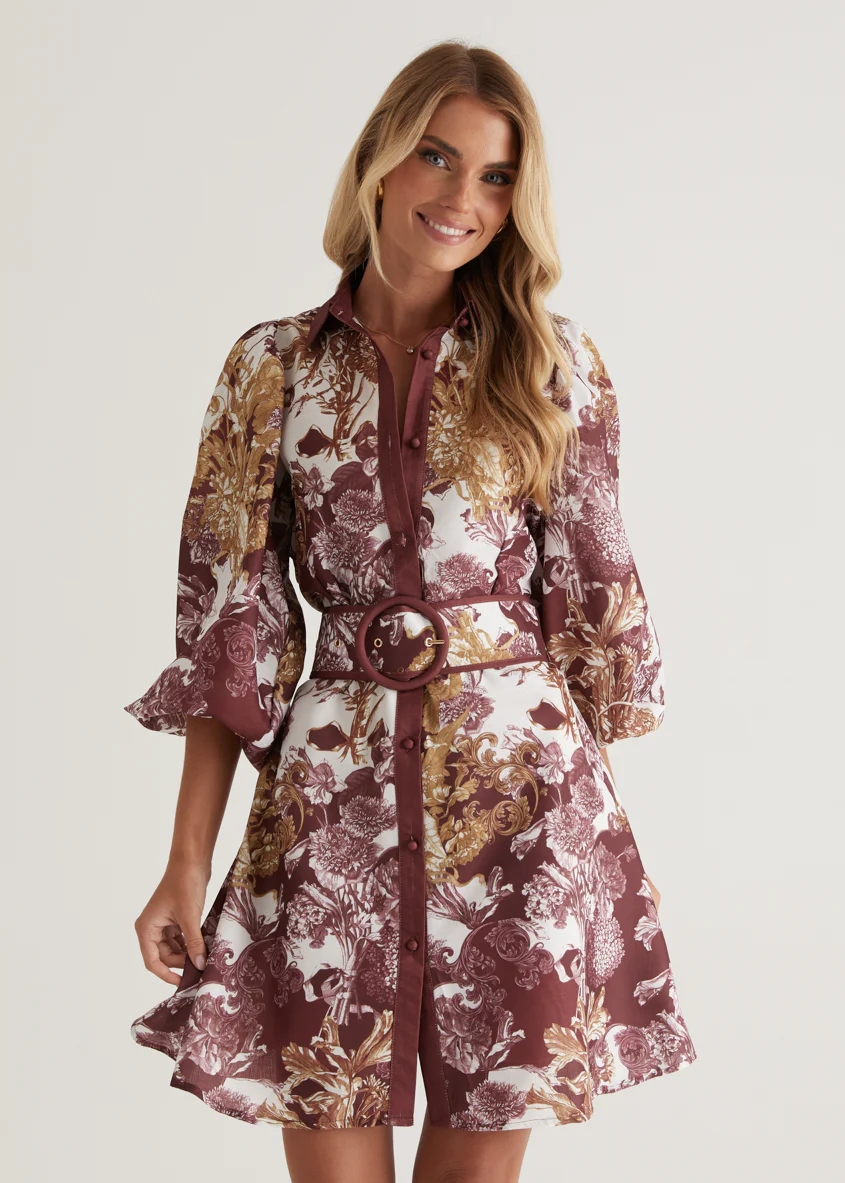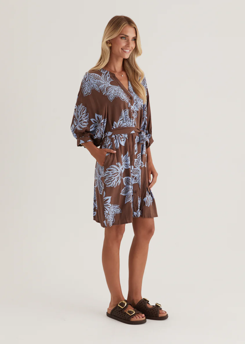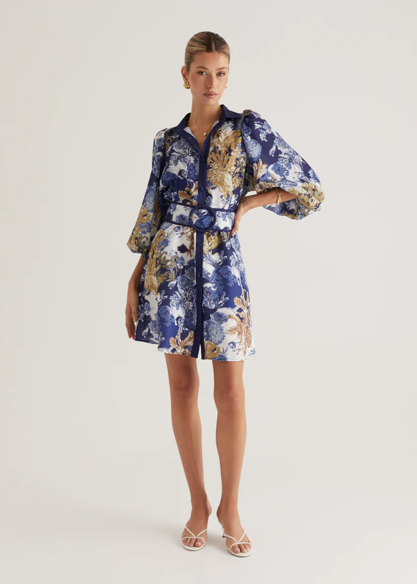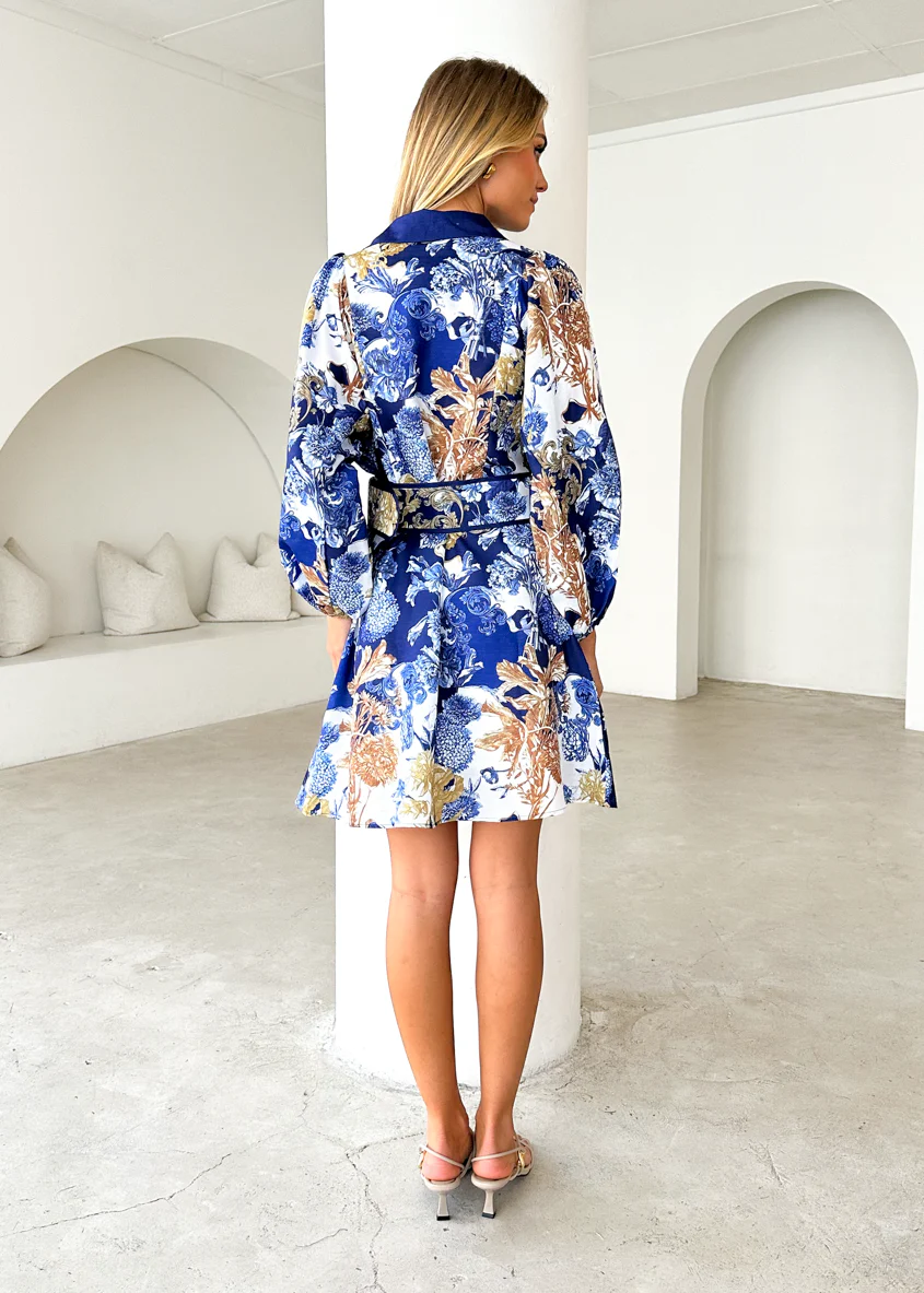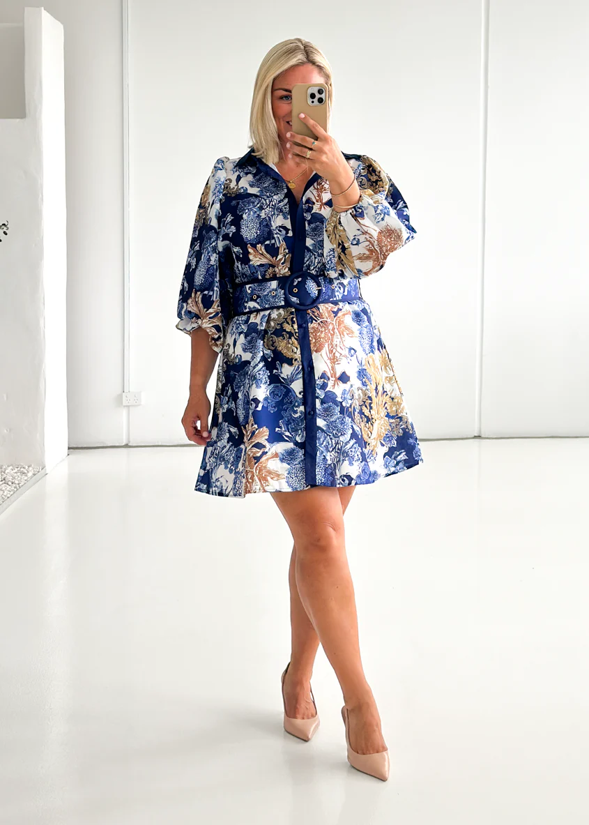 Talu Off Shoulder Midi Dress - Navy Paisley