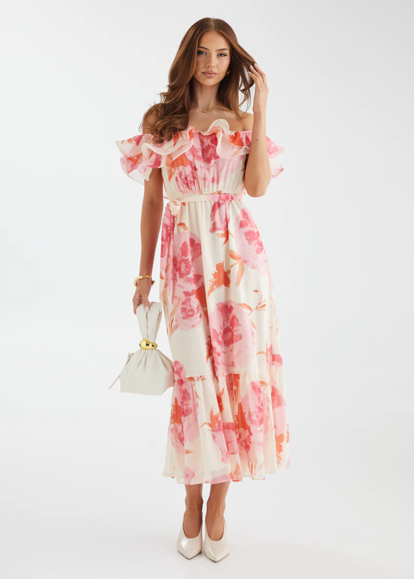 Tarsha Off Shoulder Maxi Dress - Pink Bloom