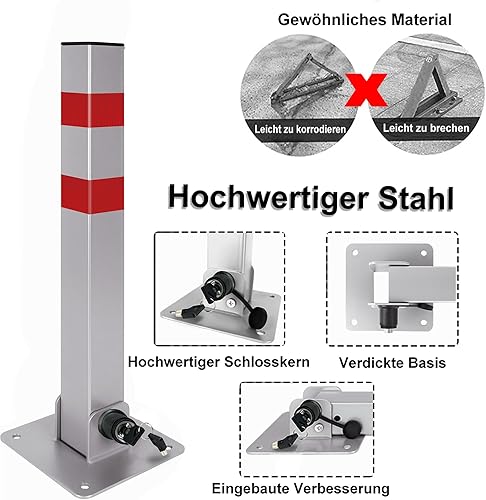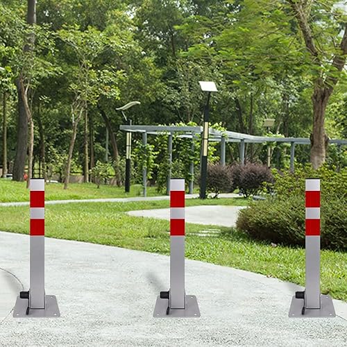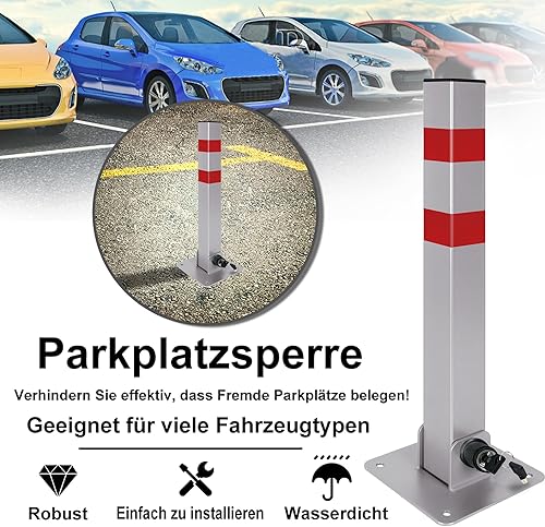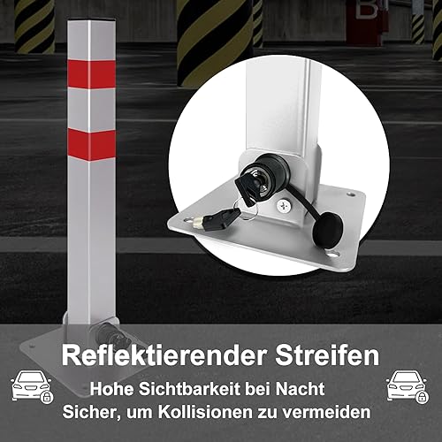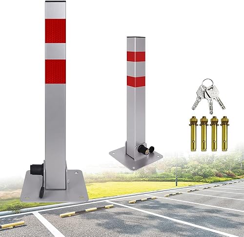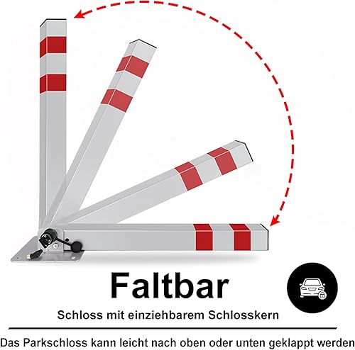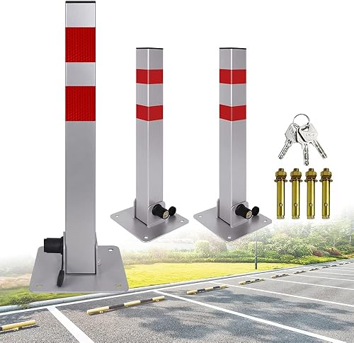 2 blocchi di parcheggio pieghevoli, in metallo, acciaio, con chiave e accessori di montaggio completi, per garage e parcheggio