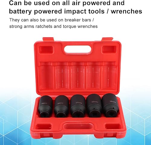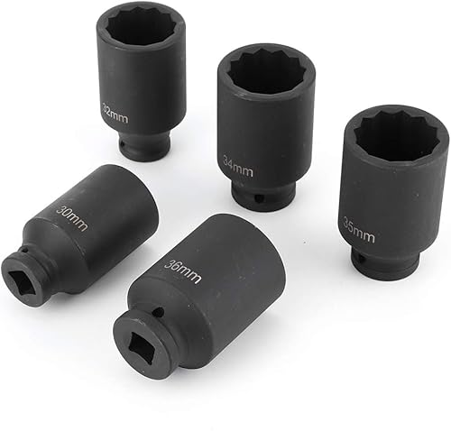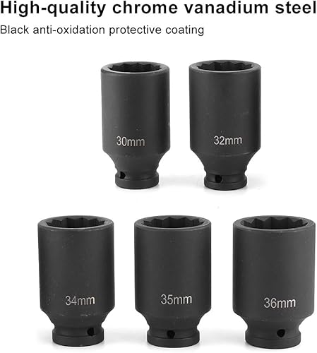 Bussola a percussione profonda per azionamento, 5 pezzi dado per mozzo con asse a 12 punti Strumento per bussola a percussione profonda per cricchetto da 1/2 pollice