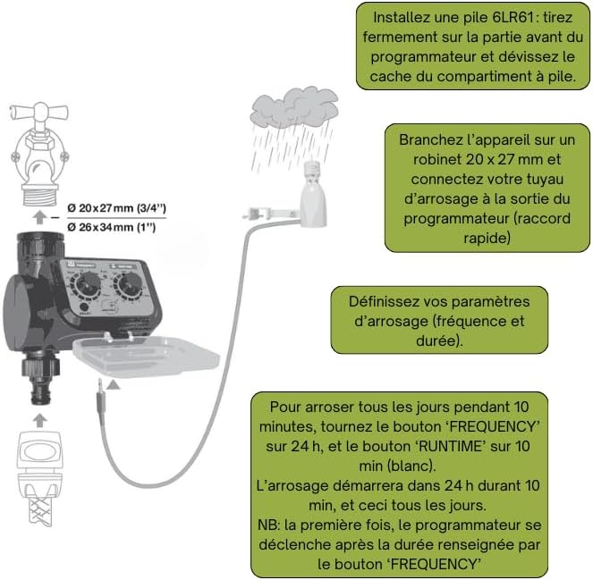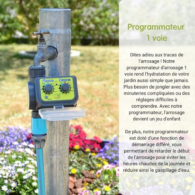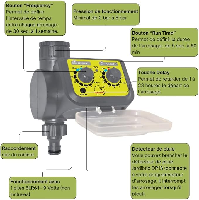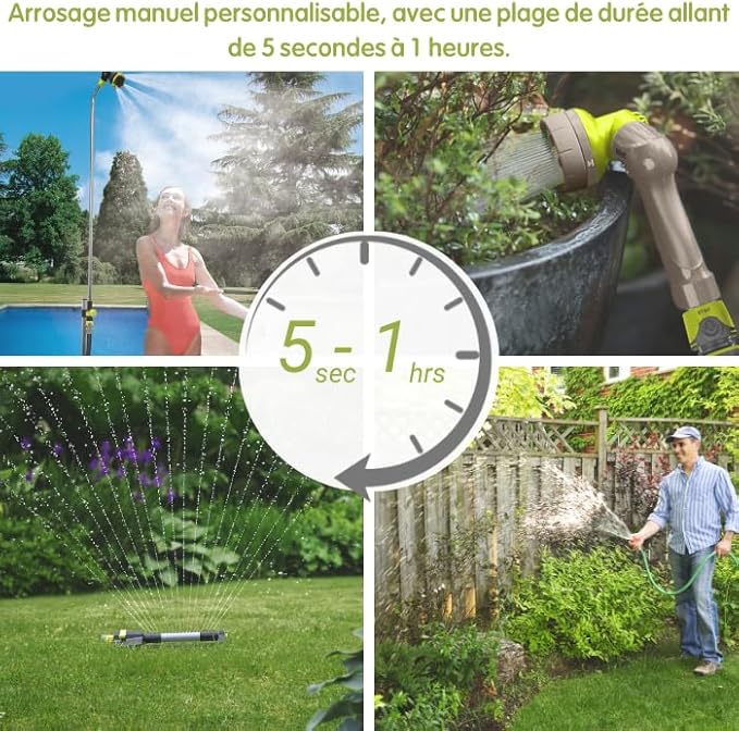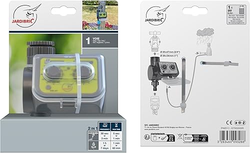 4963 - Timer analogico per irrigazione Aqua Flow, durata regolabile da 5 a 60 minuti, frequenze predefinite da 30 secondi a 1 settimana
