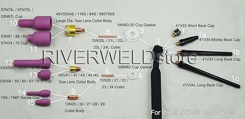 RIVERWELD Kit tappo posteriore TIG 41V33 41V35 41V24 41V24L FIT DB PTA SR WP 9 20 25 Torcia di saldatura TIG 4PCS
