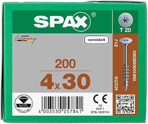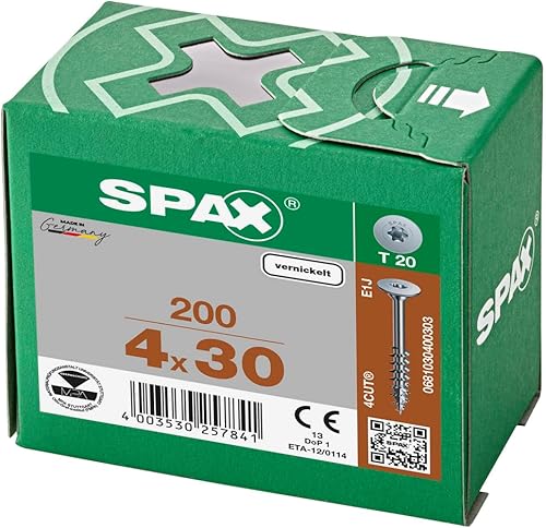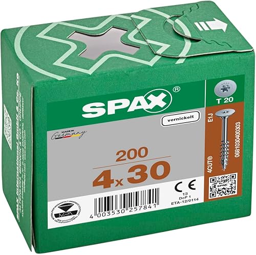 SPAX 681030400303 - Testa piatta posteriore per Korpus, filettatura parziale, testa a parete posteriore, T-STAR plus, 4CUT, vite corpo nichelata, 4 mm x 30 mm, colore: Grigio argento