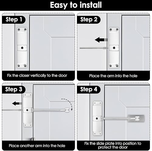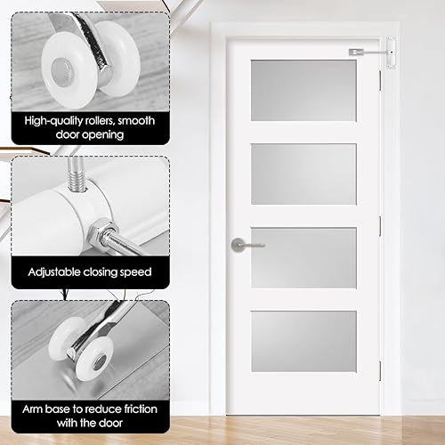 Chiudiporta automatico con 4 viti e leva di regolazione per casa, ufficio, camera da letto, 17 cm di lunghezza, bianco, lega di zinco, zinco