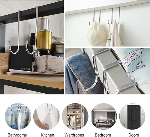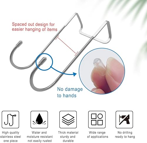 Ganci Asciugamani Bagno-5 Pezzi 2cm gancio asciugamani bifacciale in acciaio inox,con Copertura in Silicone,per porte in vetro cornice(Forma a S)