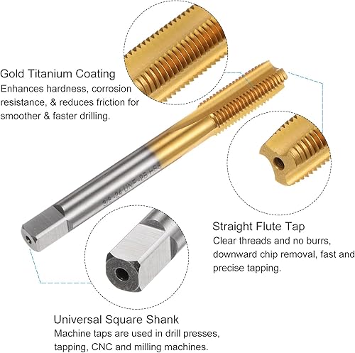 Set di Punte Maschiatura, Maschio per Filettare a Flauto Dritto 3/8-24 UNF Punta Elicoidale 1/3' (8,5mm), Utensili Riparazione Filetti Acciaio Alta Velocità M2 Rivestiti Titanio
