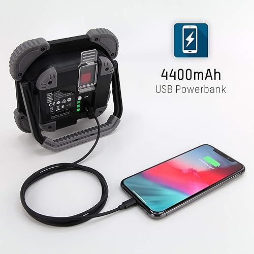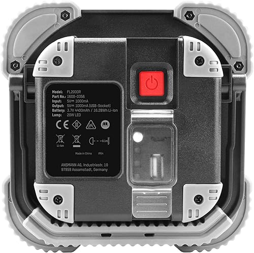 ANSMANN Faretto da cantiere a LED con batteria ricaricabile 2000 lumen e 20W - Luce da lavoro ricaricabile flessibile e dimmerabile IP64 - robusto faretto a LED per cantiere, officina e garage