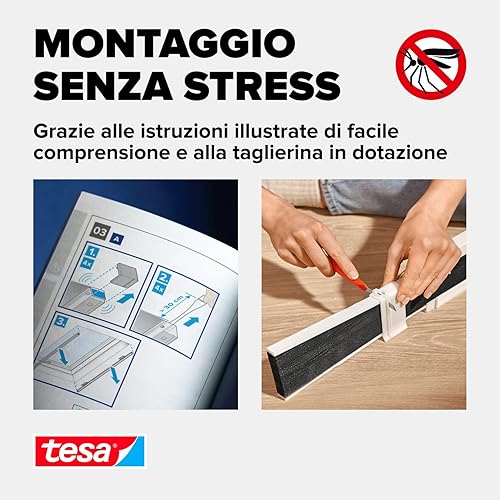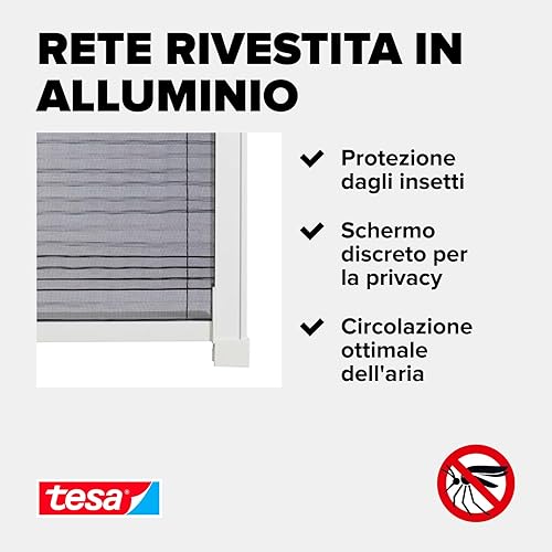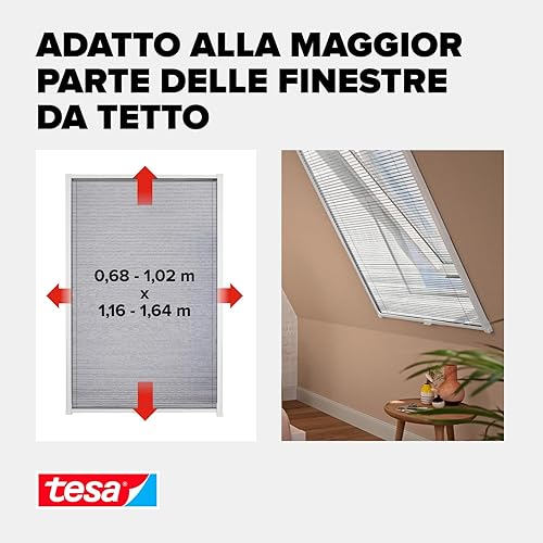 tesa Zanzariera Telescopica Plissettata in Alluminio - Rete a rullo per lucernari - Installazione senza forature grazie alla pratica tecnologia tesa Powerstrips® - Bianco
