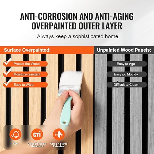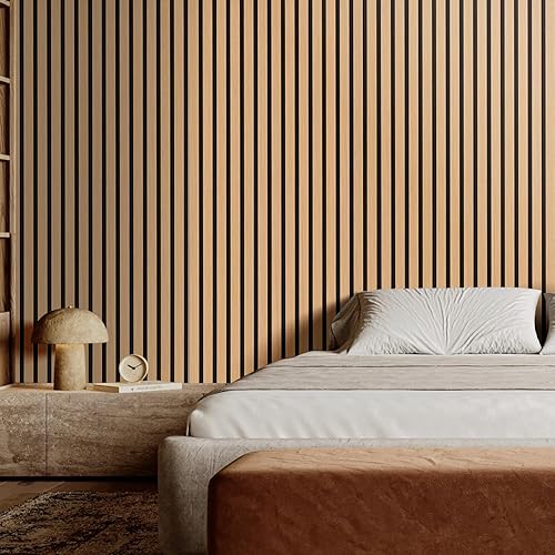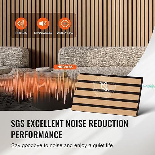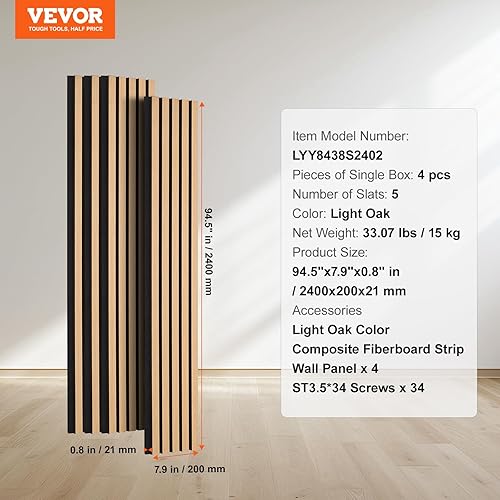 VEVOR Pannelli Acustici a Doghe in Legno 2400 x 200 mm Pannelli da Parete in Legno MDF con Accenti per Decorazione Pareti Interne, Pannelli da Parete in Finto Legno, Riduzione di Rumore, Rovere Chiaro