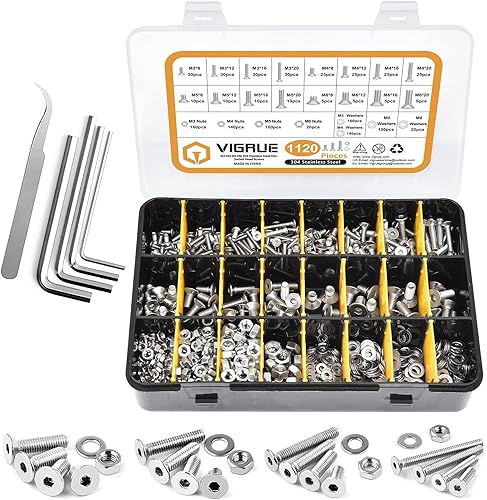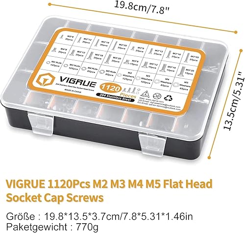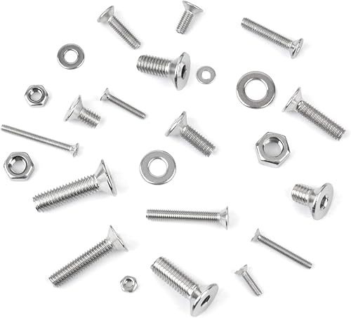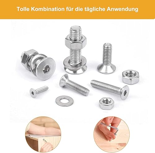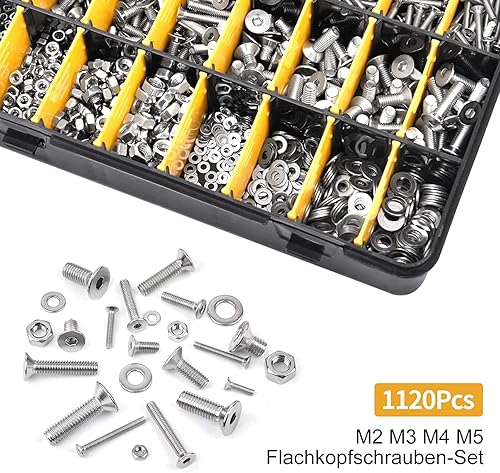 Set di 1120 viti a testa svasata M3 M4 M5 M6 con esagono incassato esagonale, set di viti a testa svasata A2 – 70 pezzi, in acciaio inox a testa svasata e rondelle, con scatola nera
