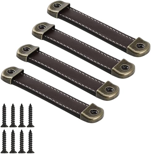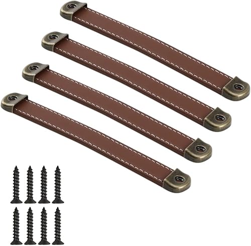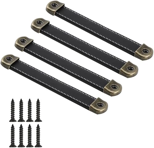 4 pezzi Retrò Maniglie in Pelle per Mobili Maniglia per Porte Antico Pelle Maniglia Dell'Armadio Cassetti Armadietti Manopole Pomelli Armadio Tiretti 128 mm