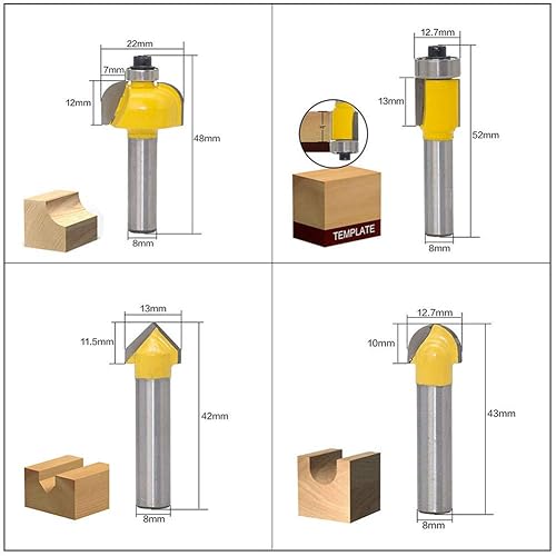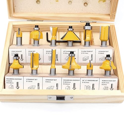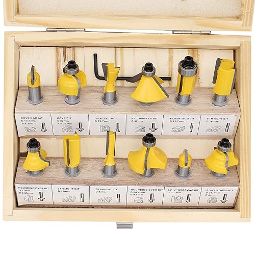 12 Pezzi Set Frese per Legno, Set di Punte per Fresa in Carburo di Tungsteno, con diametro del codolo da 8 mm