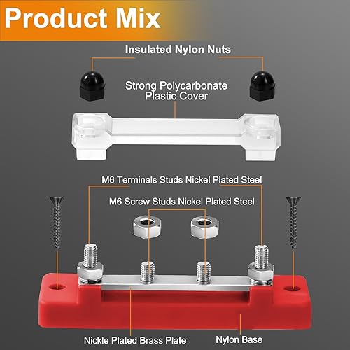 Blocco di Distribuzione dell'alimentazione 12V-48V DC 150A Blocco di distribuzione della Batteria Morsettiera di Alimentazione con 4 x M6 Terminale a Bolts per Auto Camion Barca